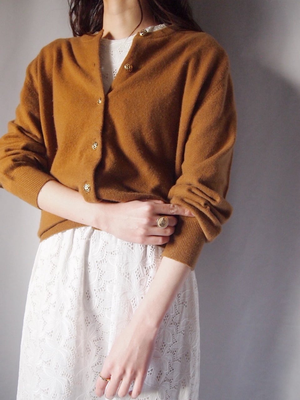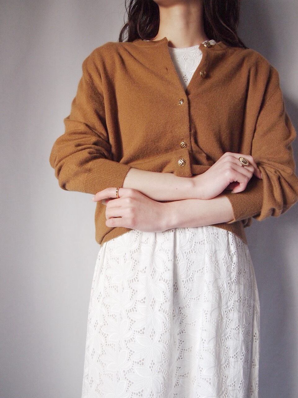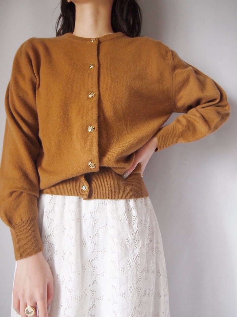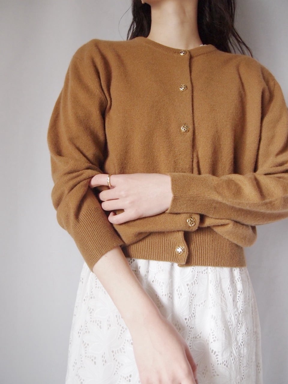 ライトブラウンカシミヤカーディガン