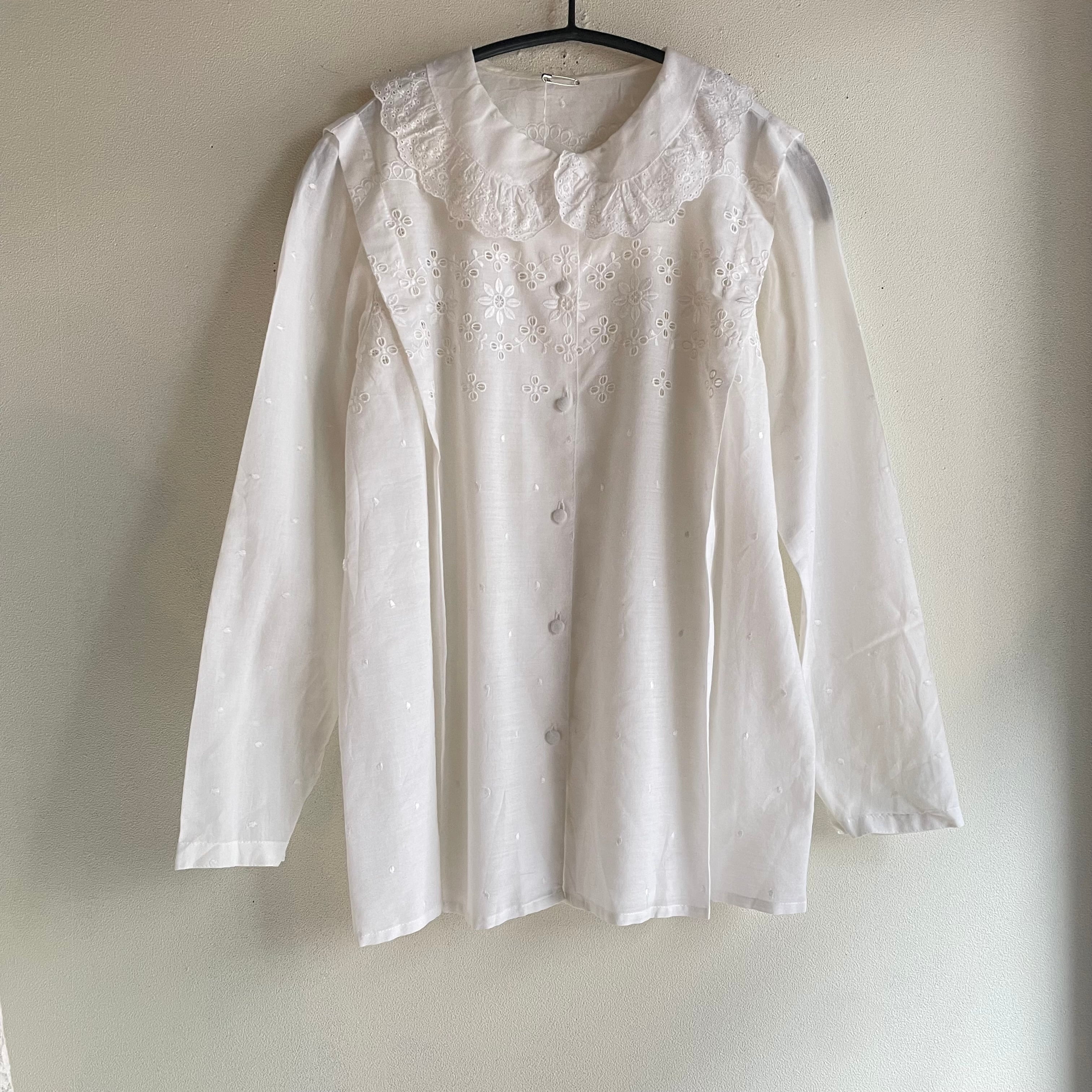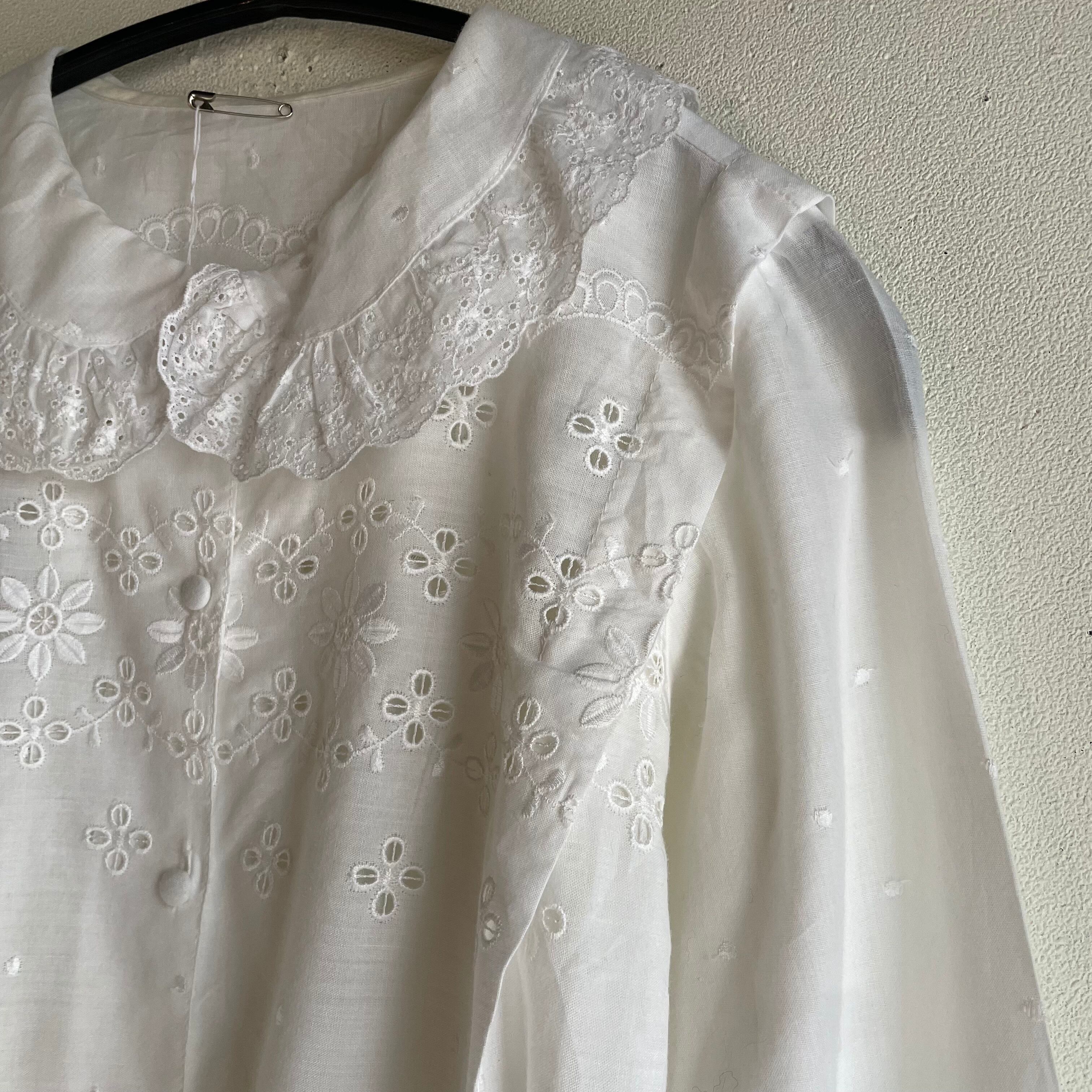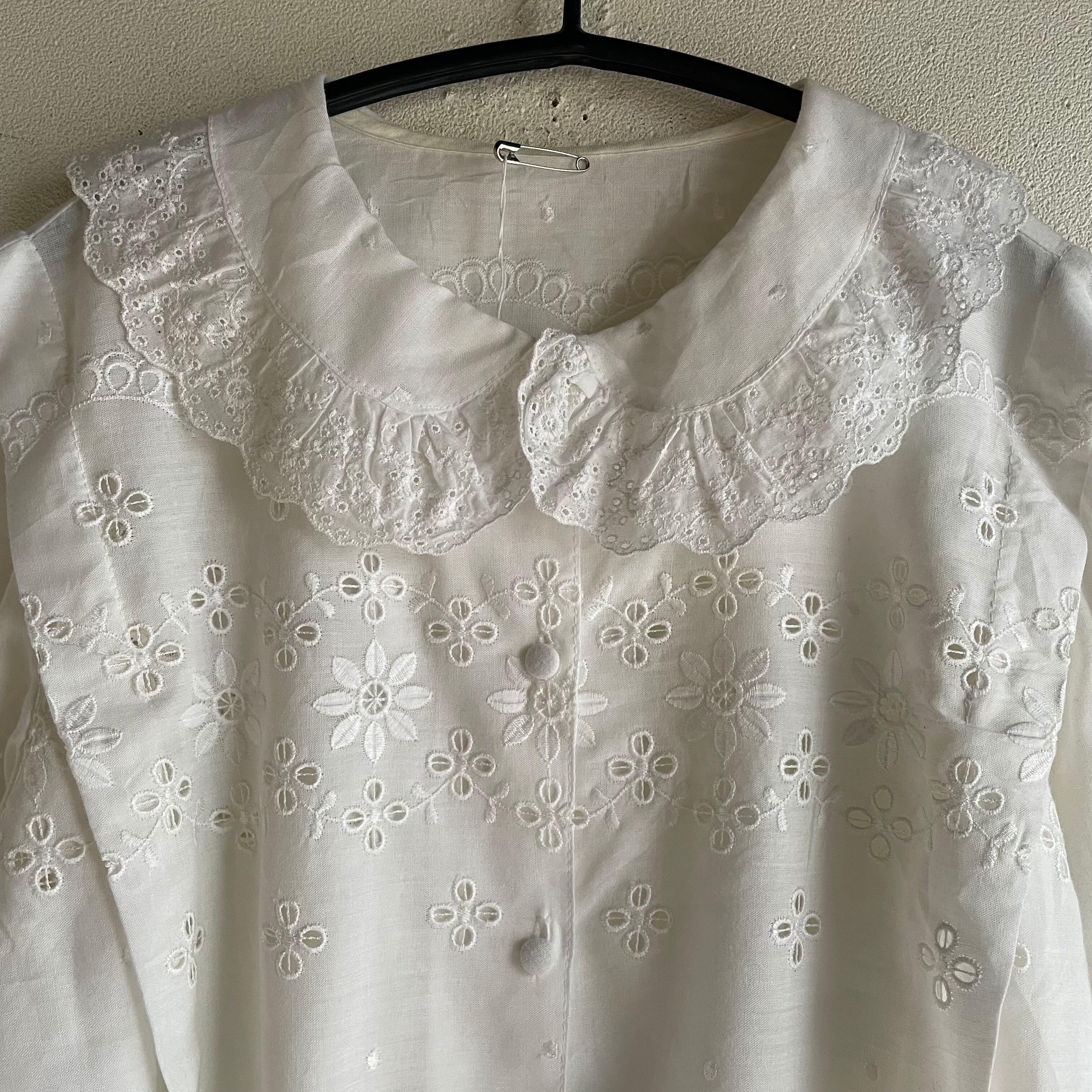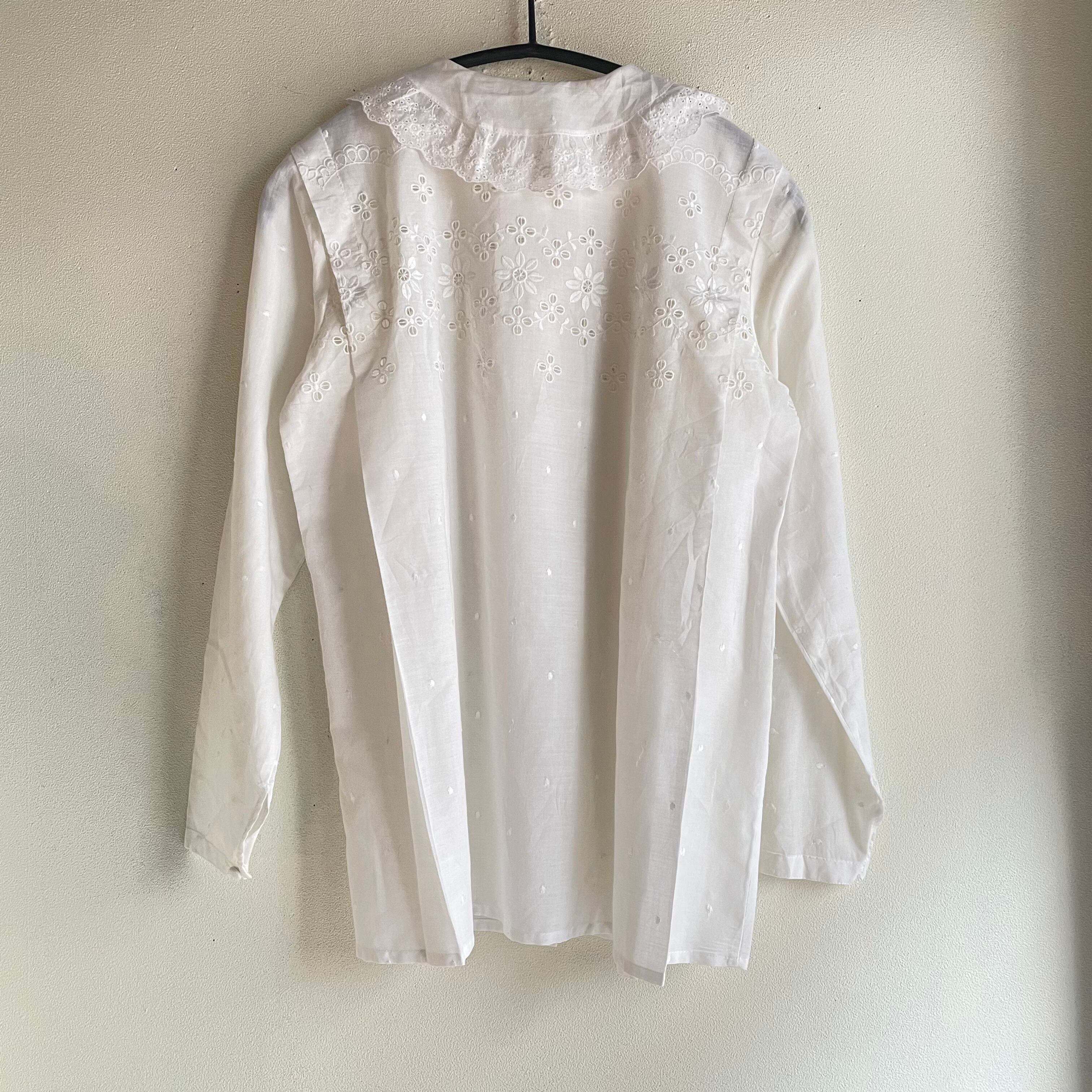ホワイトレース刺繍タックブラウス