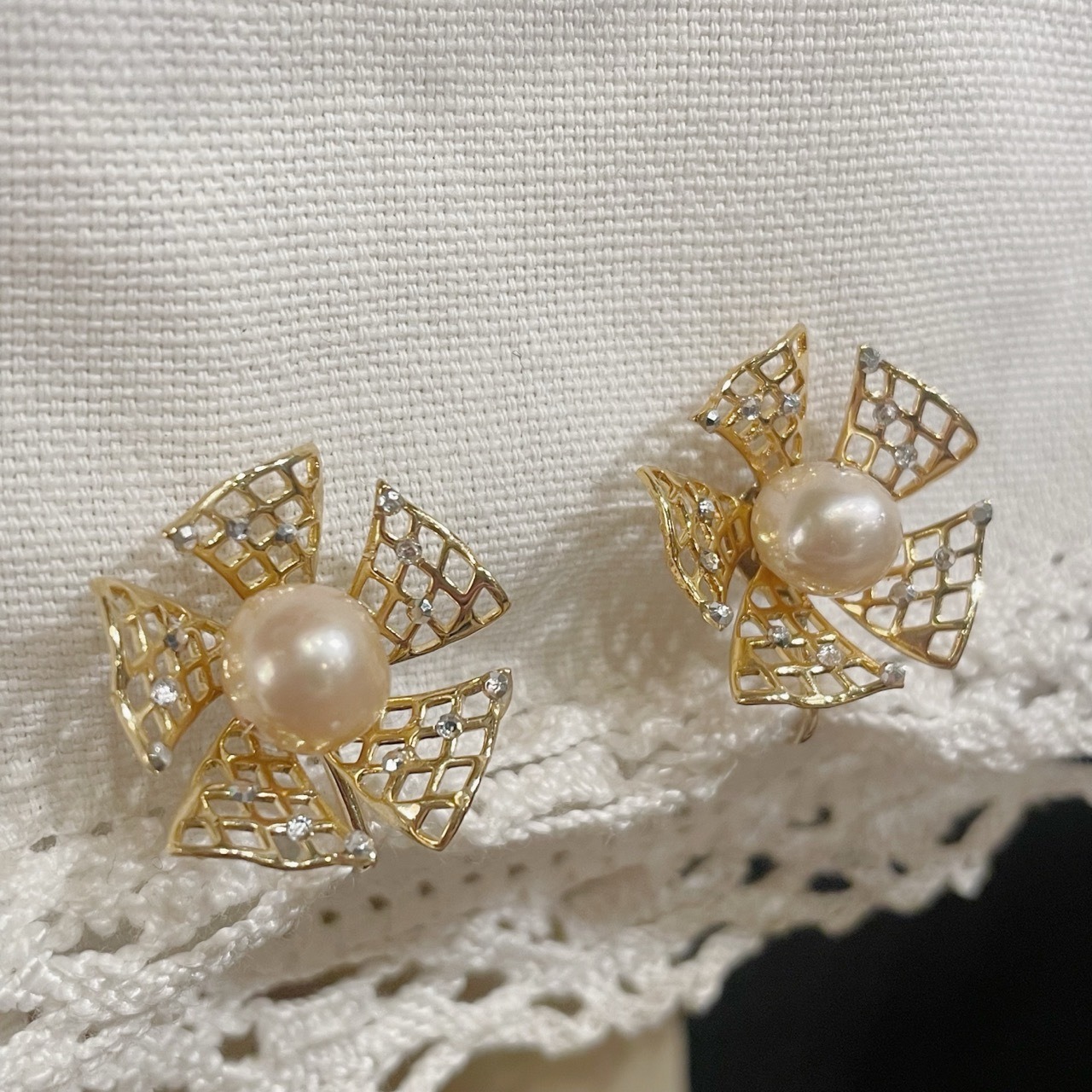 【Scent Of Jasmine】ゴールド×パールイヤリング