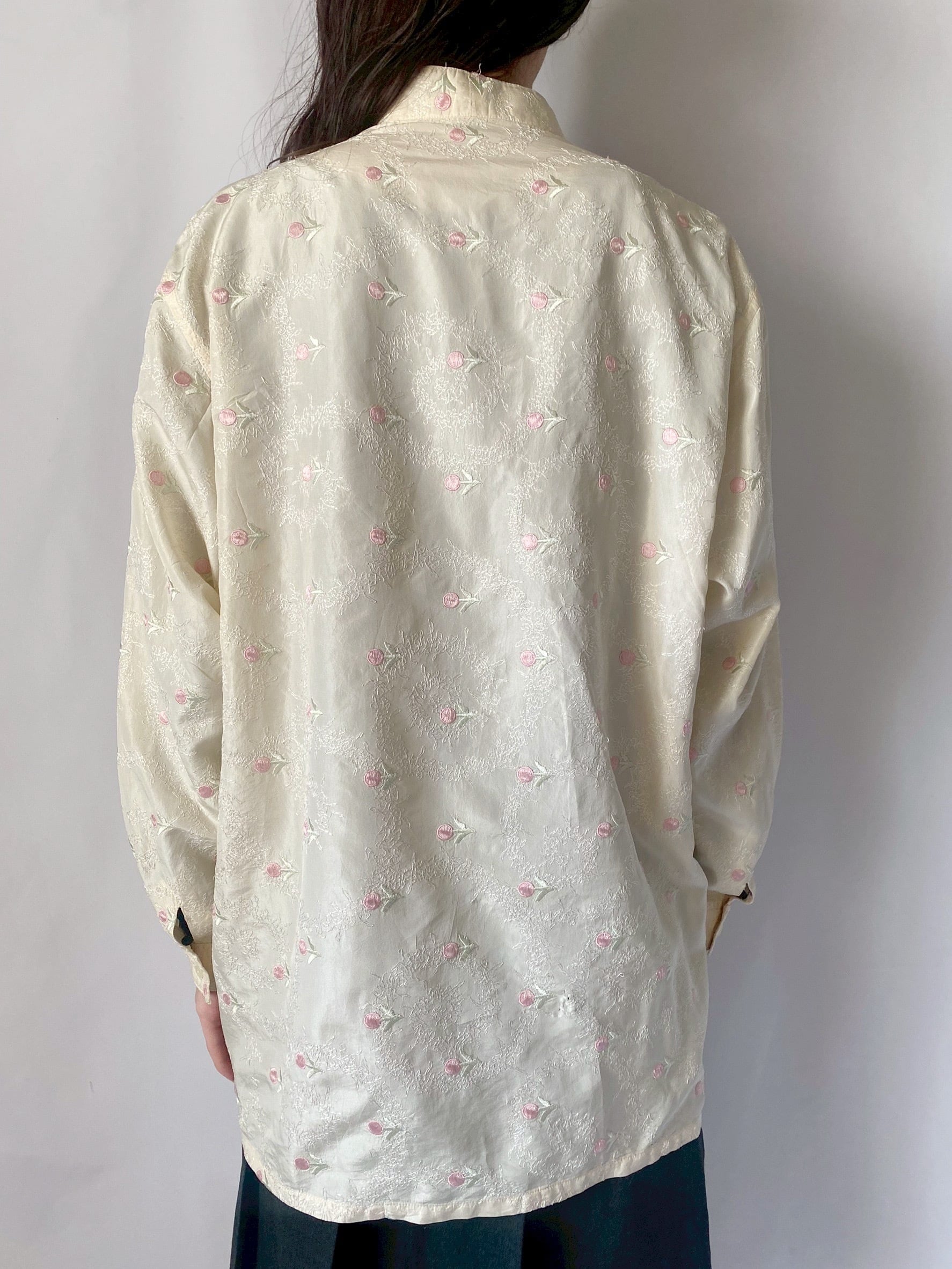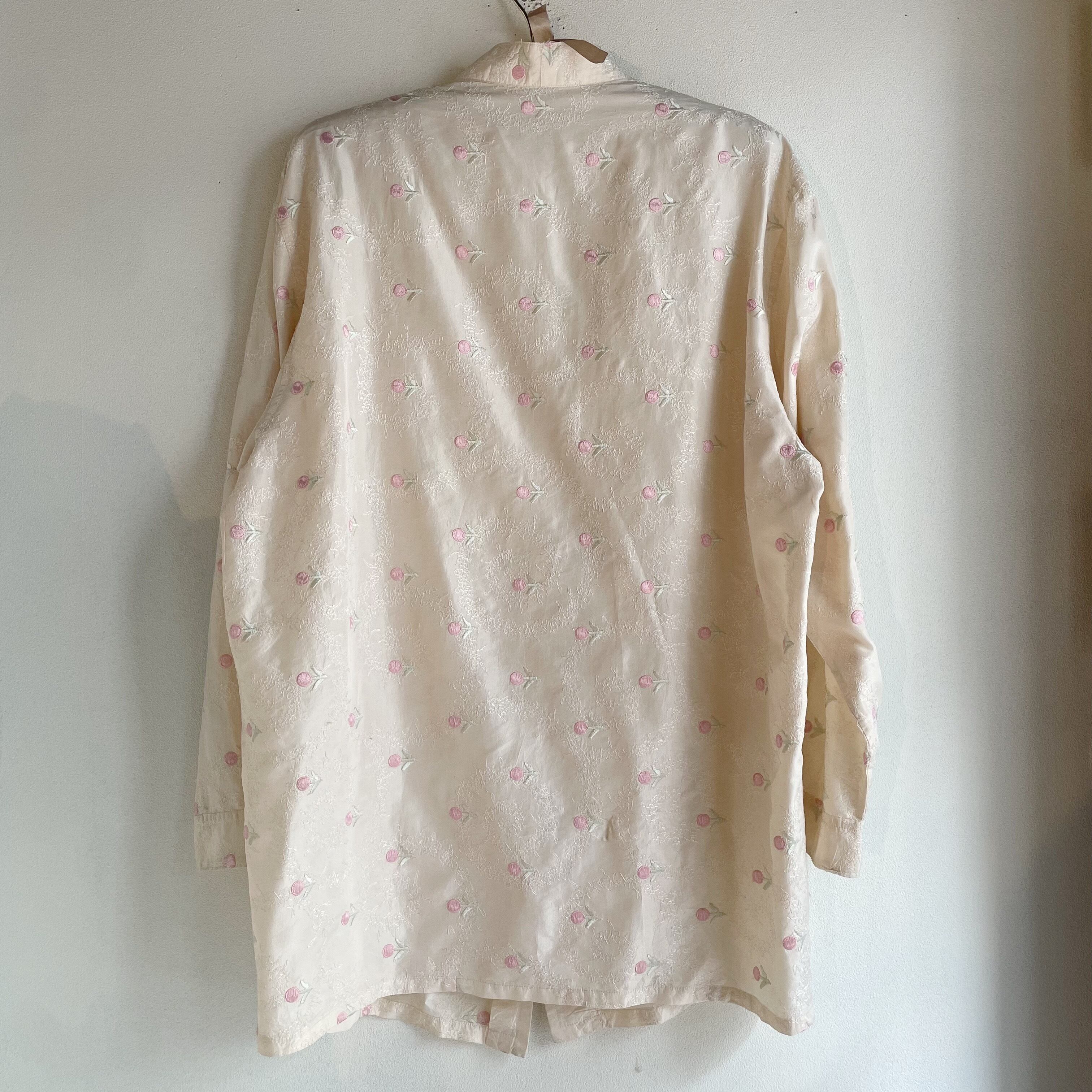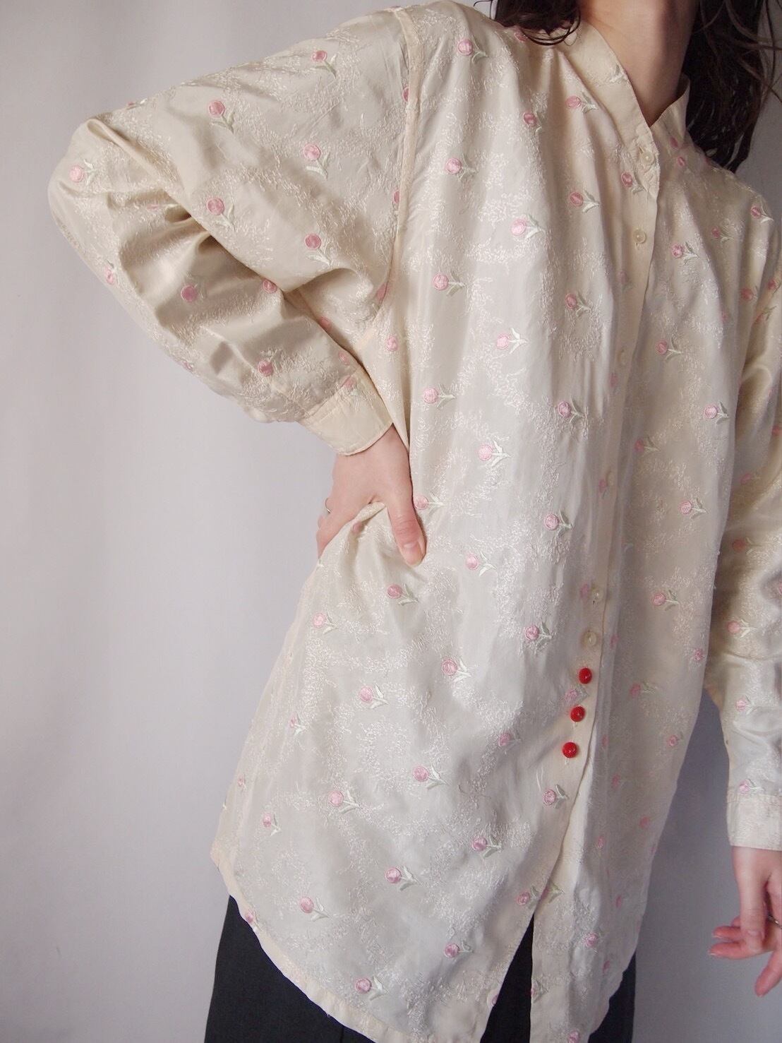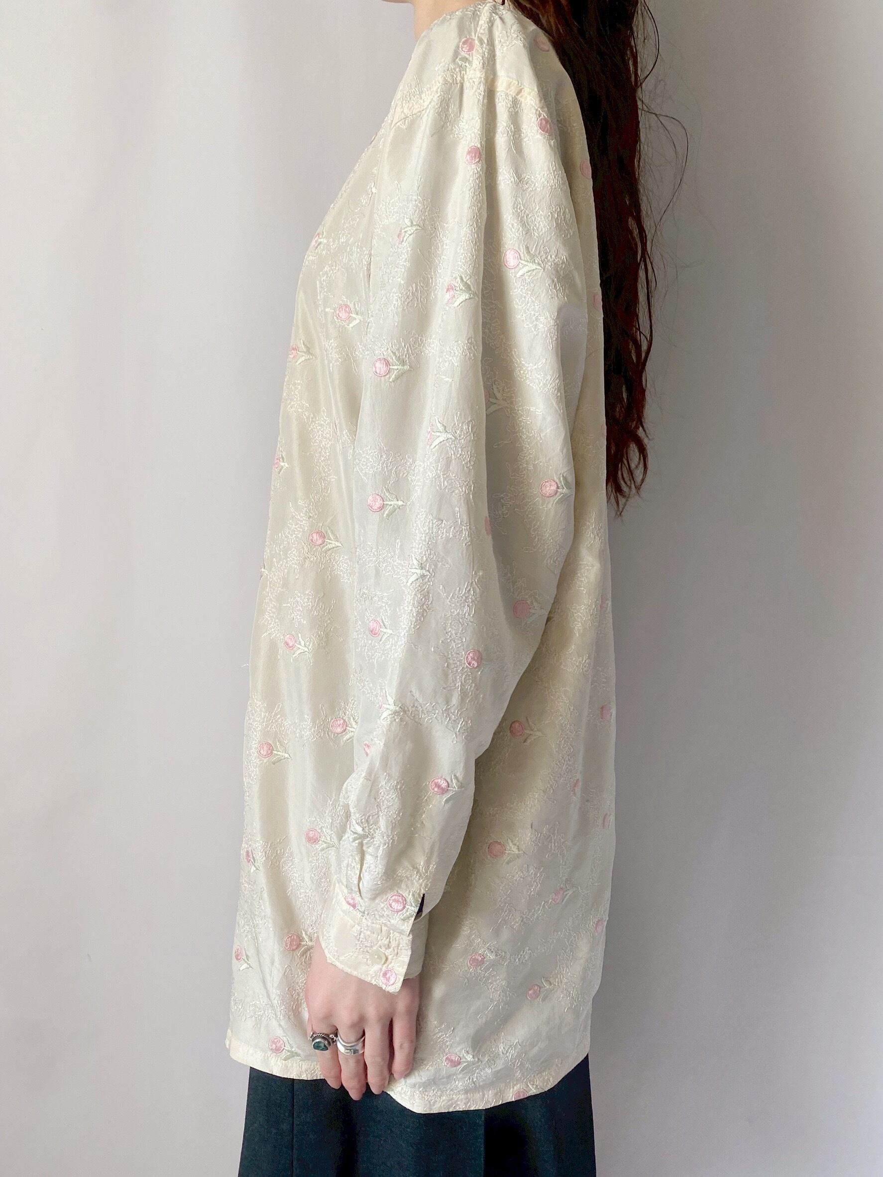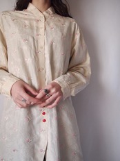 アイボリー×ピンクフラワー刺繍シャツ
