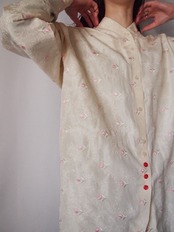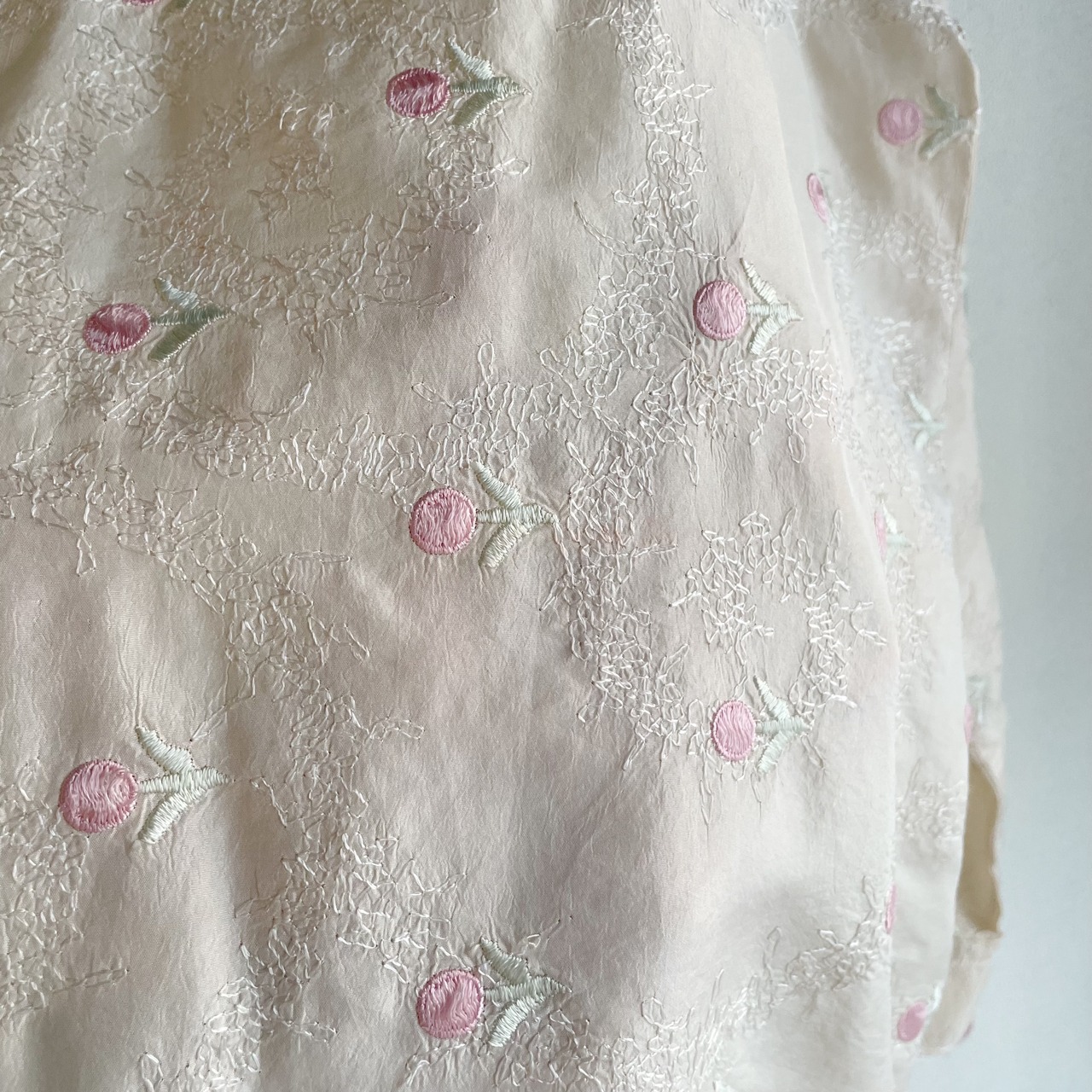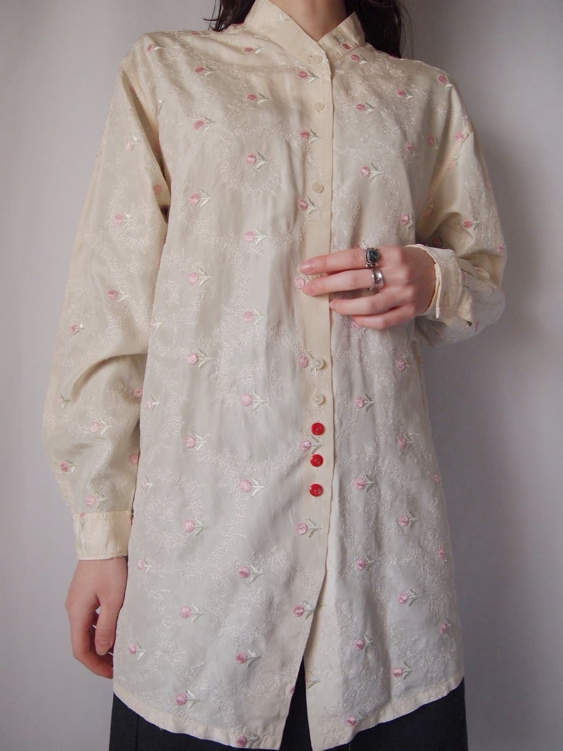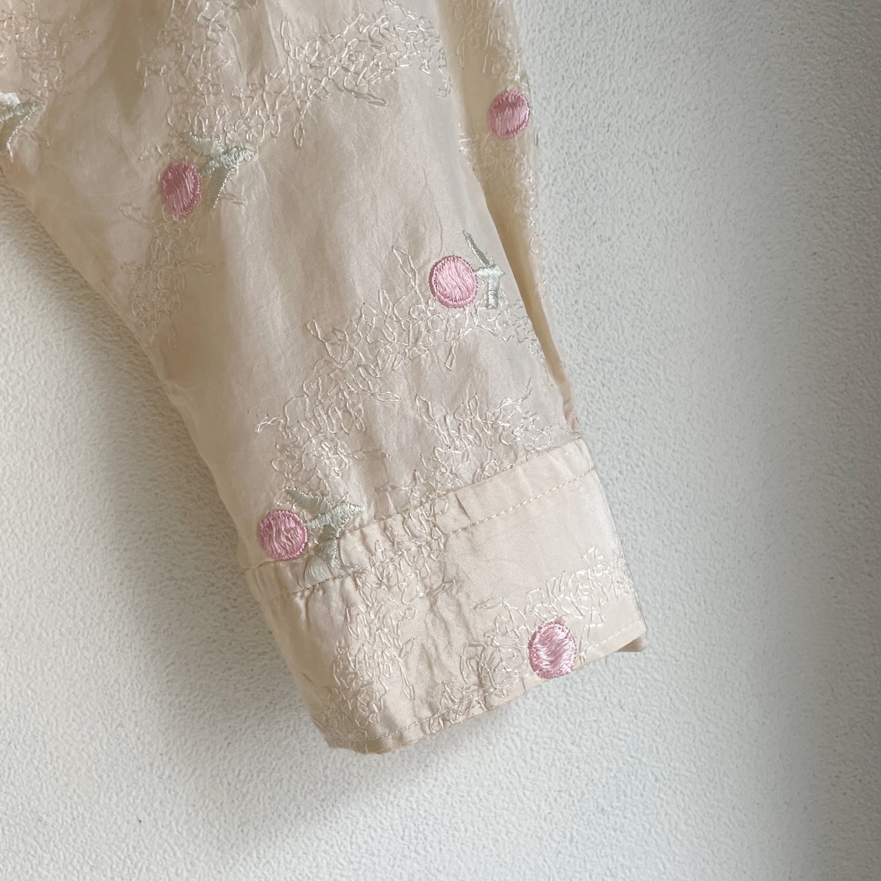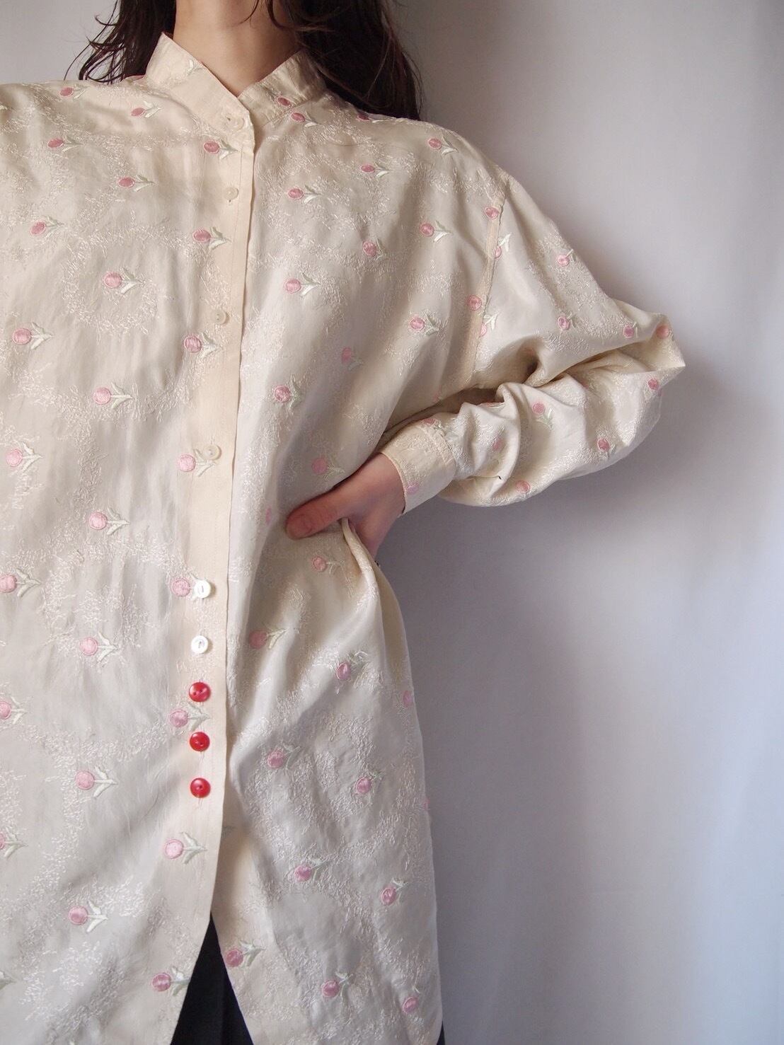 アイボリー×ピンクフラワー刺繍シャツ