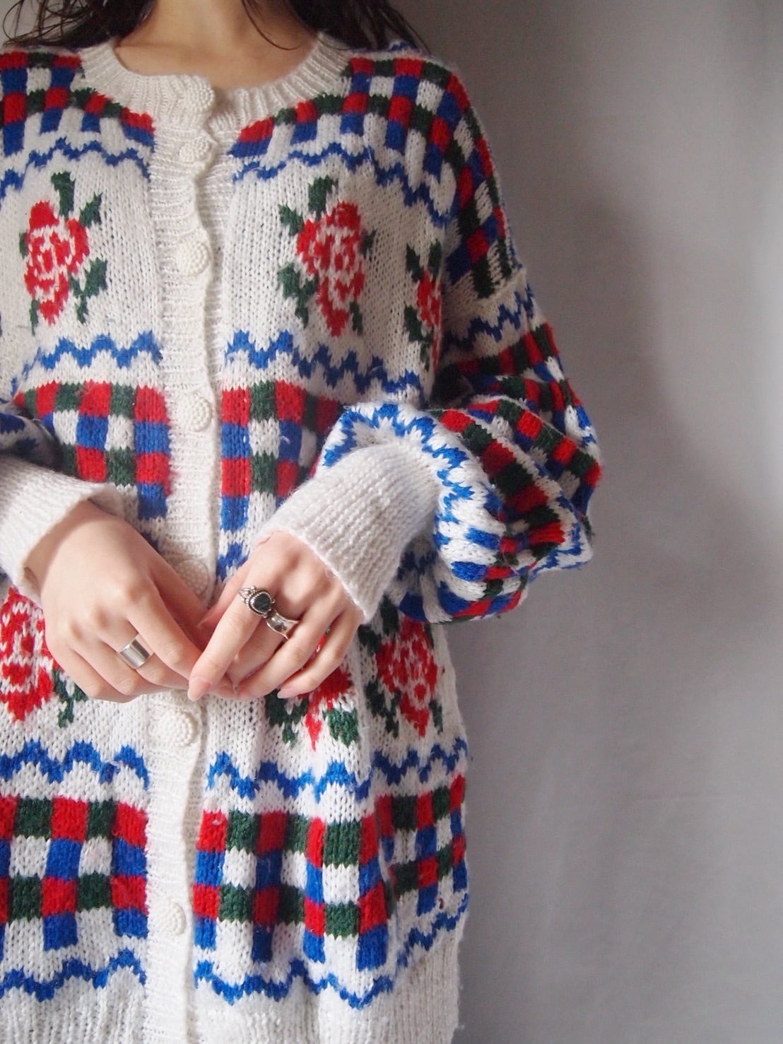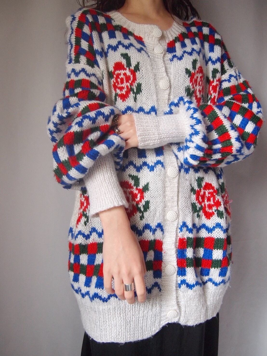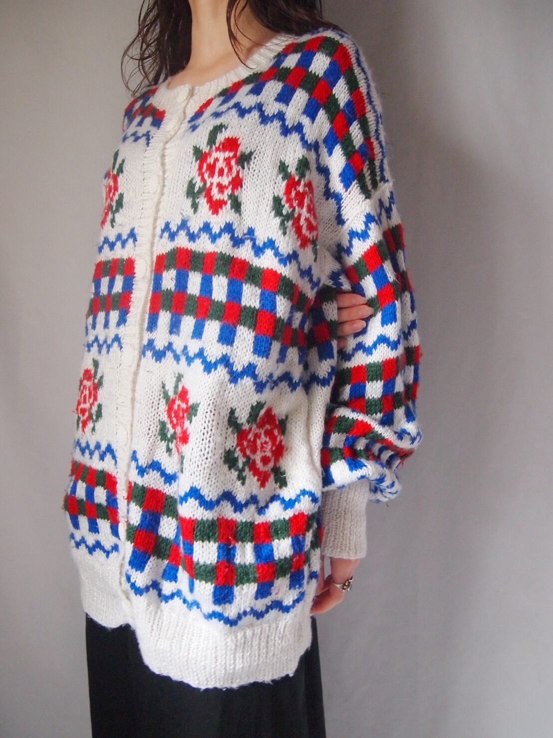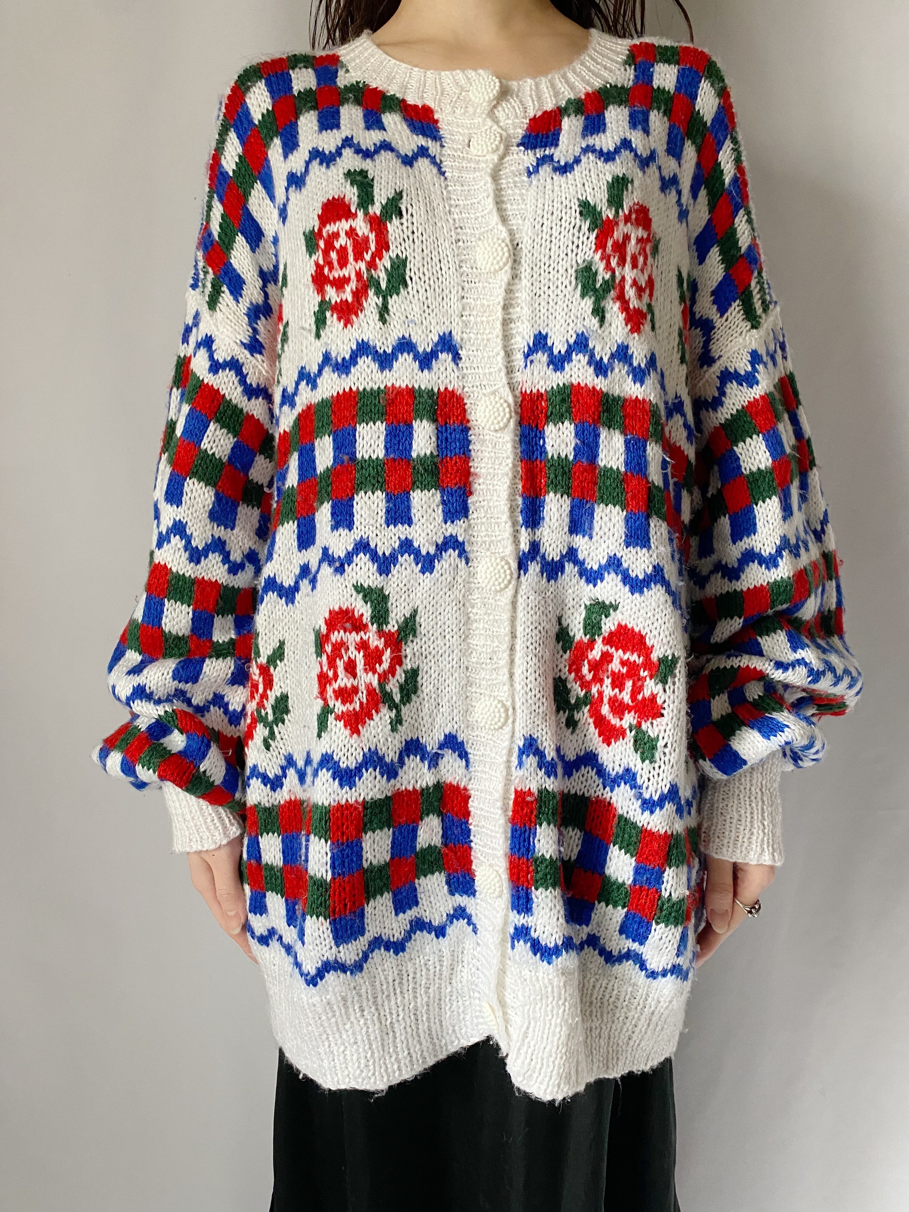 ホワイト×ローズ柄カーディガン