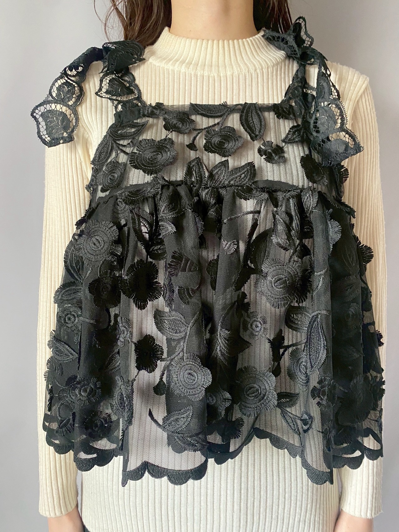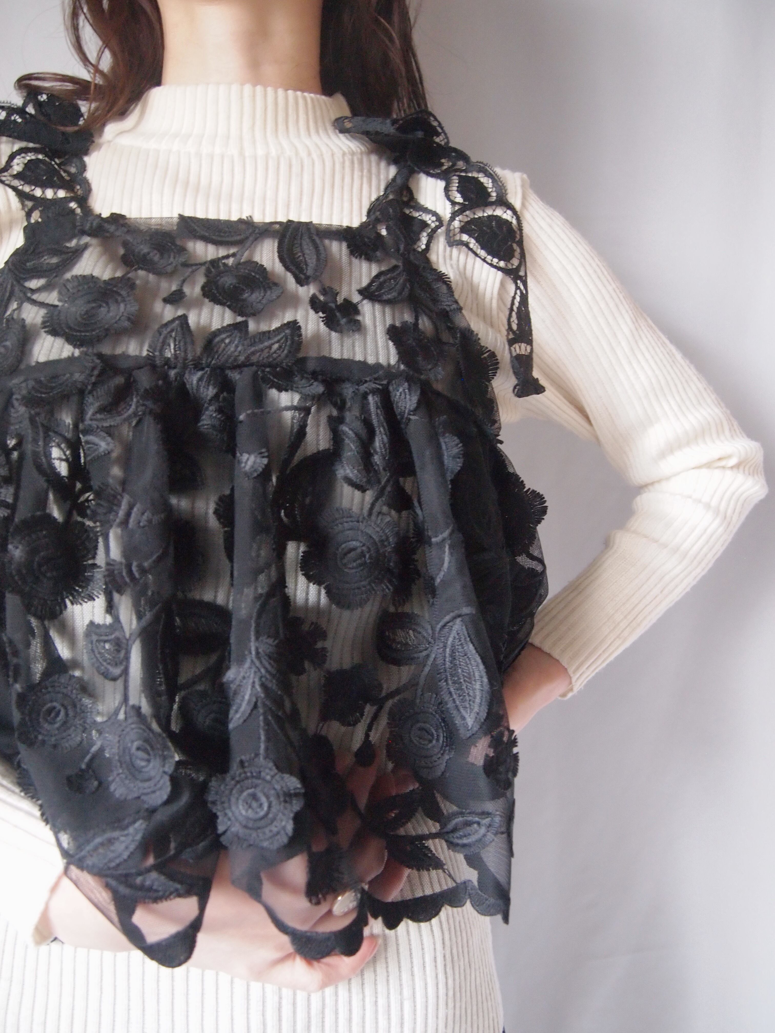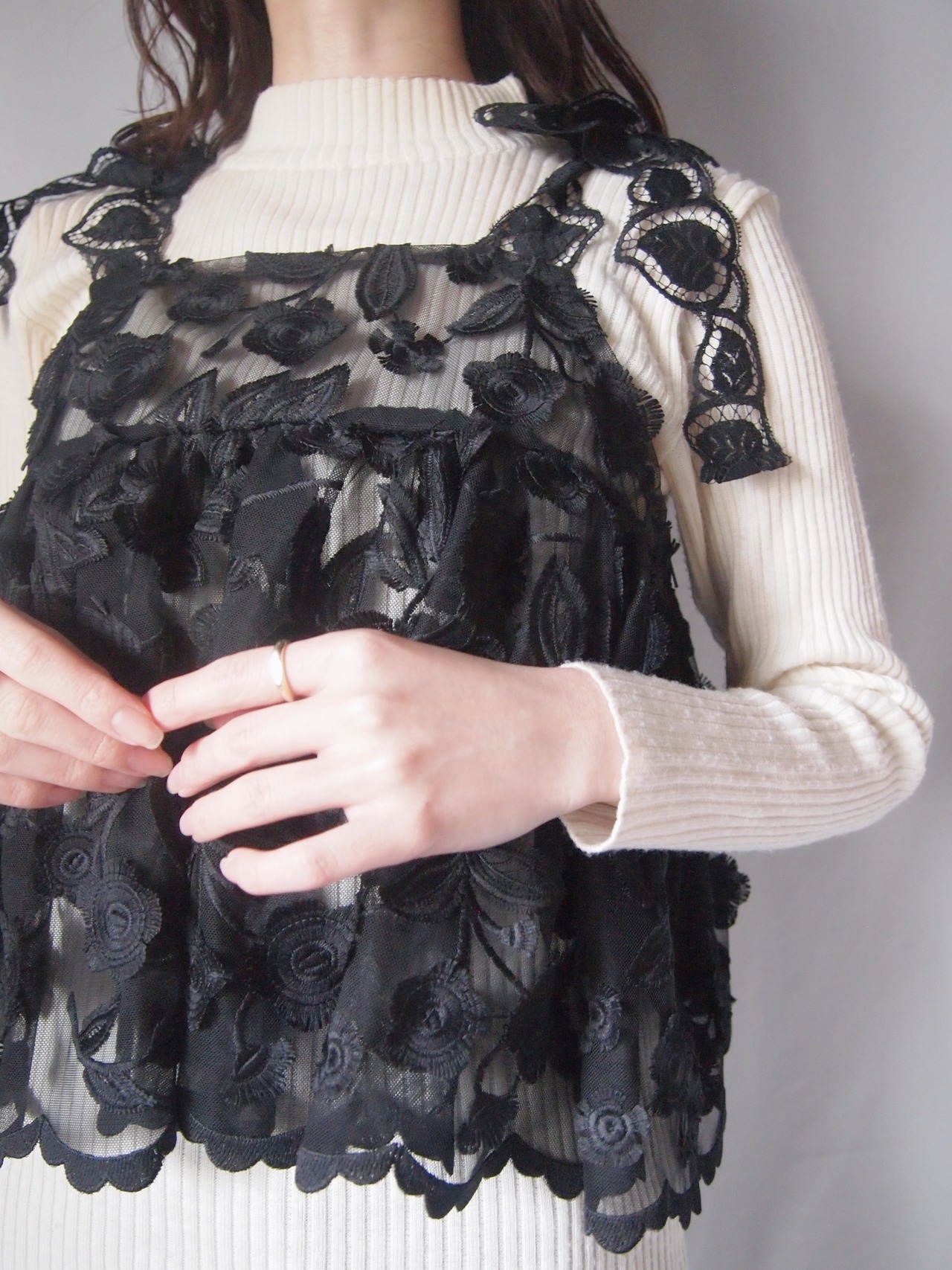 ブラックお花レースキャミソール