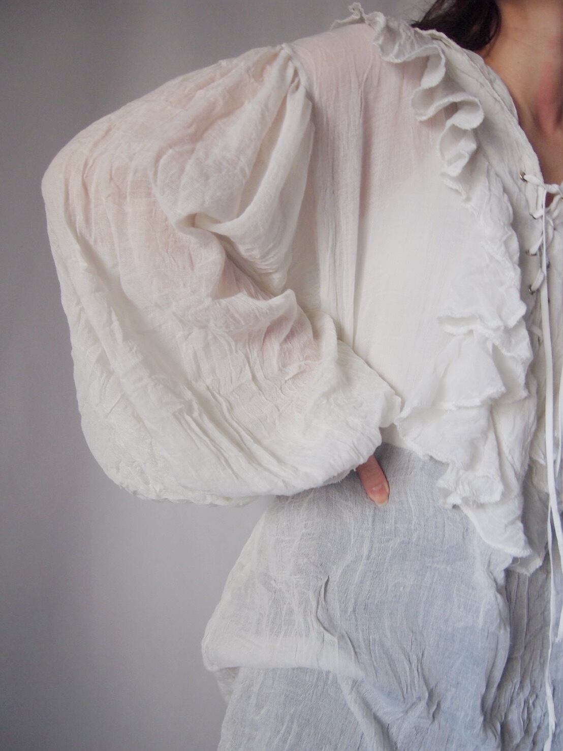 ホワイトフリルワッシャーチュニック