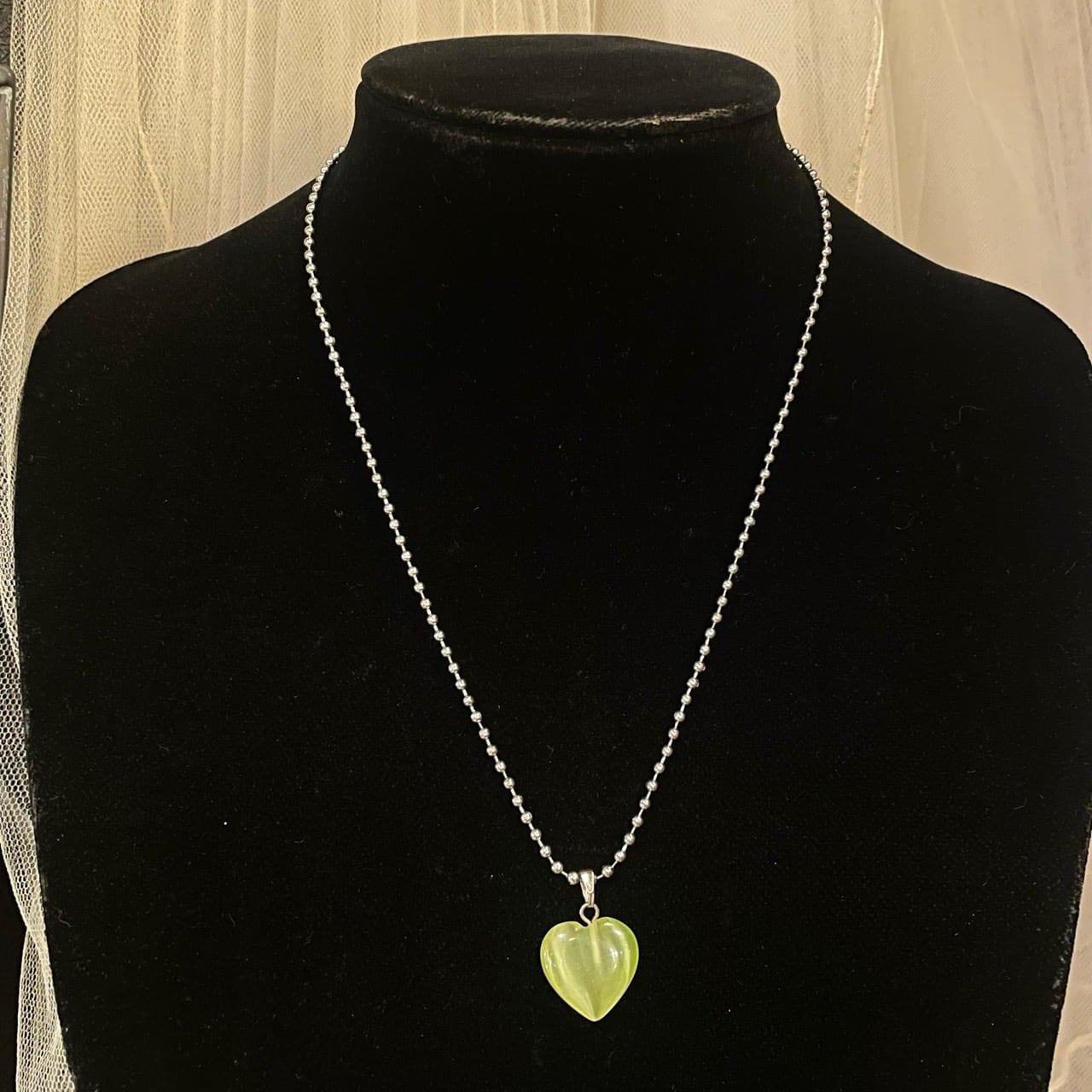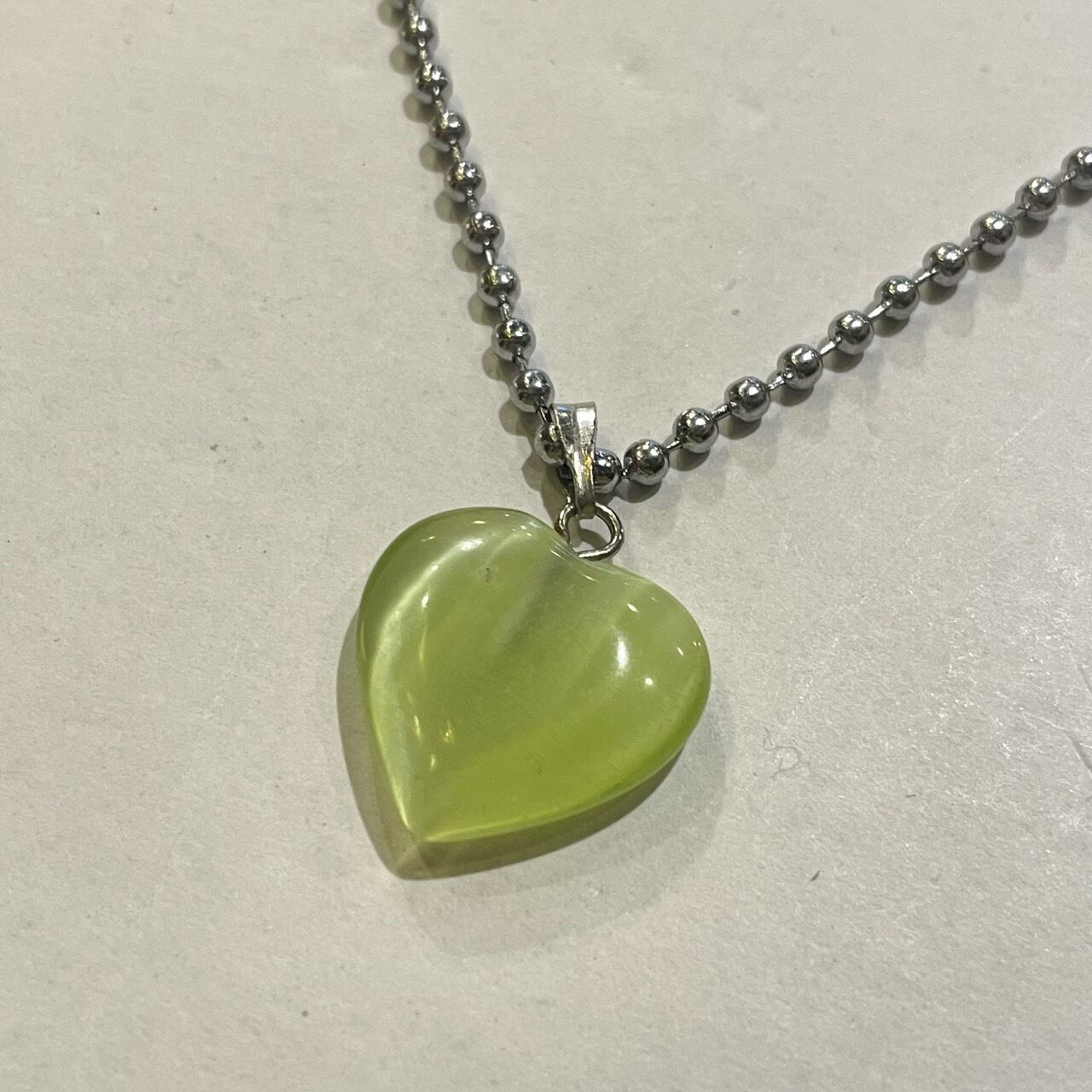 シルバー×ライトグリーンハートネックレス