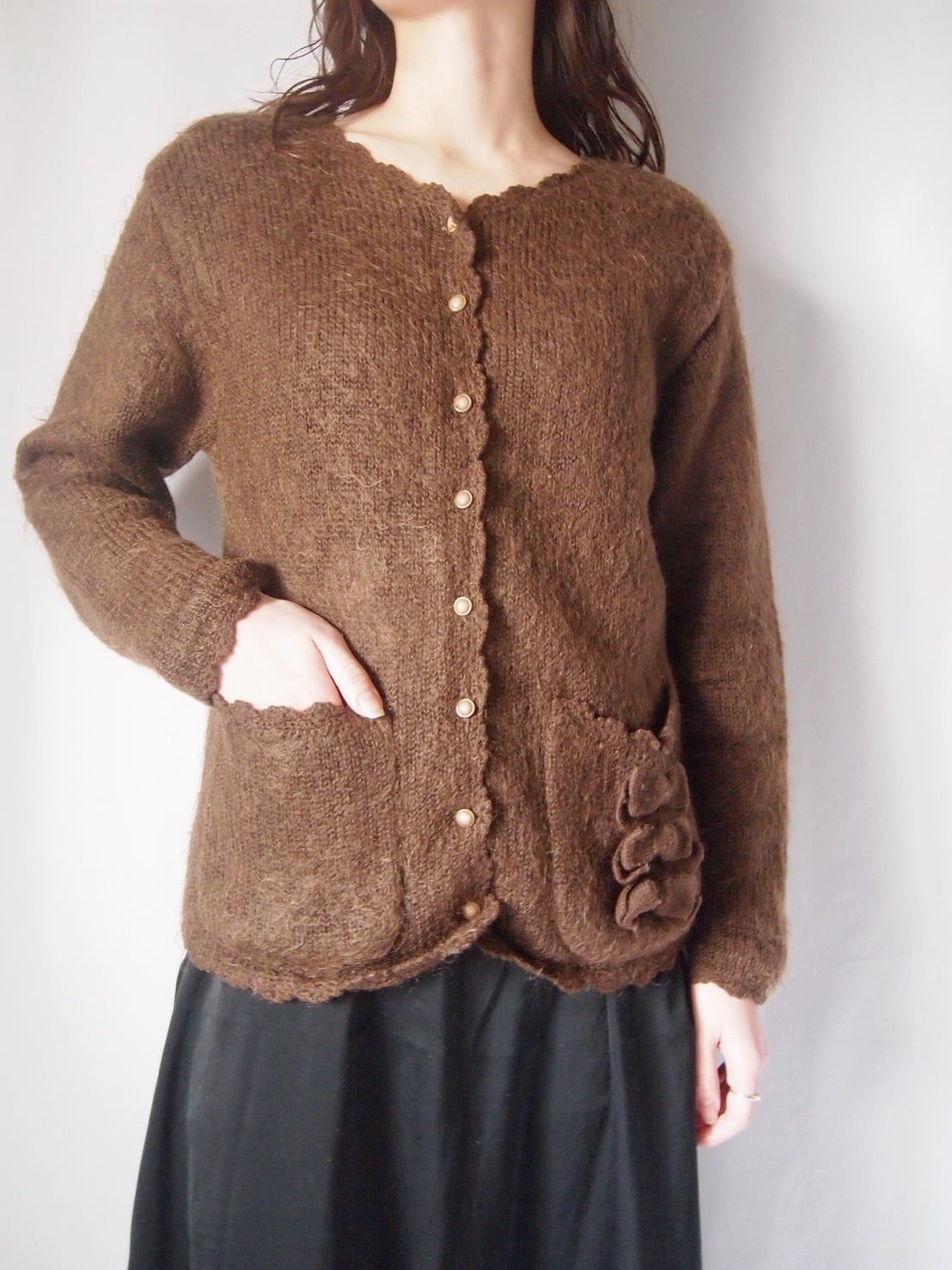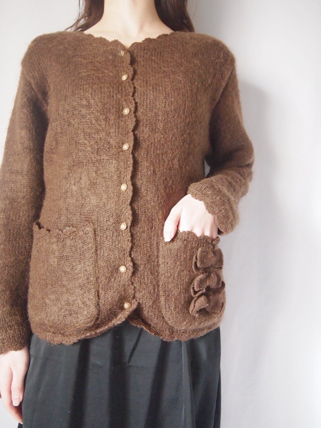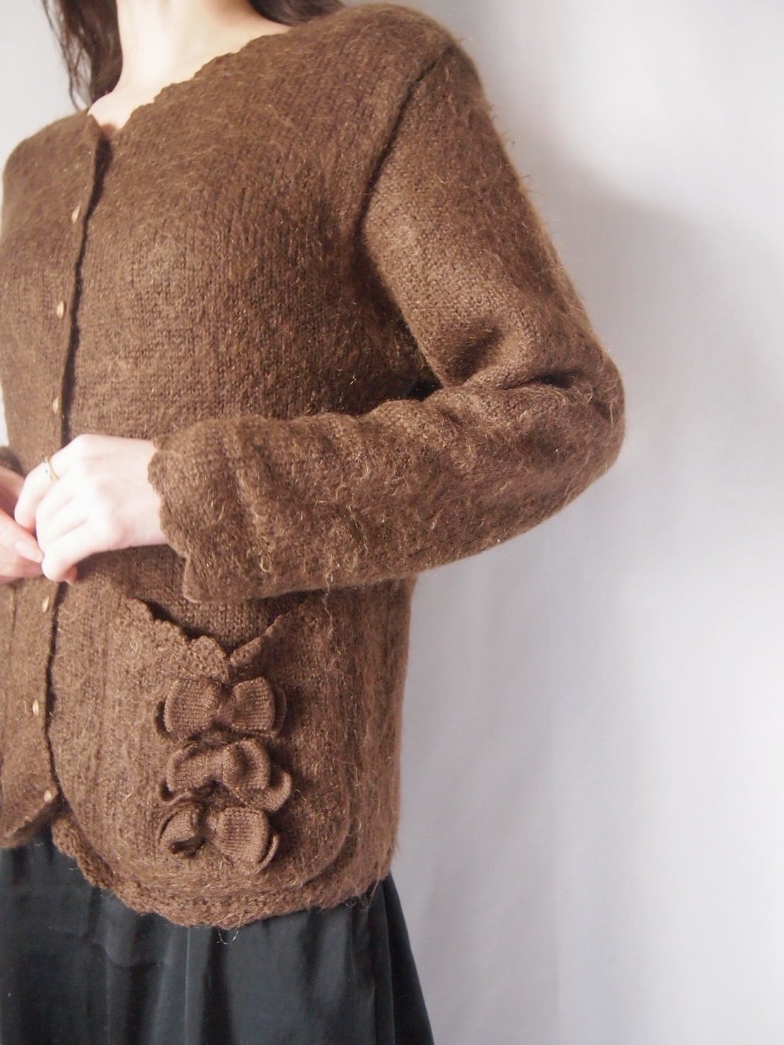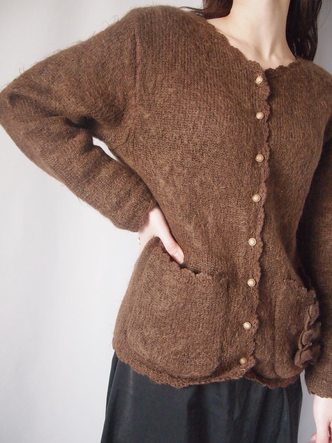 ブラウンリボンニットカーディガン
