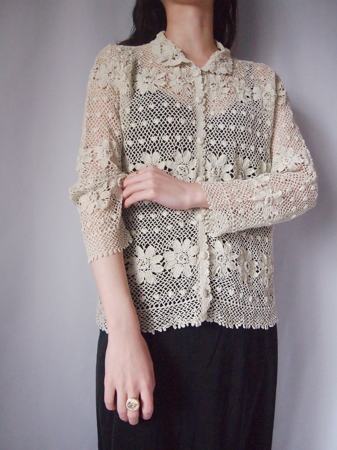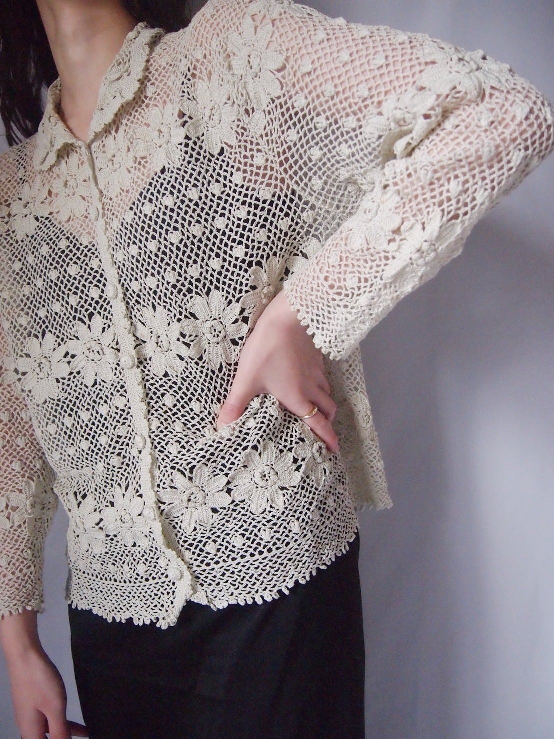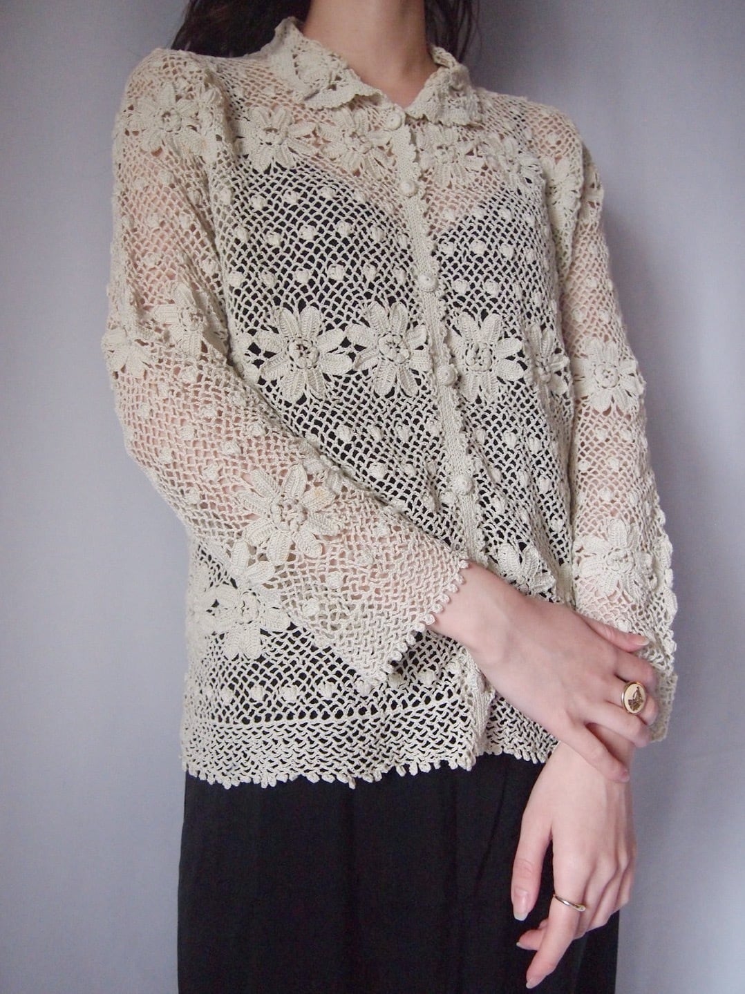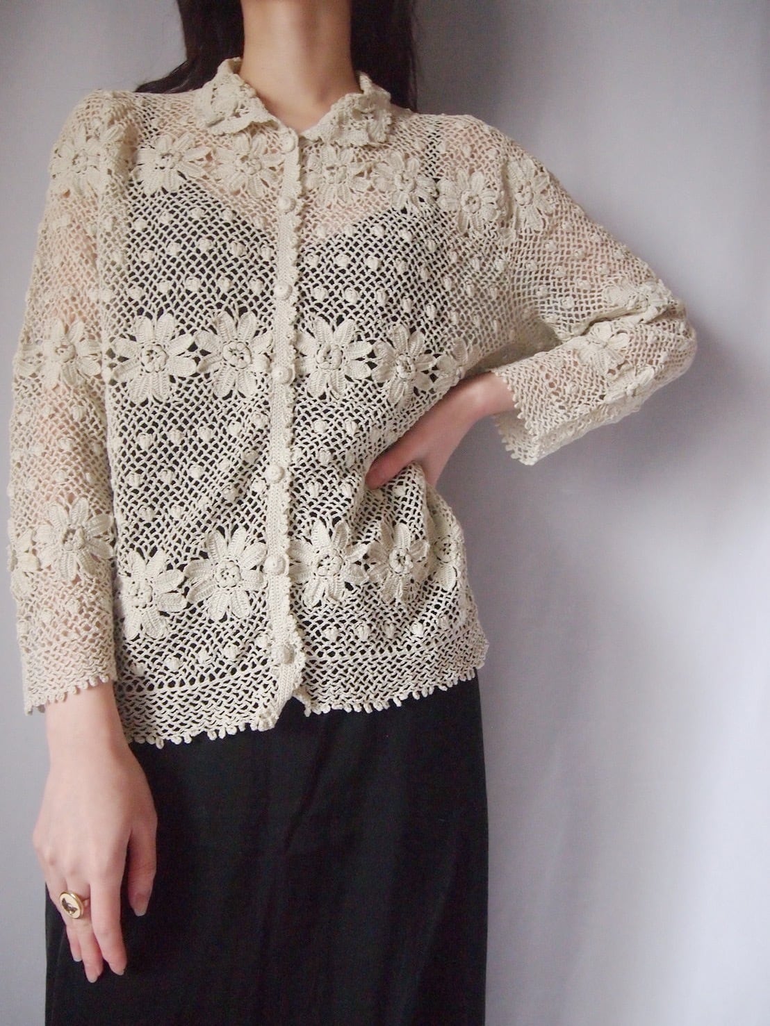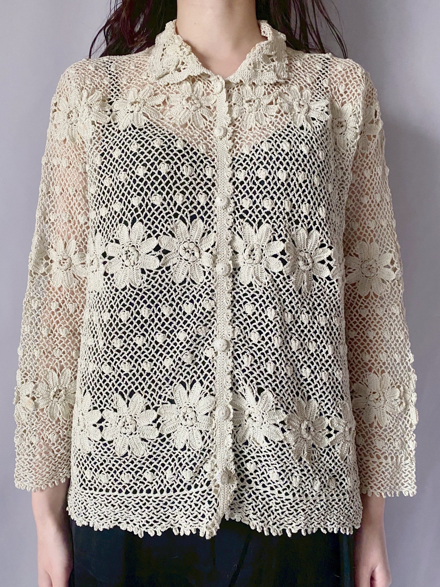お花かぎ編みカーディガン