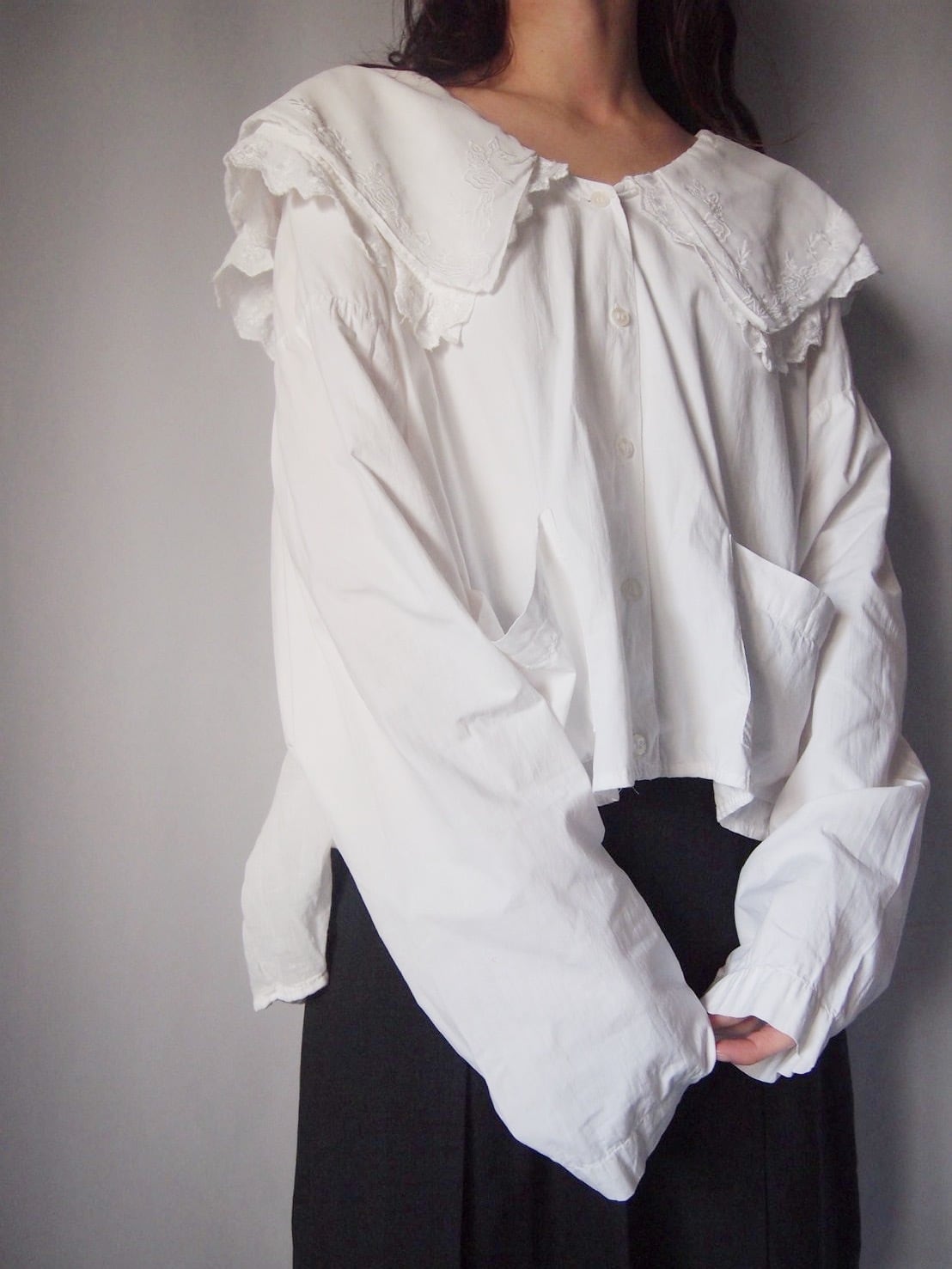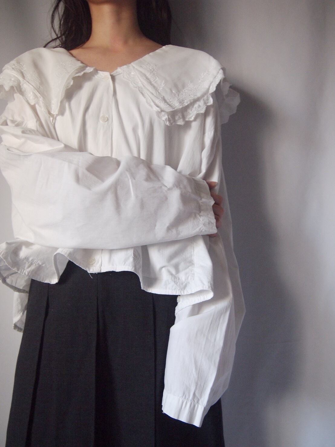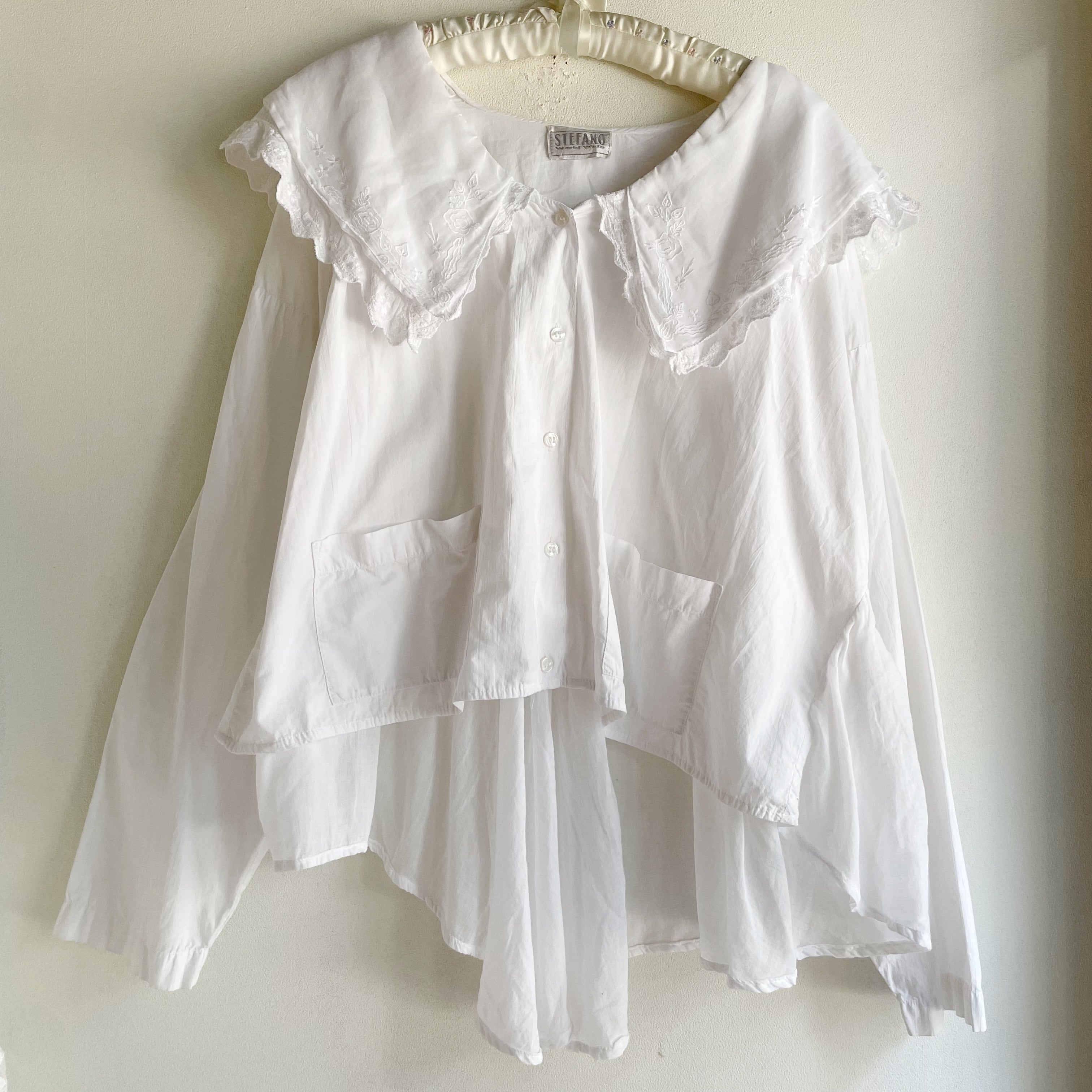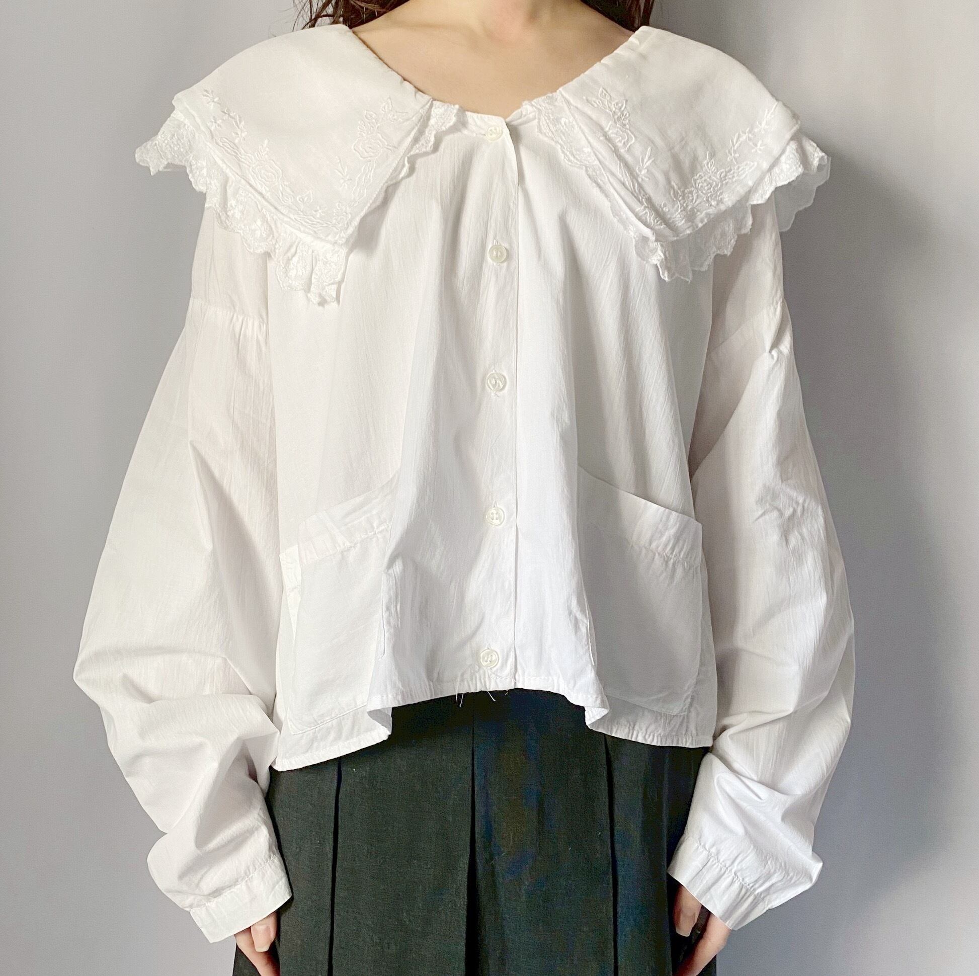 ホワイトドッキング刺繍ブラウス