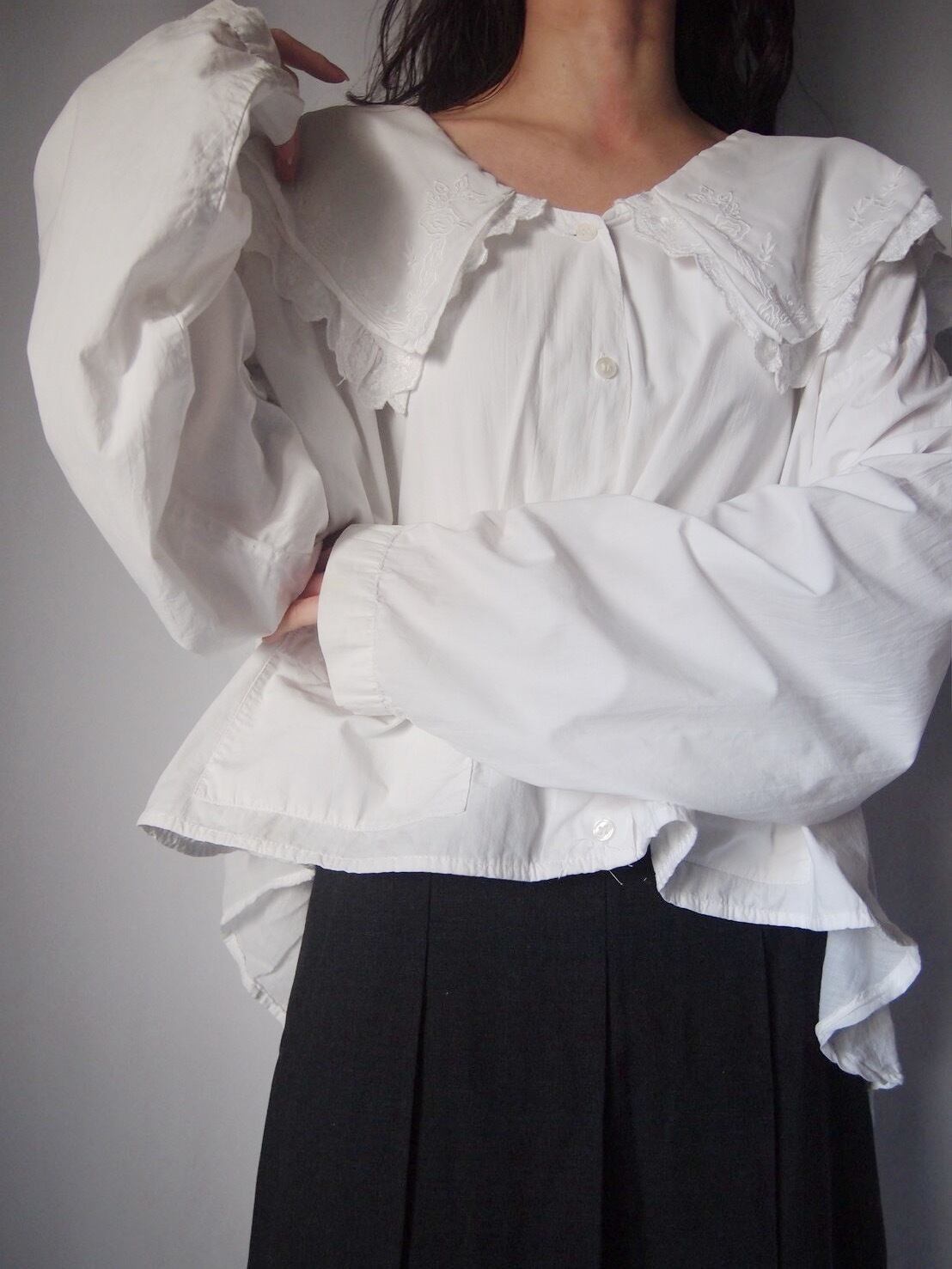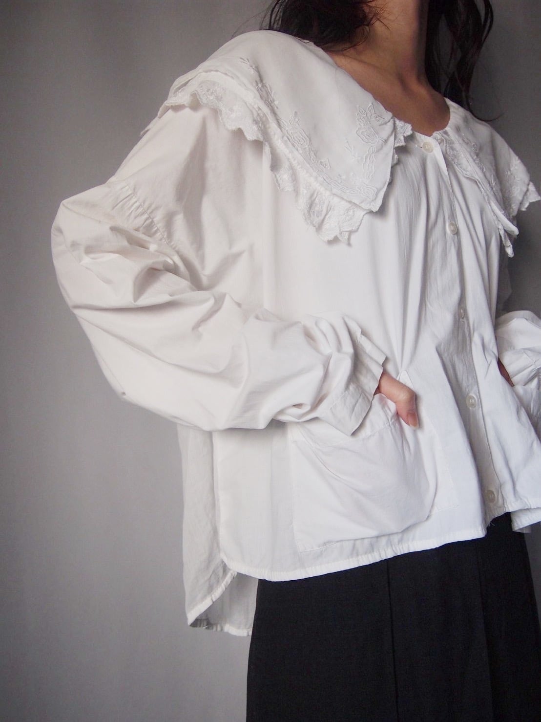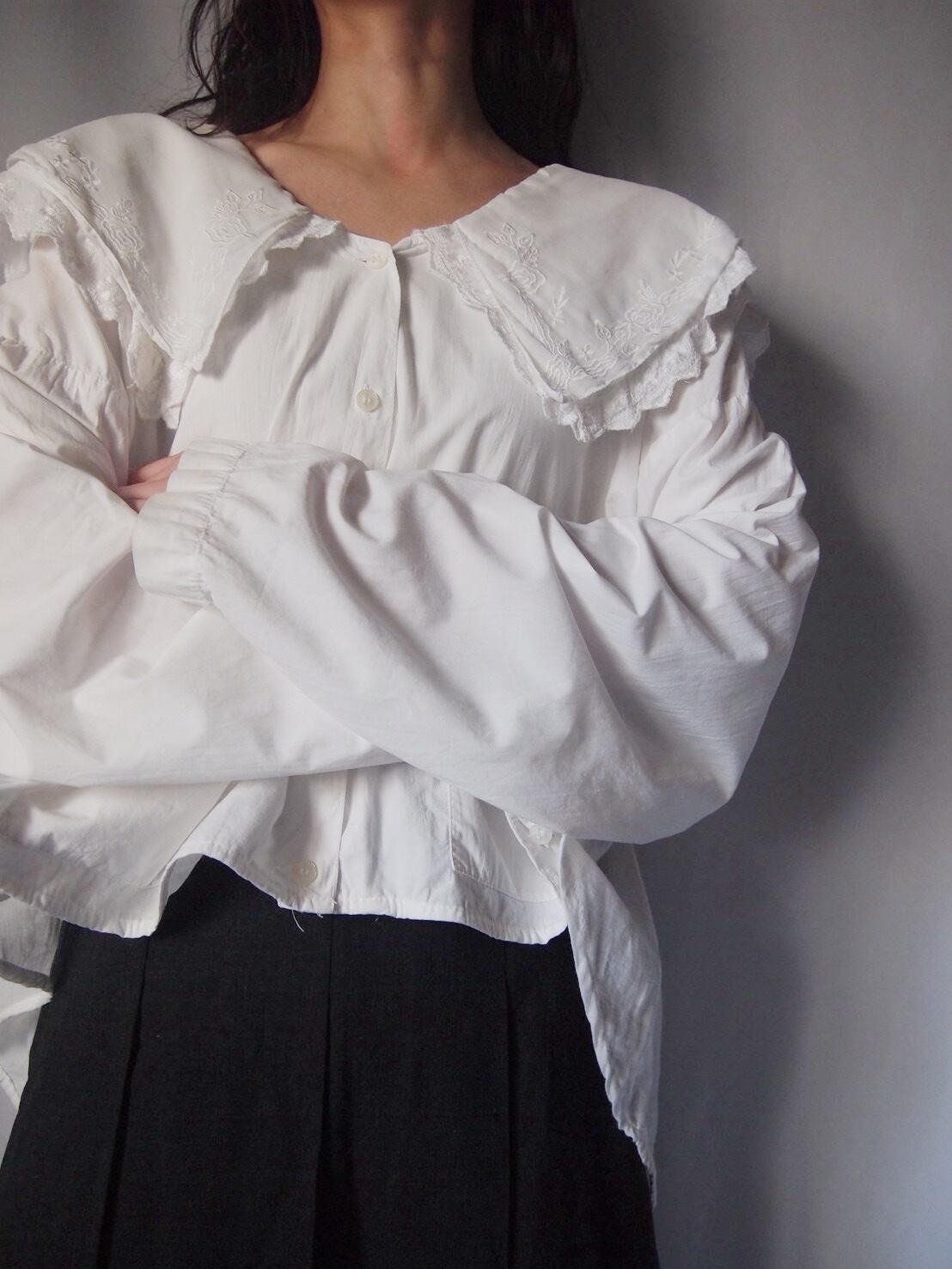 ホワイトドッキング刺繍ブラウス