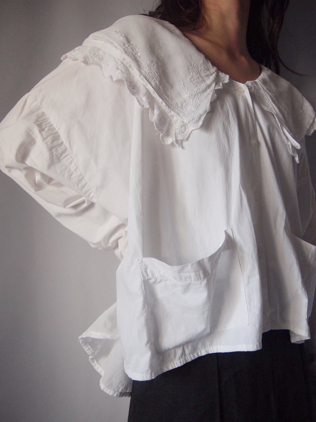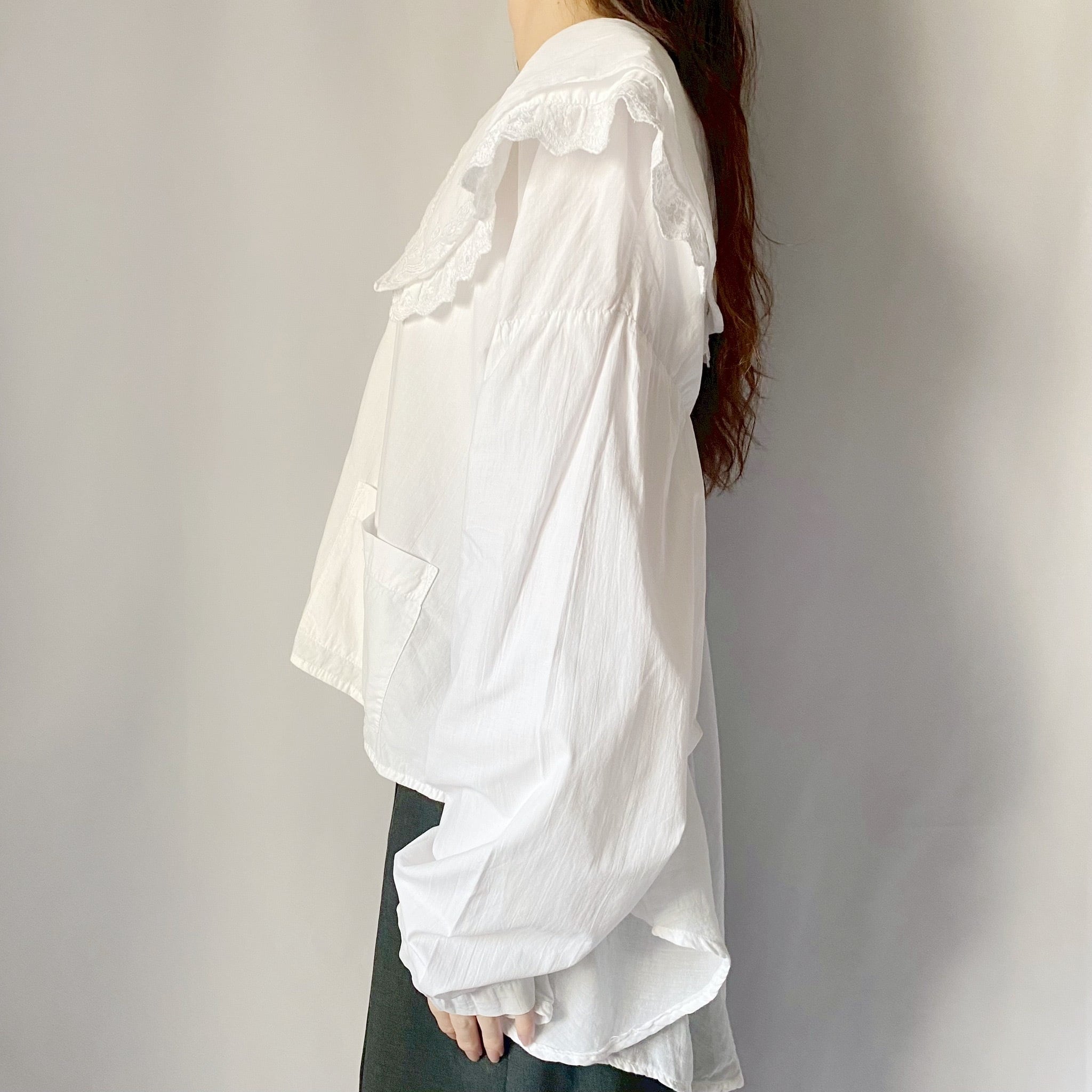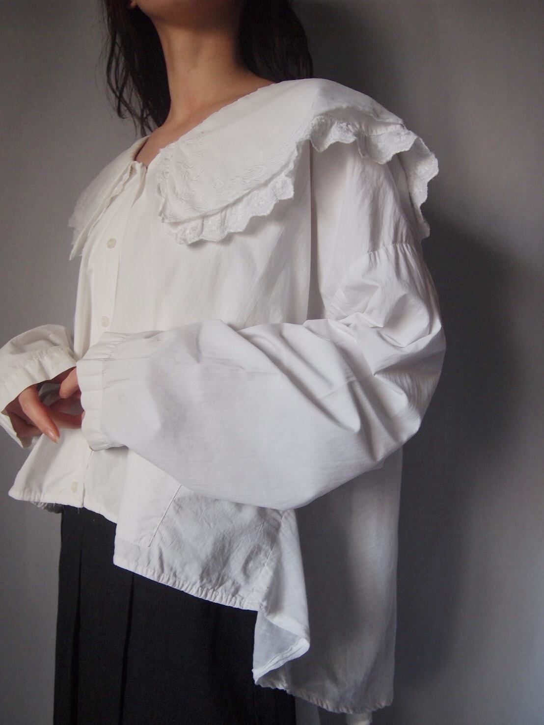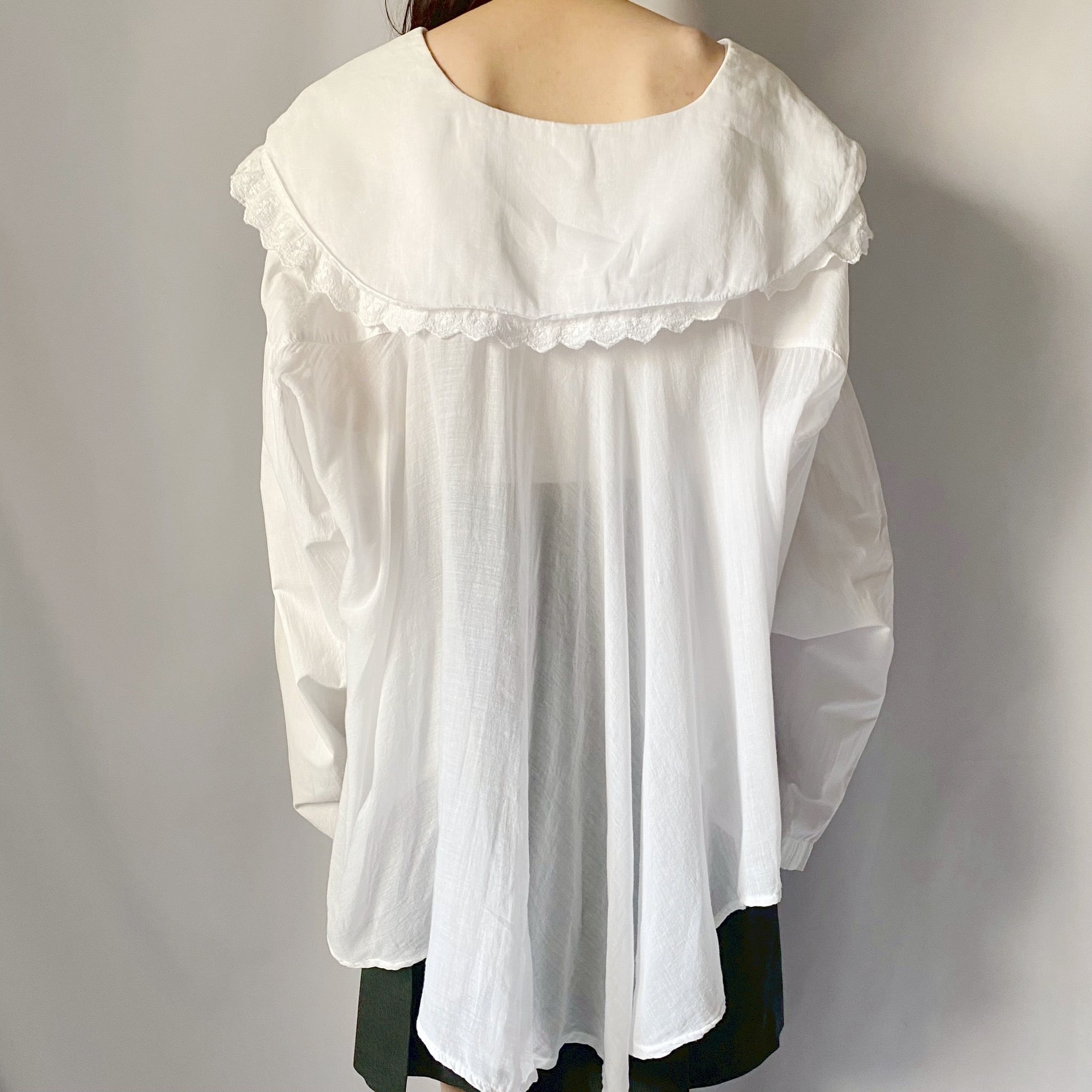 ホワイトドッキング刺繍ブラウス