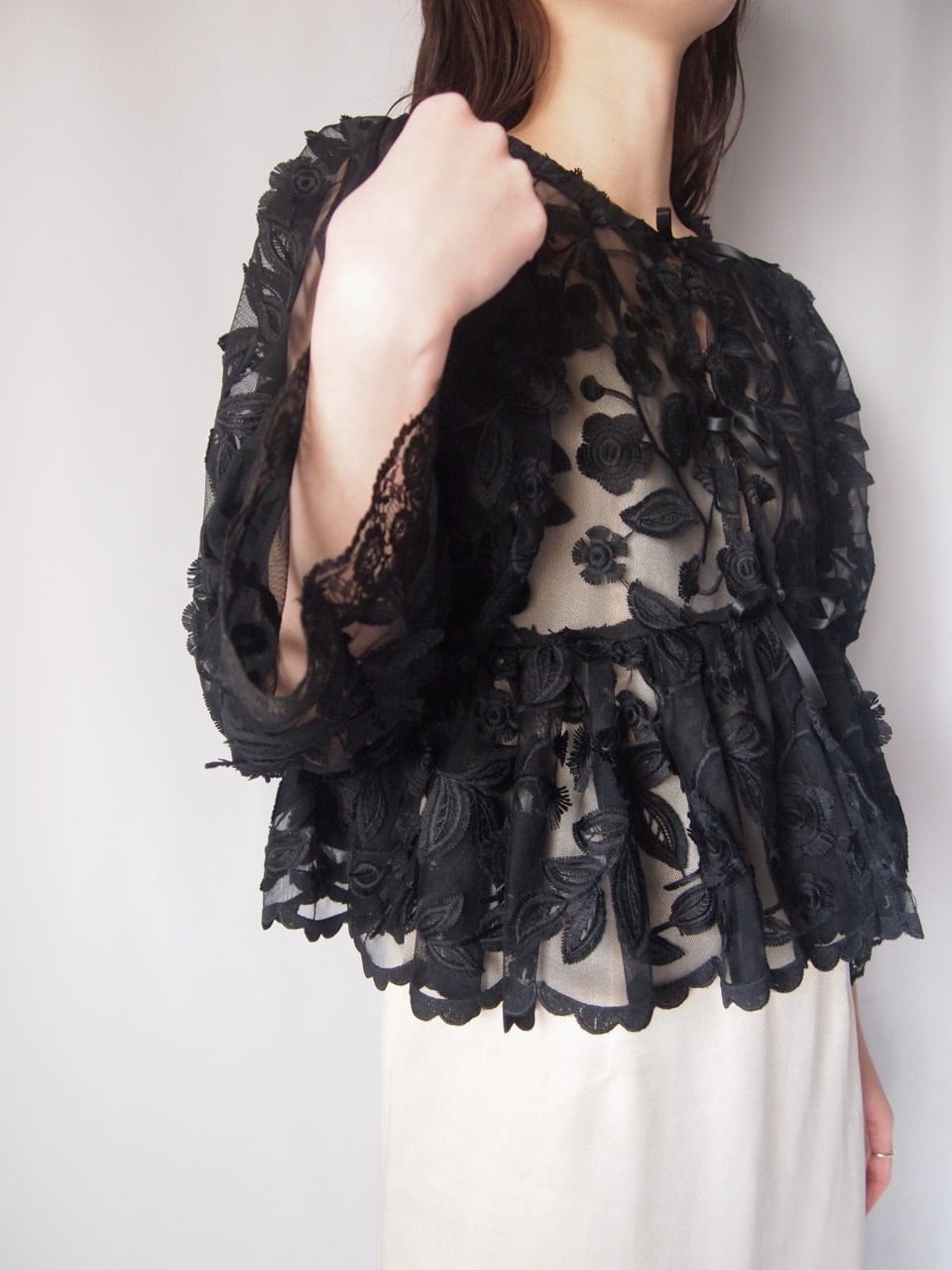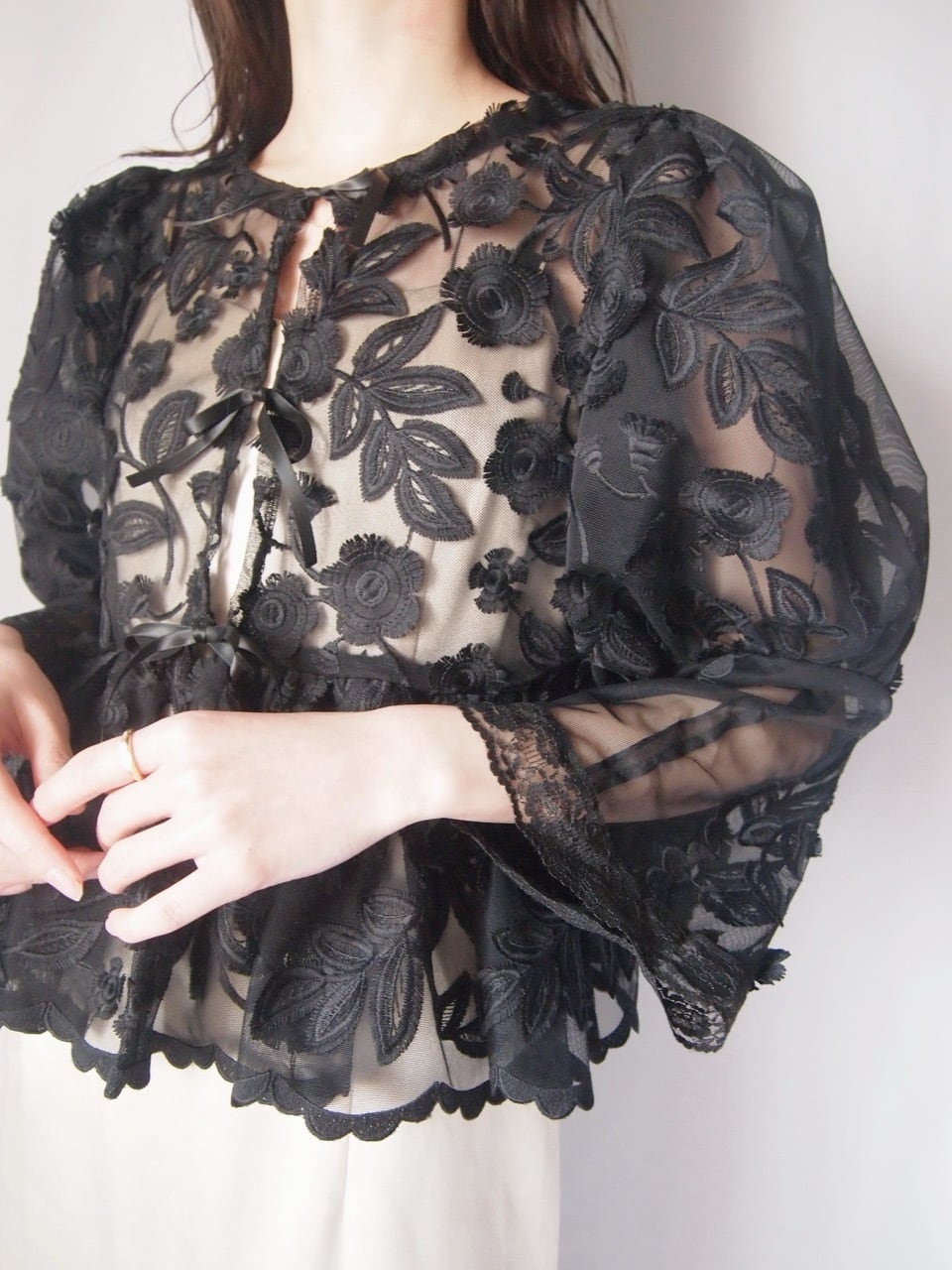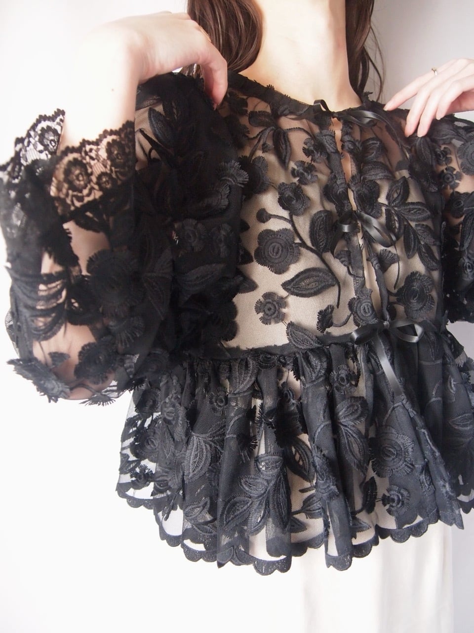 ブラックお花刺繍レースジャケット