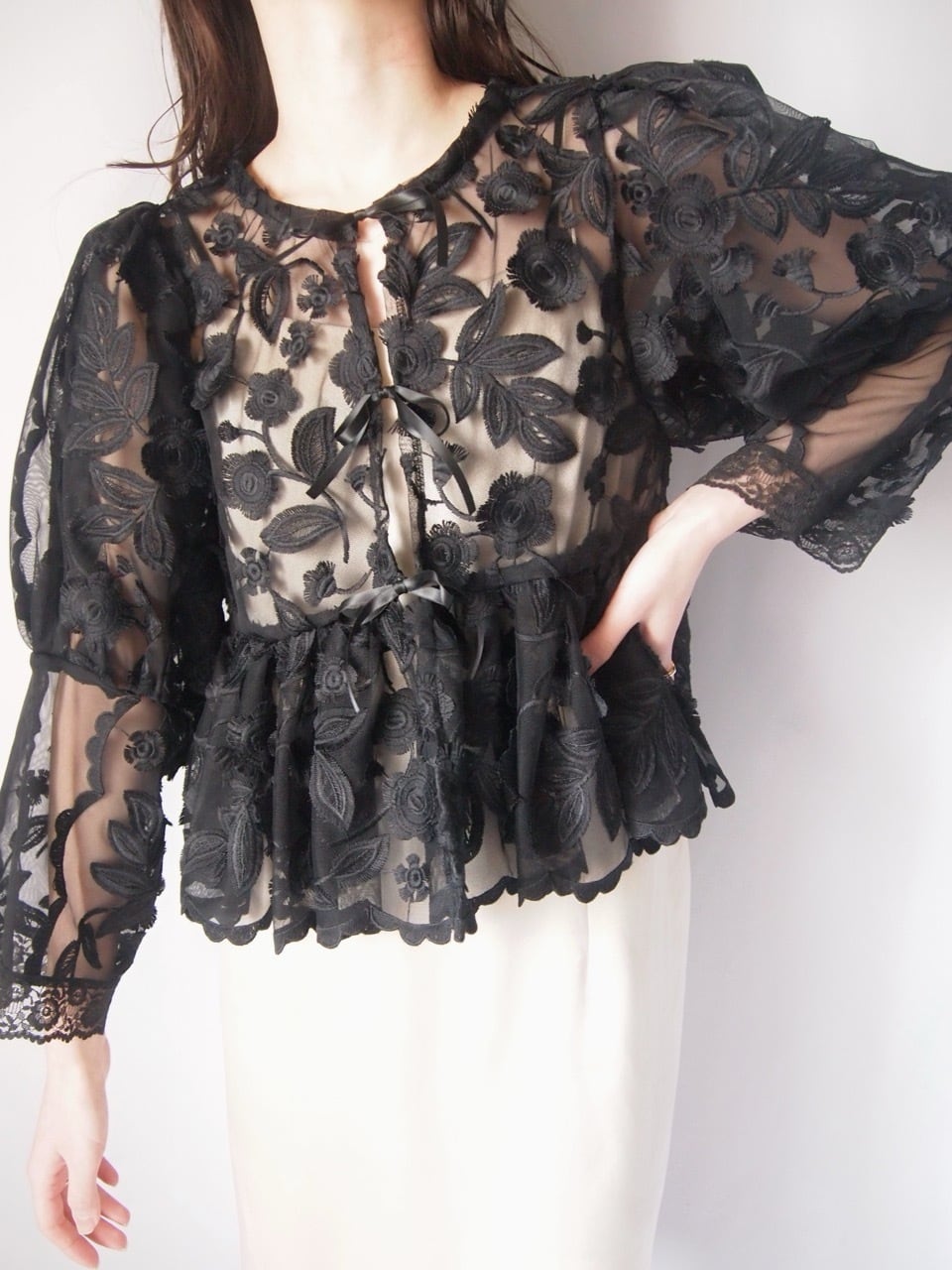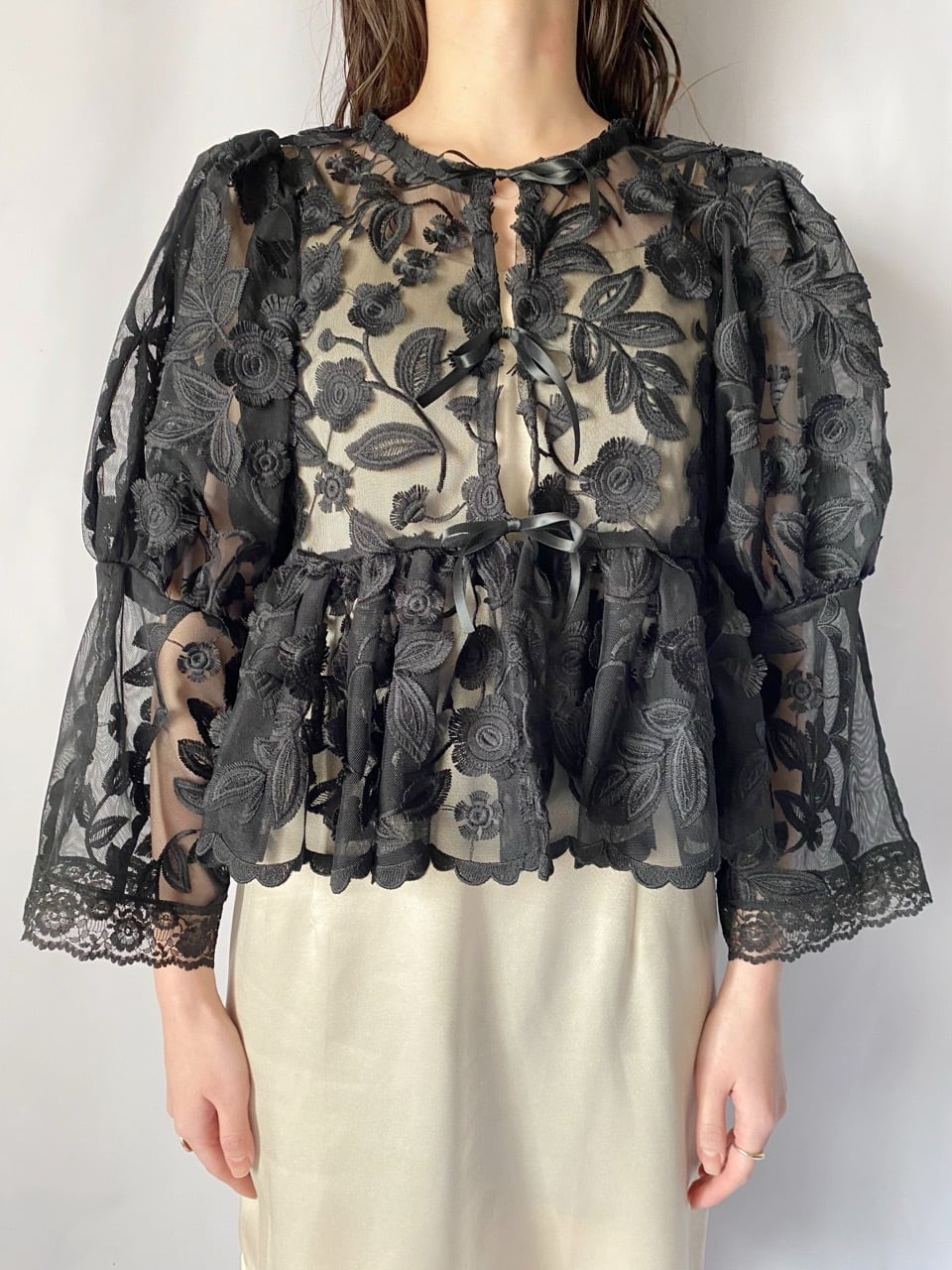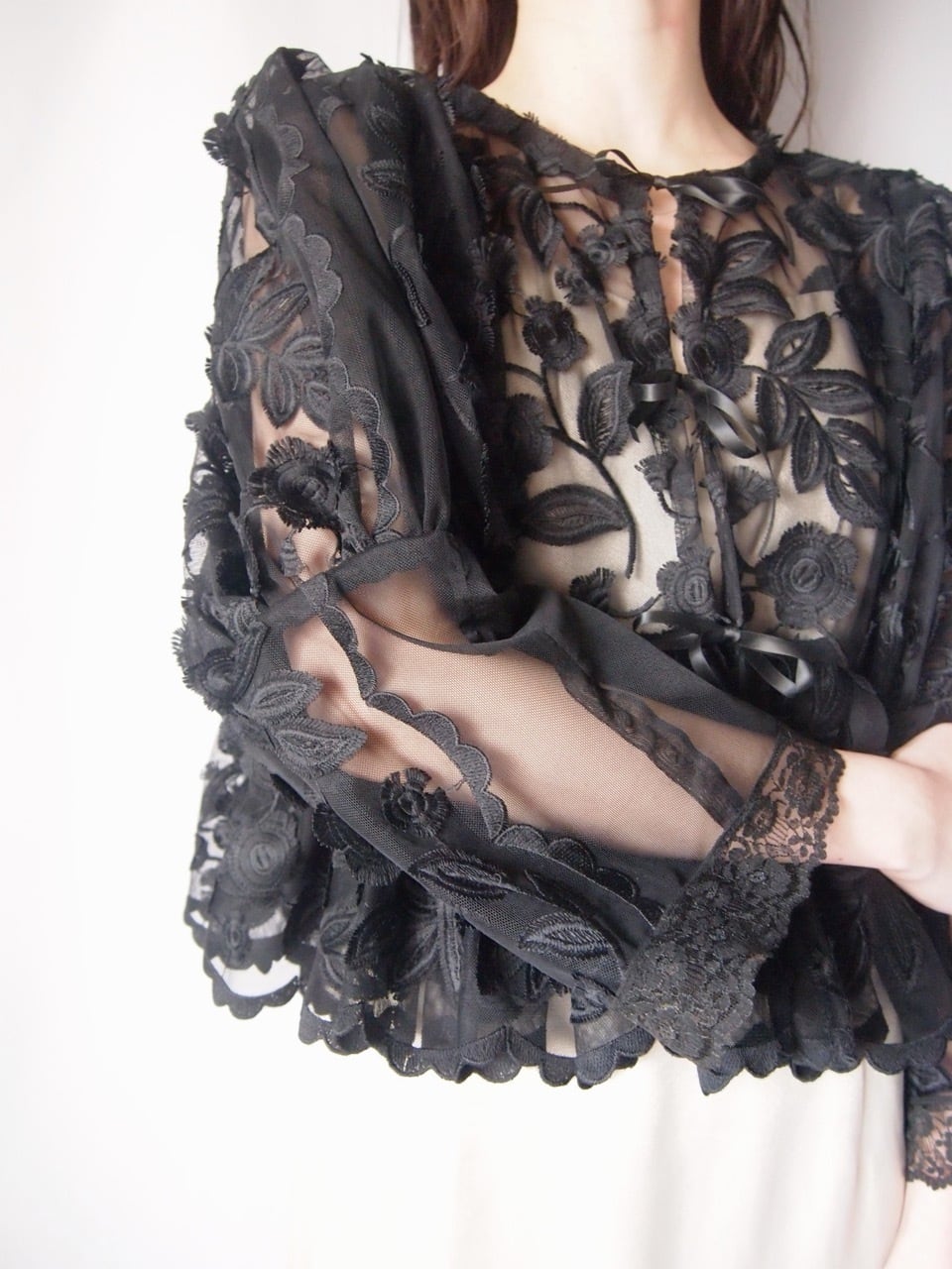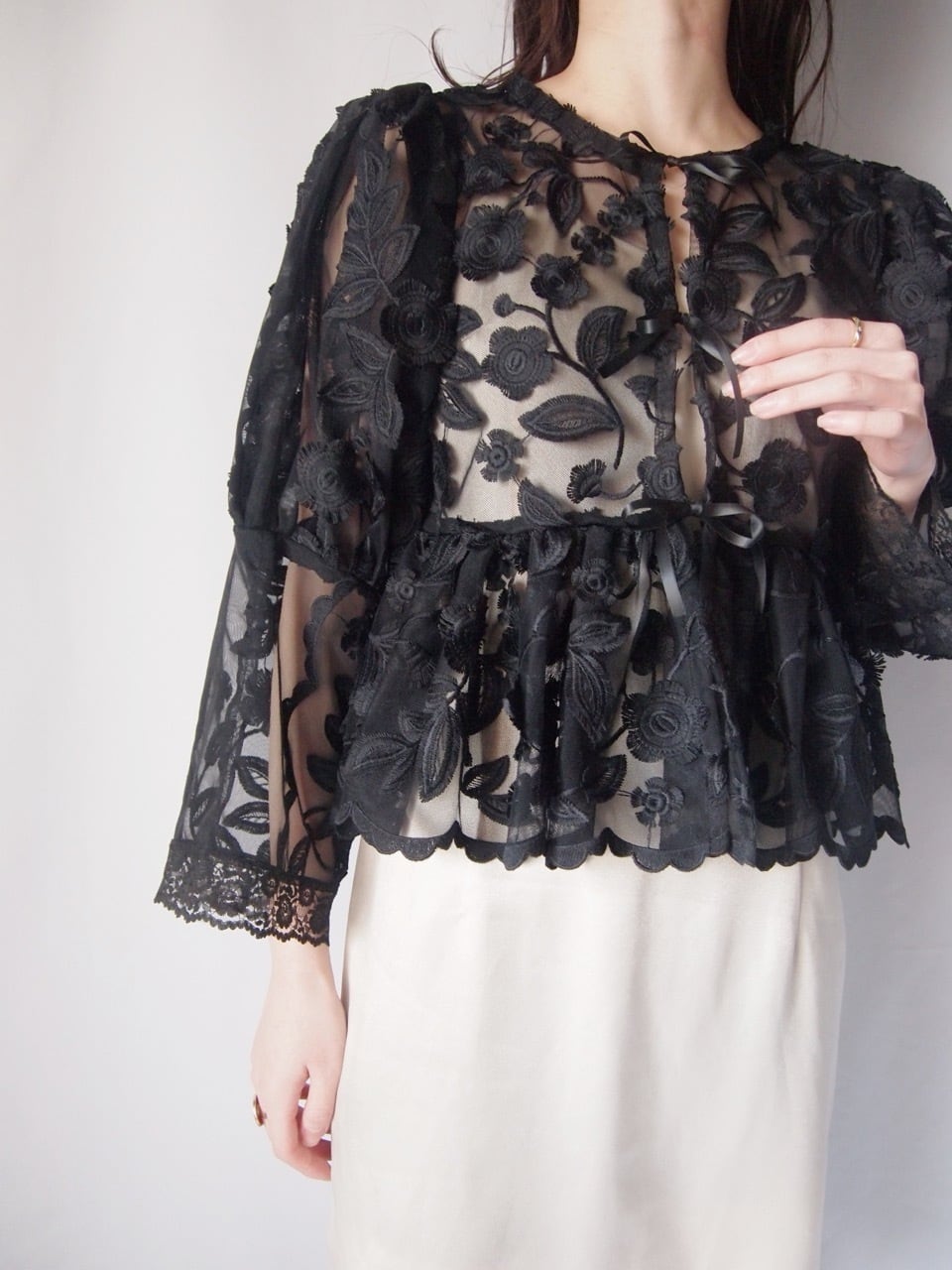 ブラックお花刺繍レースジャケット