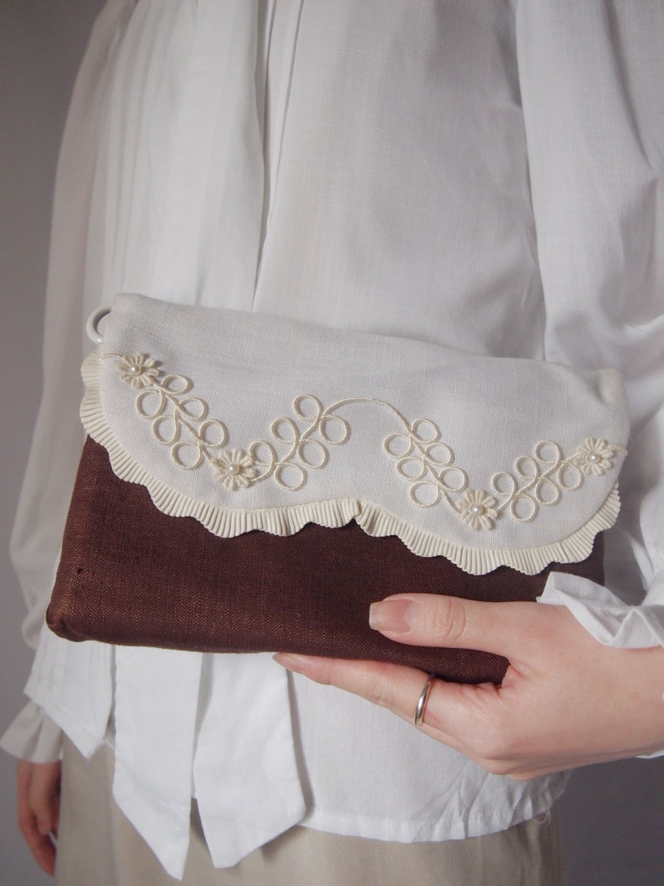 ブラウンコード刺繍バッグ