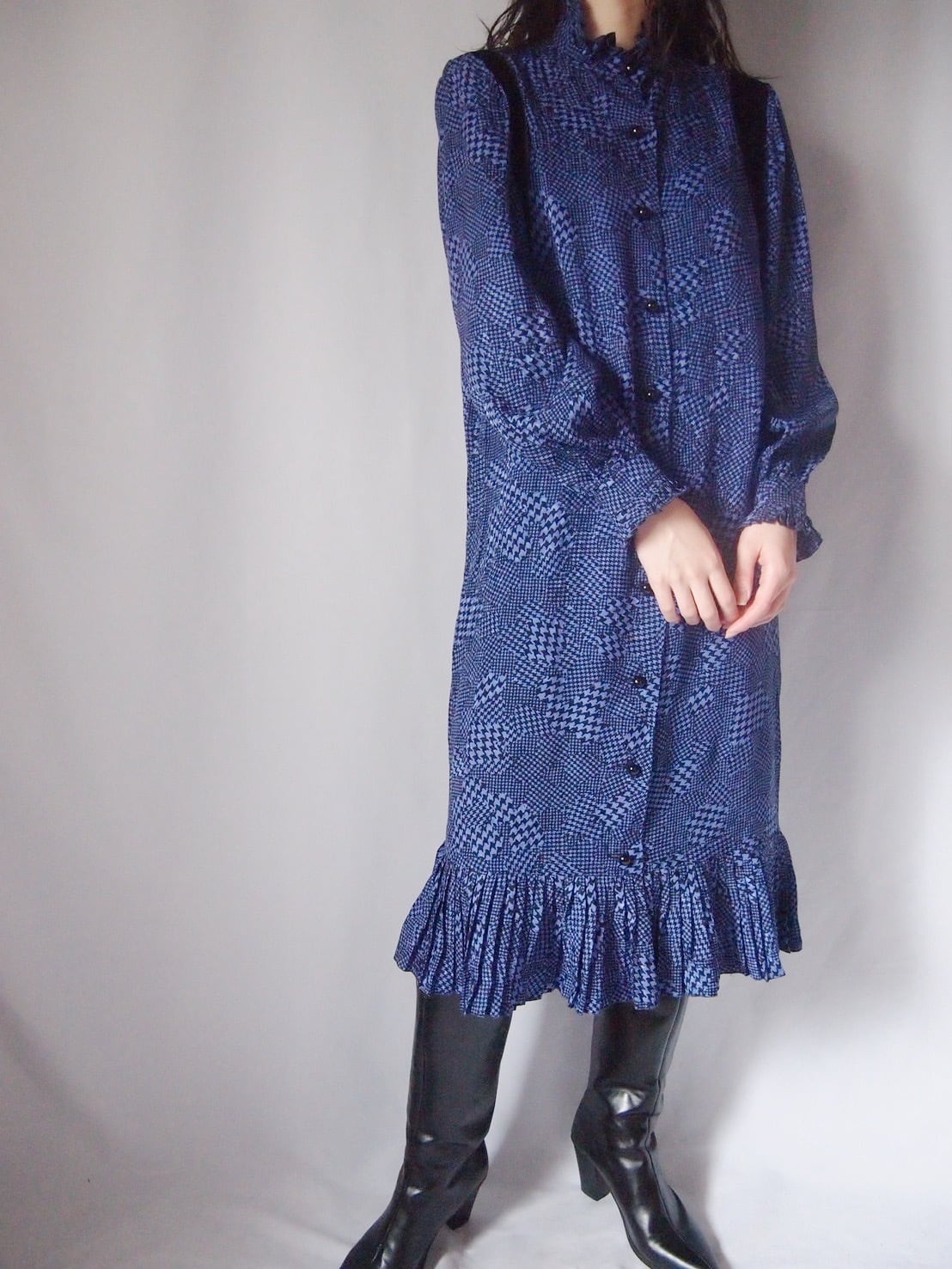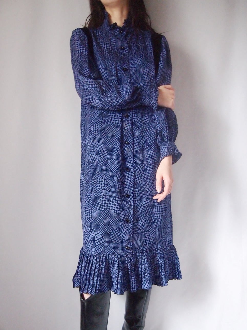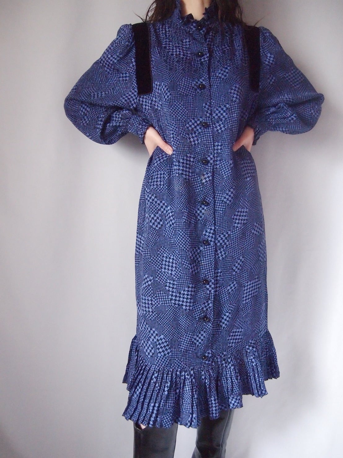 NINA RICCI パープル×ブラックシルクワンピース