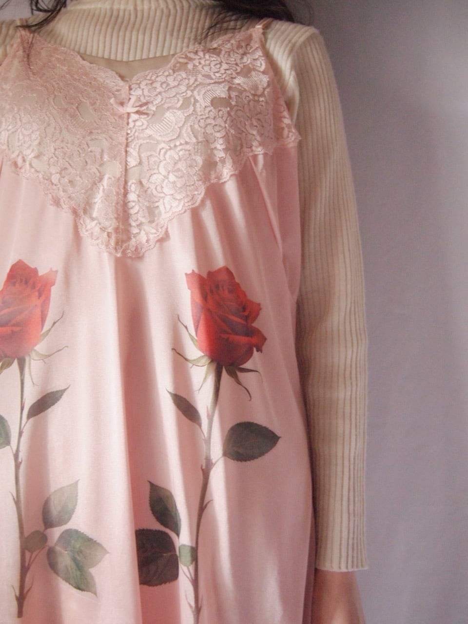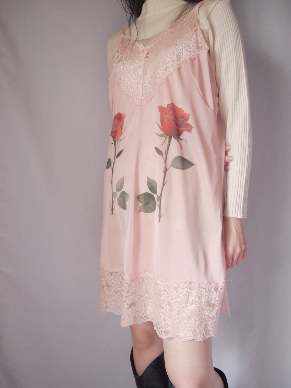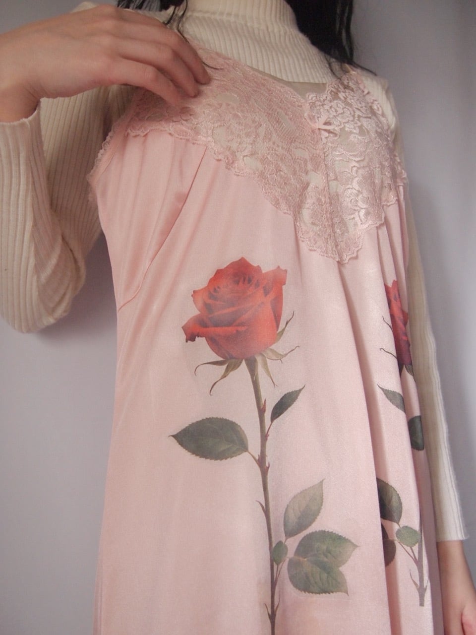 ピンクローズ柄ランジェリー