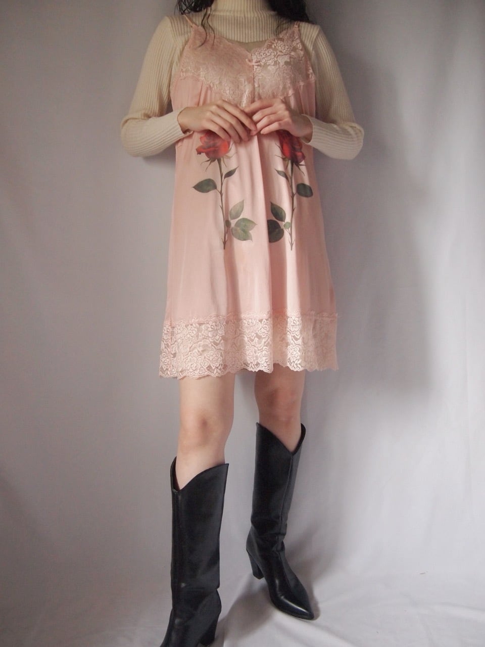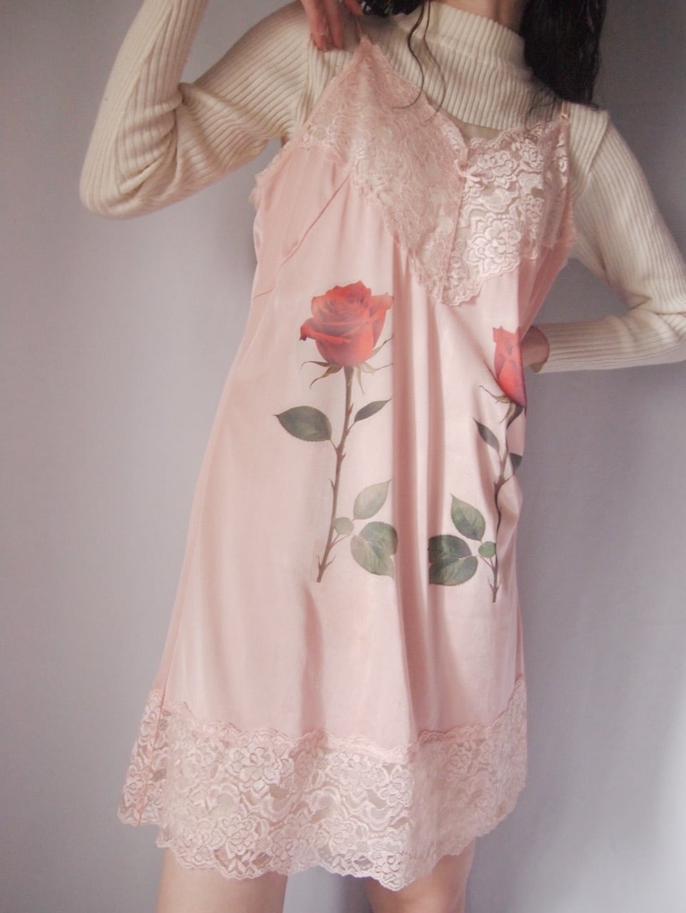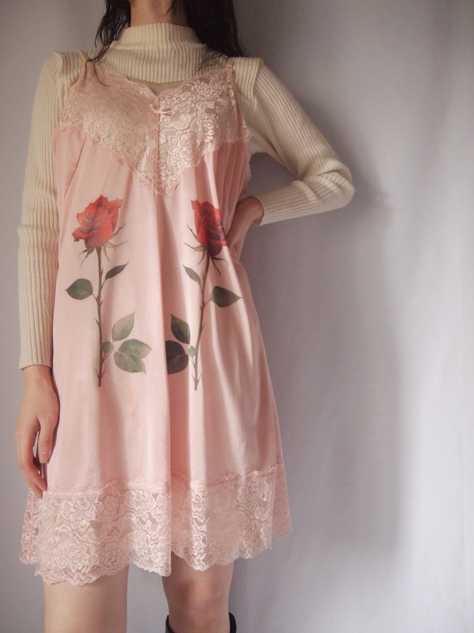 ピンクローズ柄ランジェリー