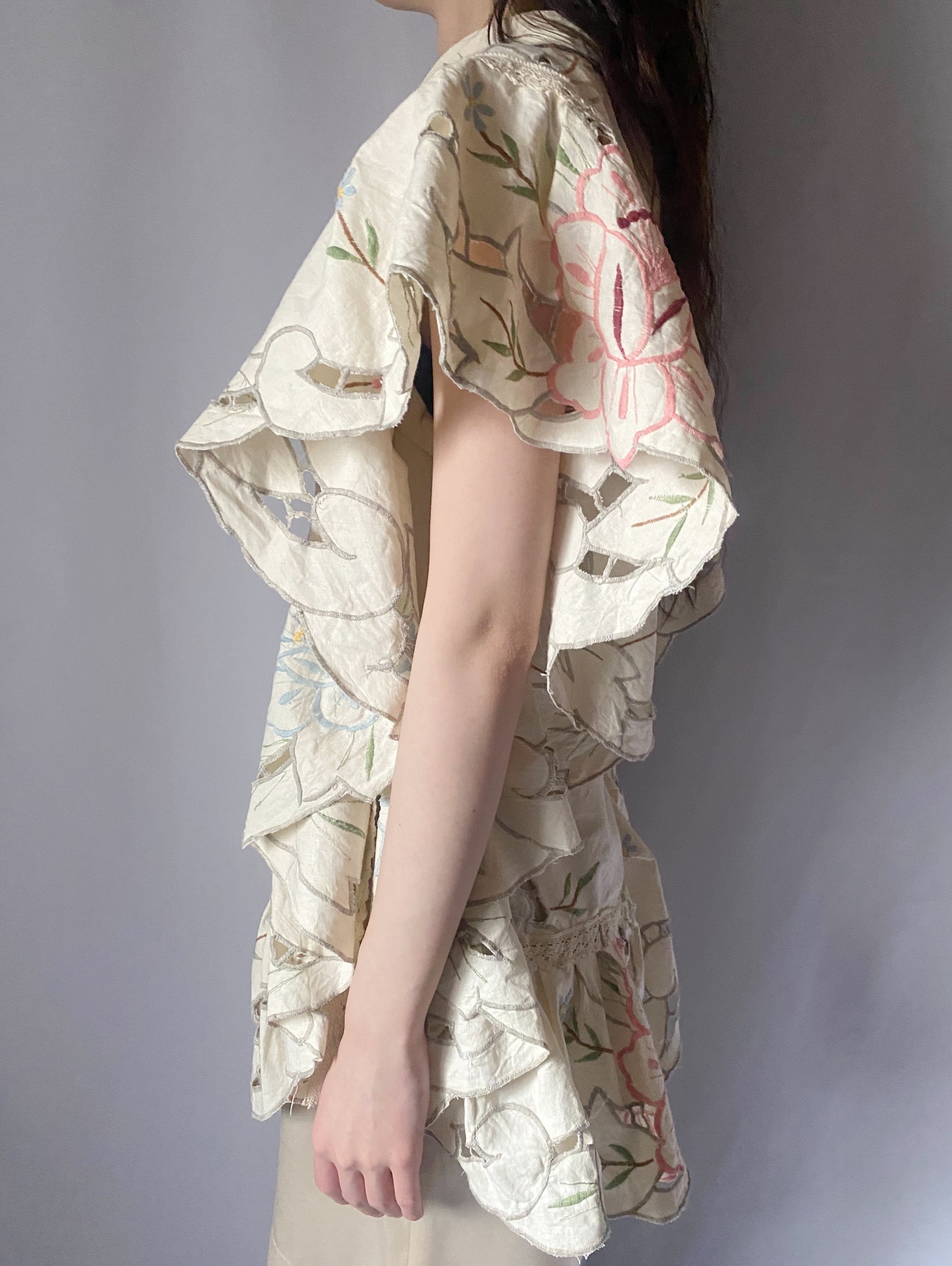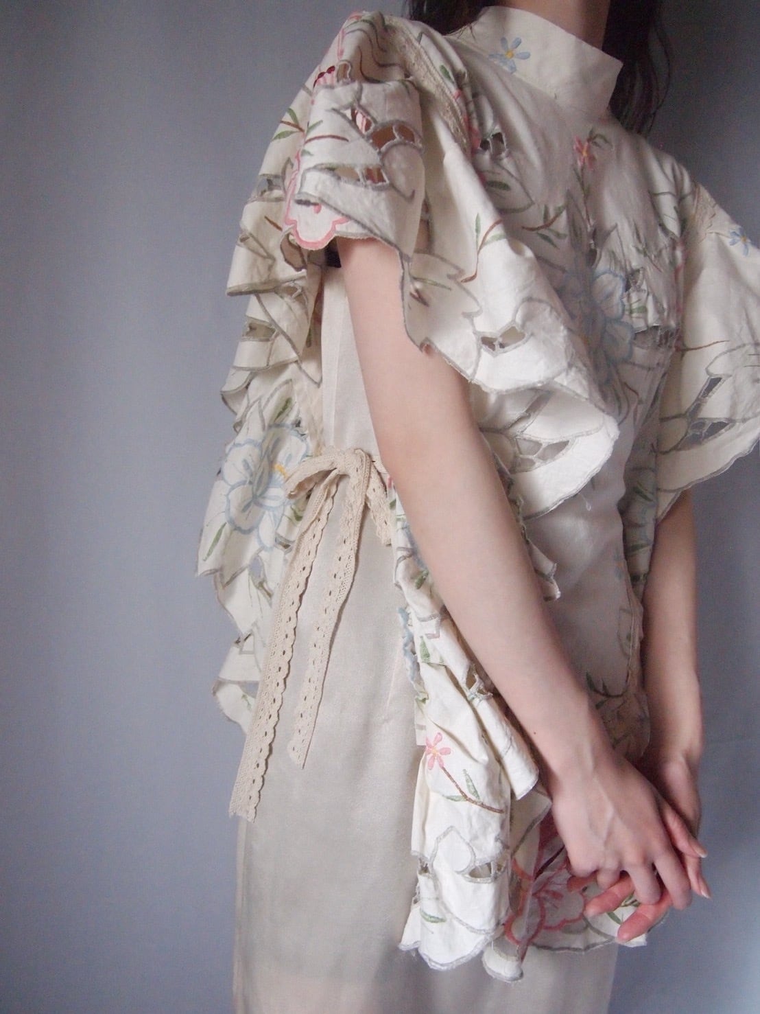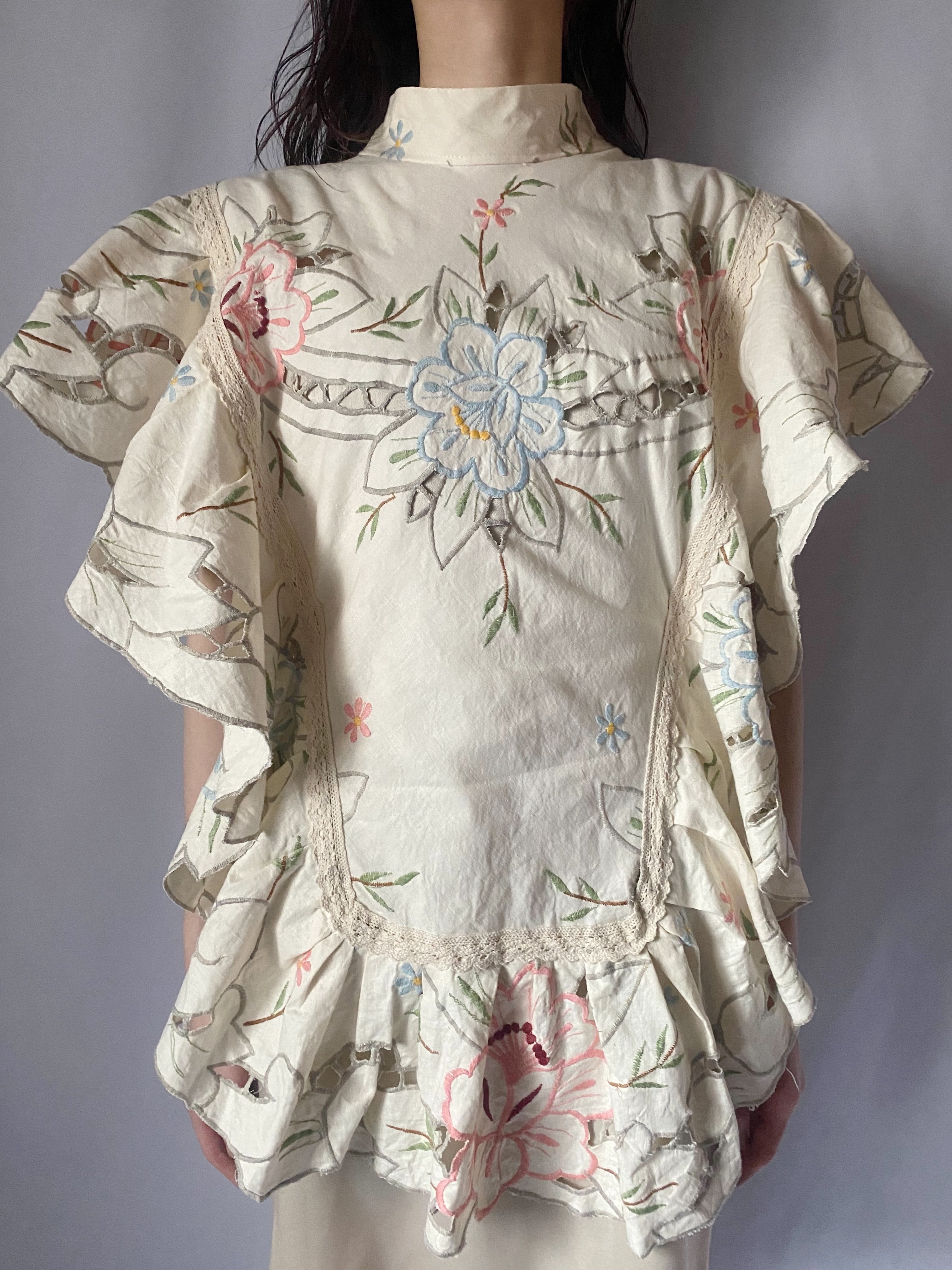 アイボリー刺繍サイドリボントップス