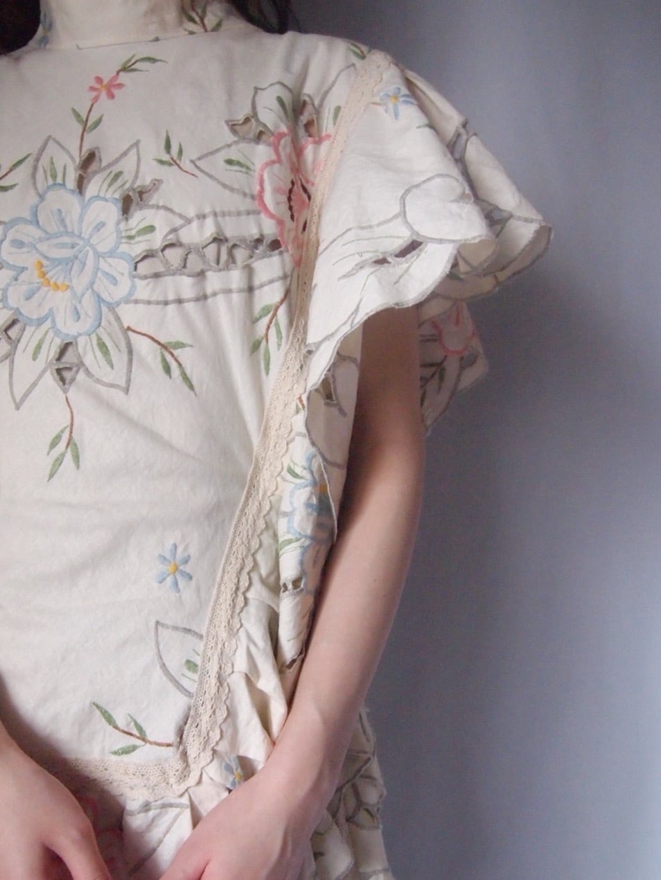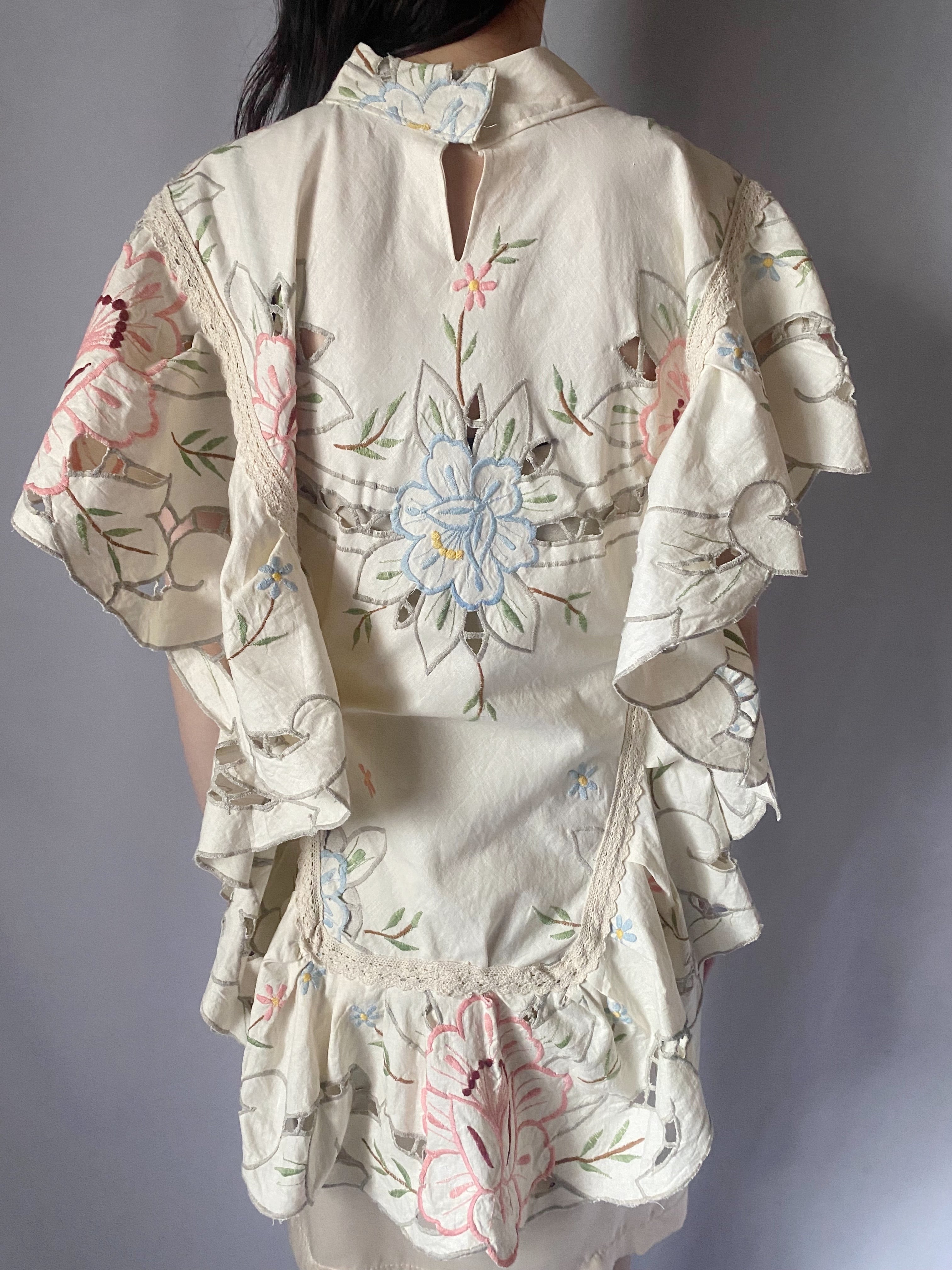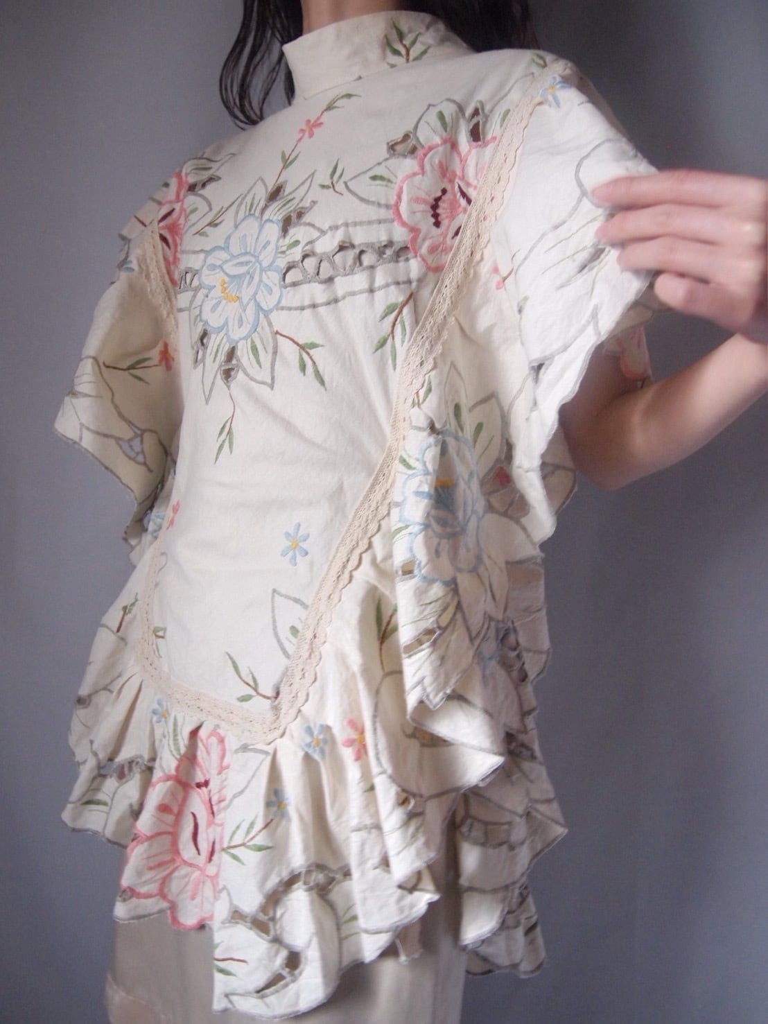 アイボリー刺繍サイドリボントップス