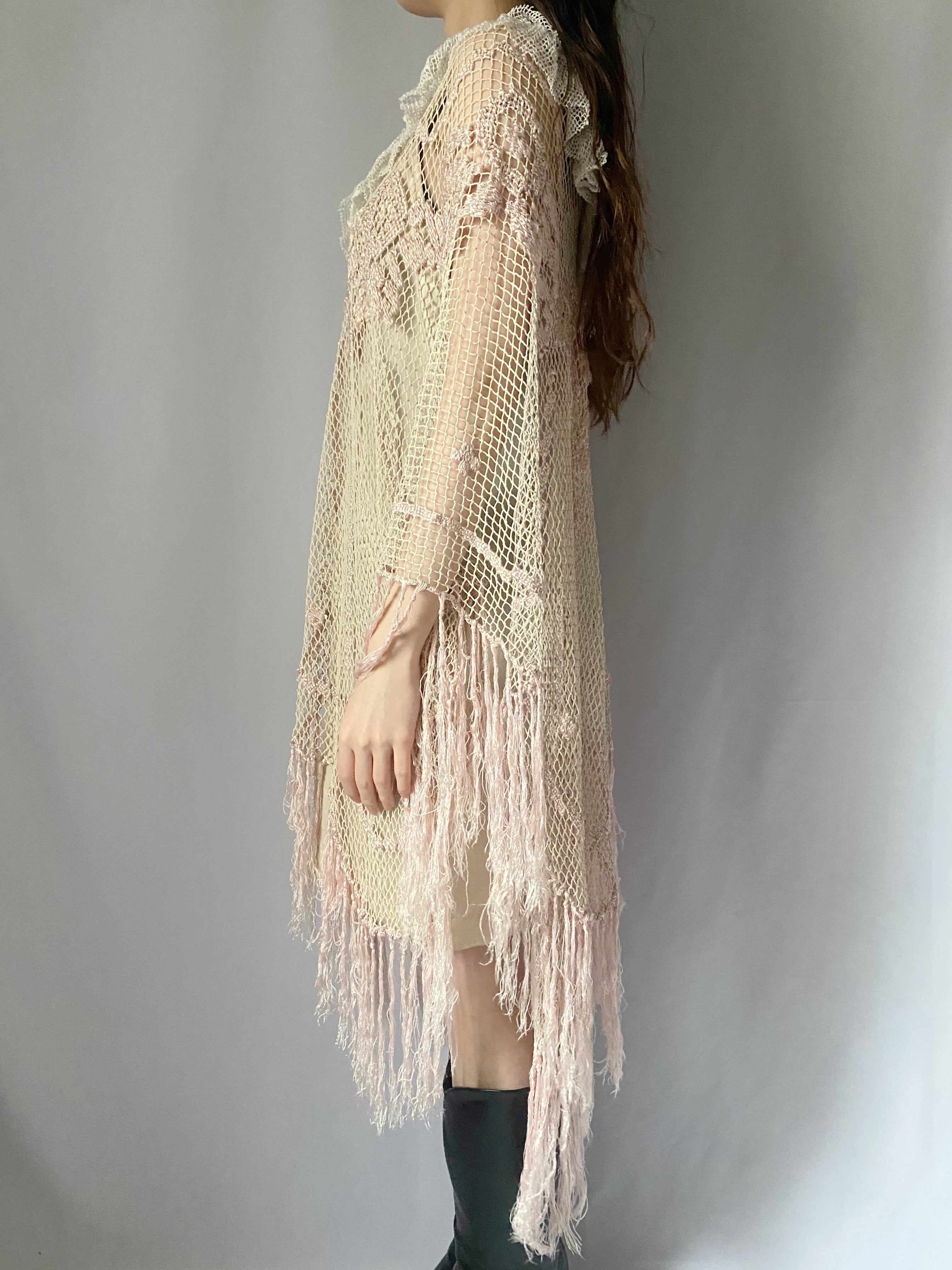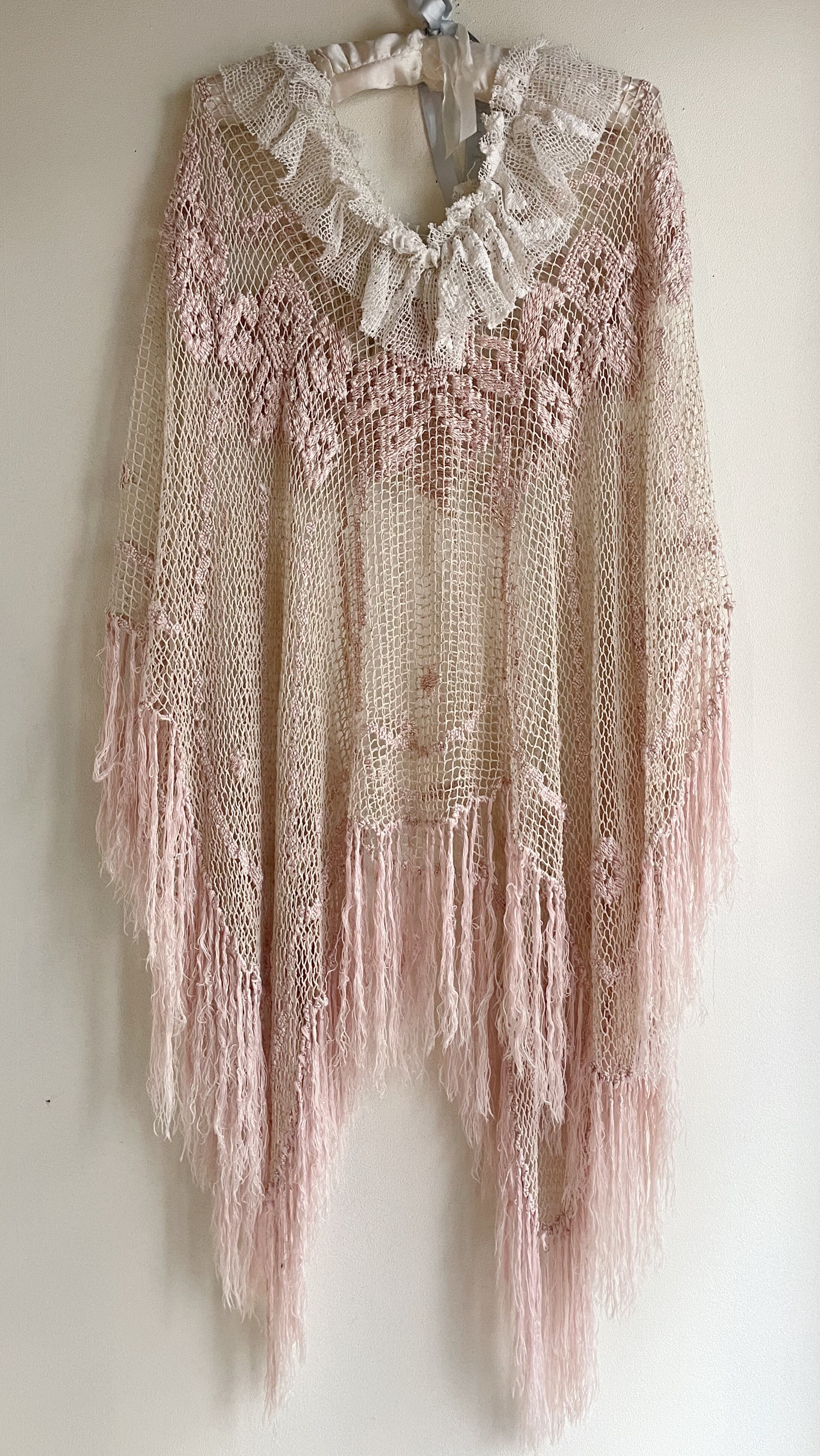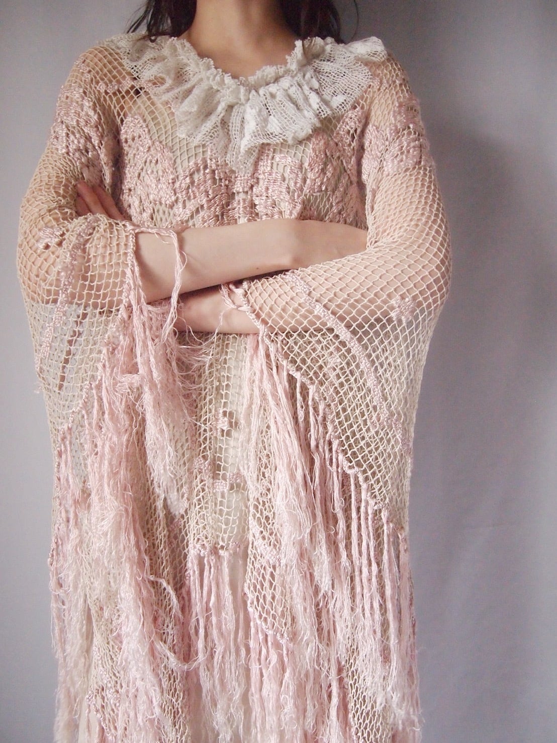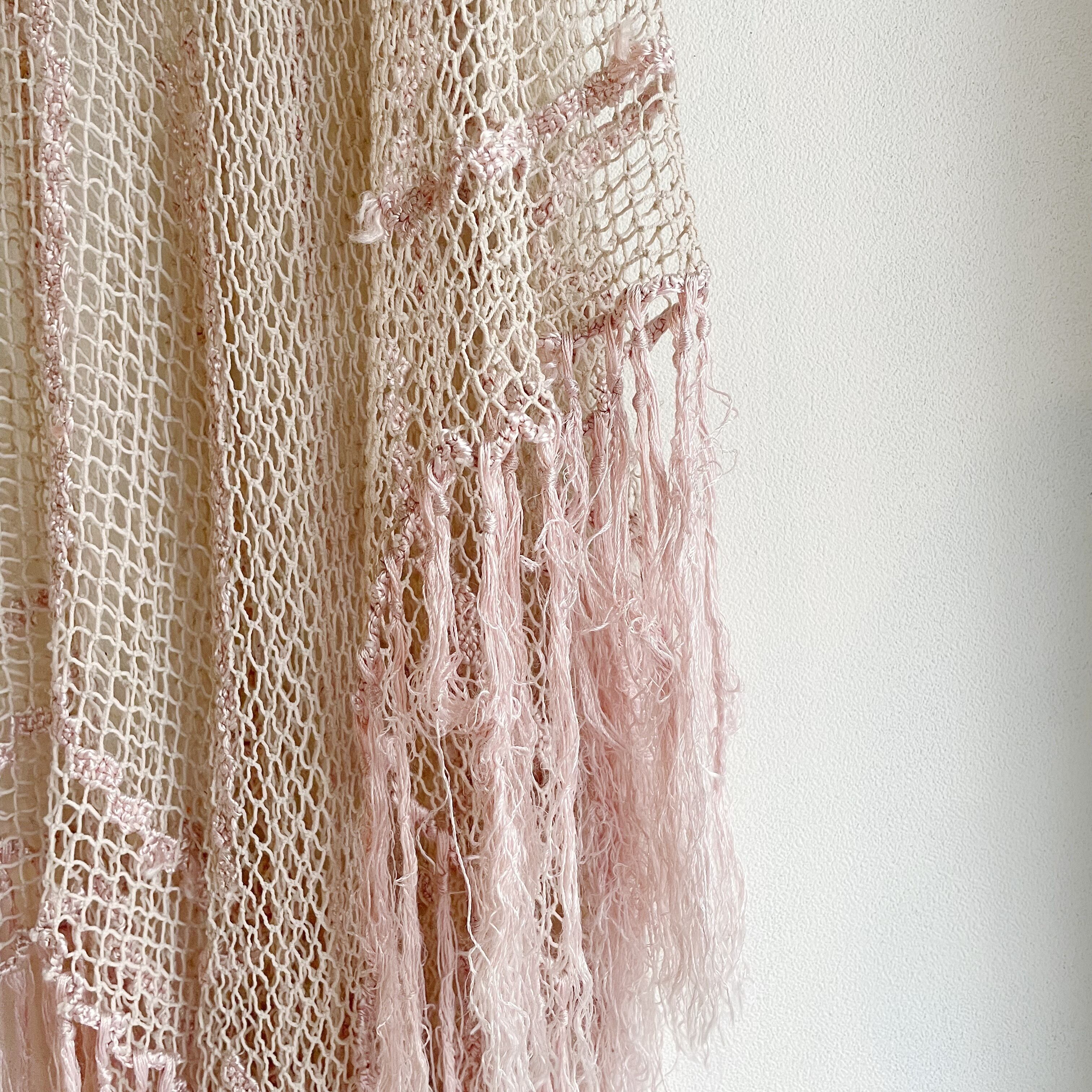 ピンクかぎ編みフリンジポンチョ