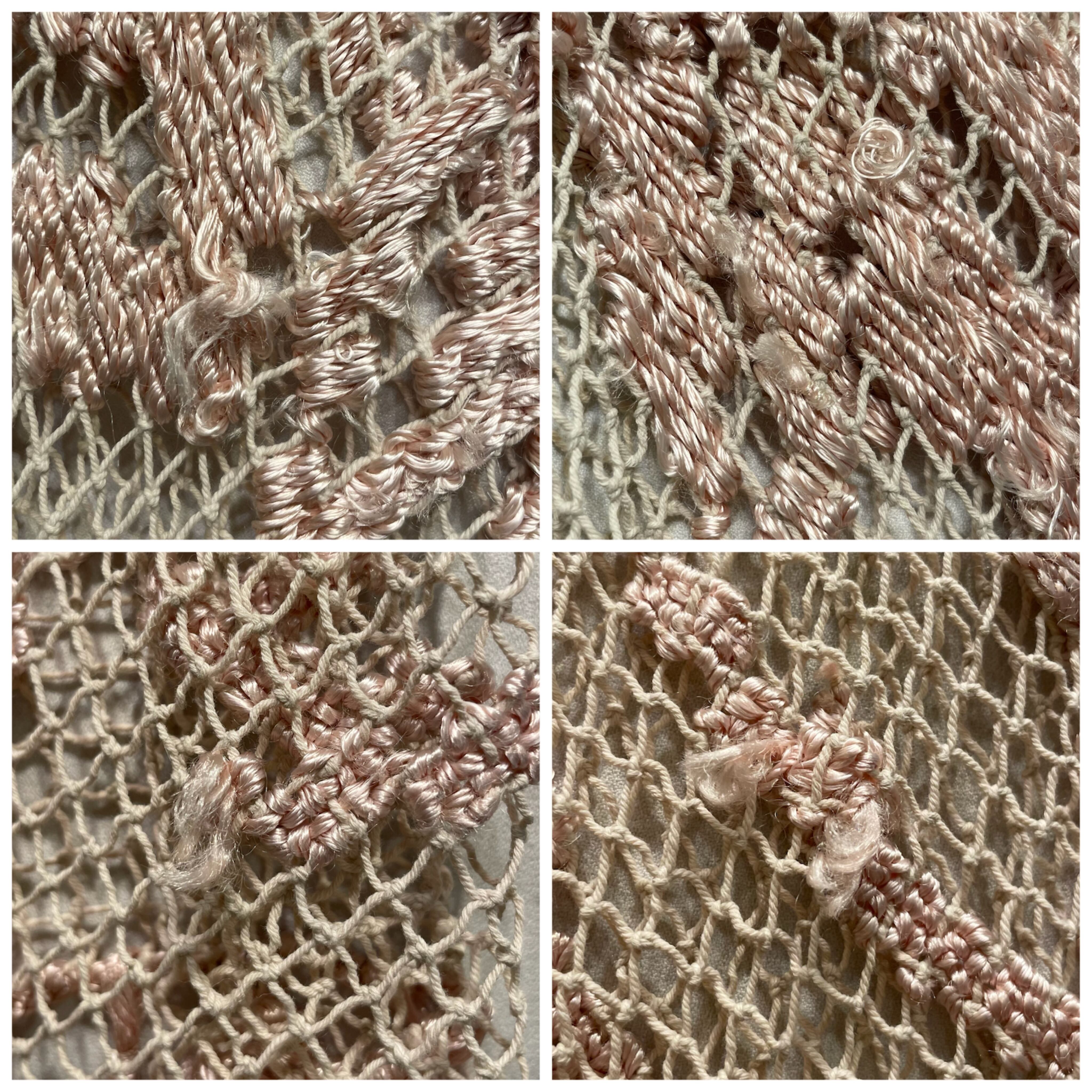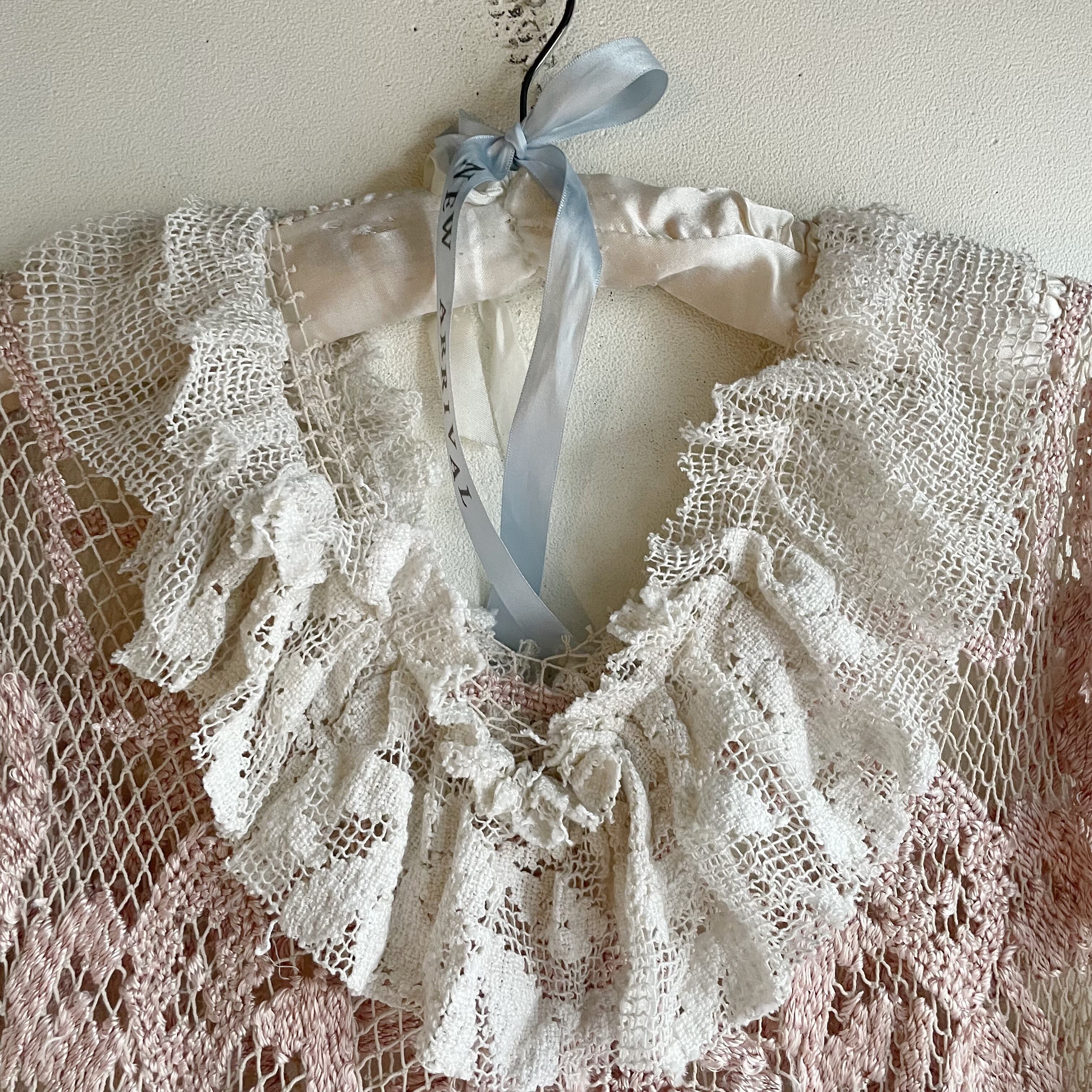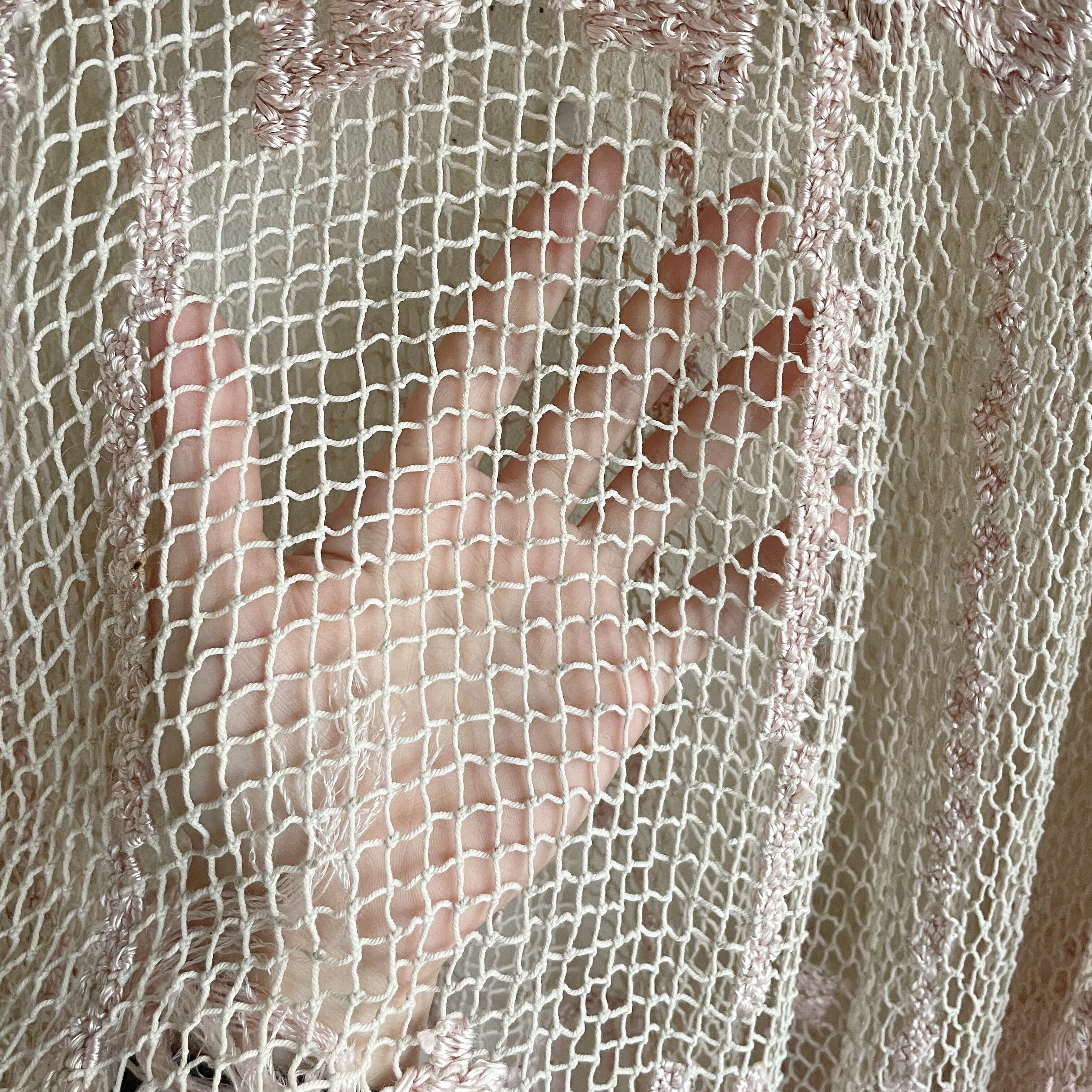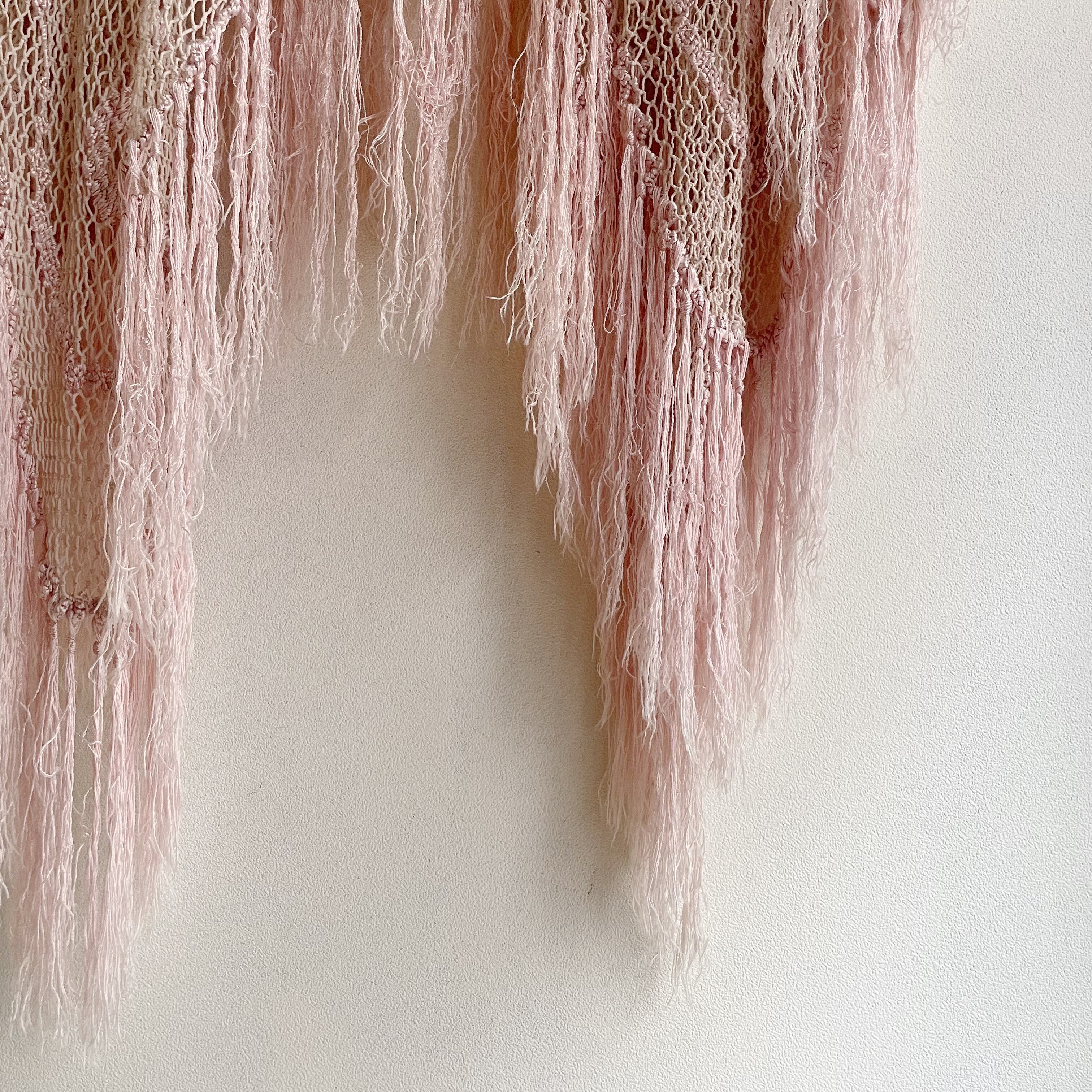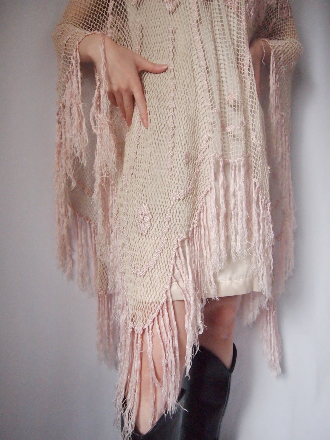 ピンクかぎ編みフリンジポンチョ