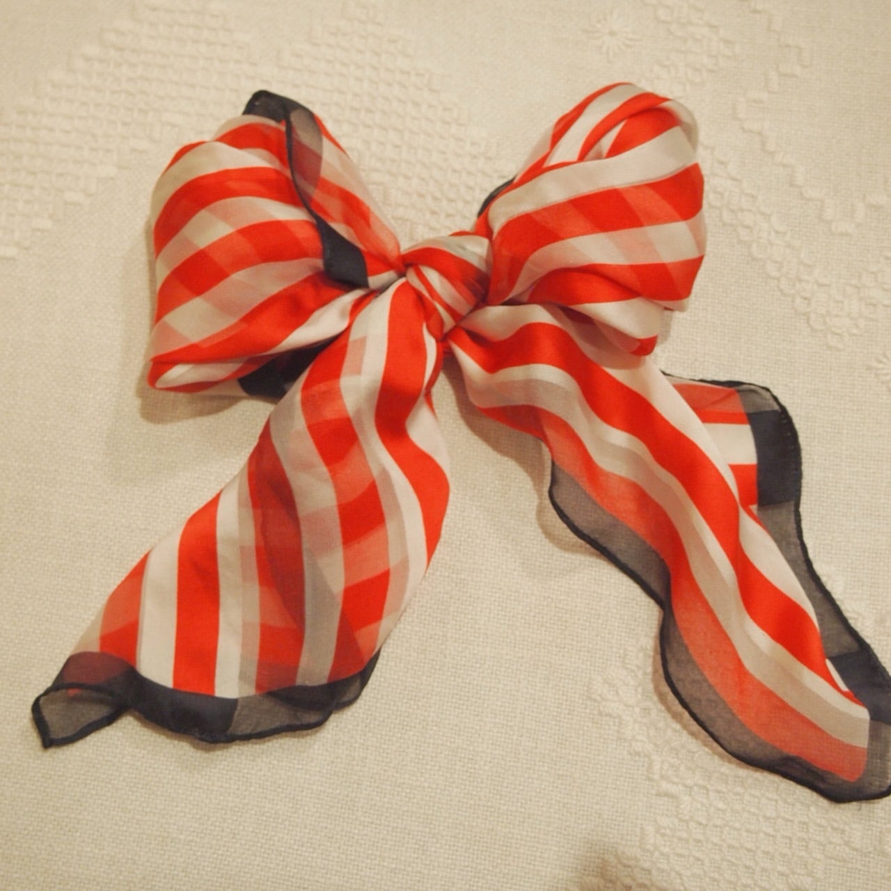 レッド×ホワイトシルクスカーフ