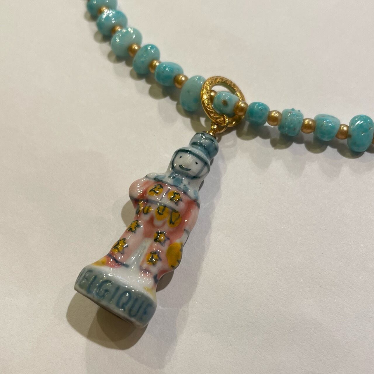 ベルギー×ヴィンテージガラスビーズとゴールドパールガラスビーズ