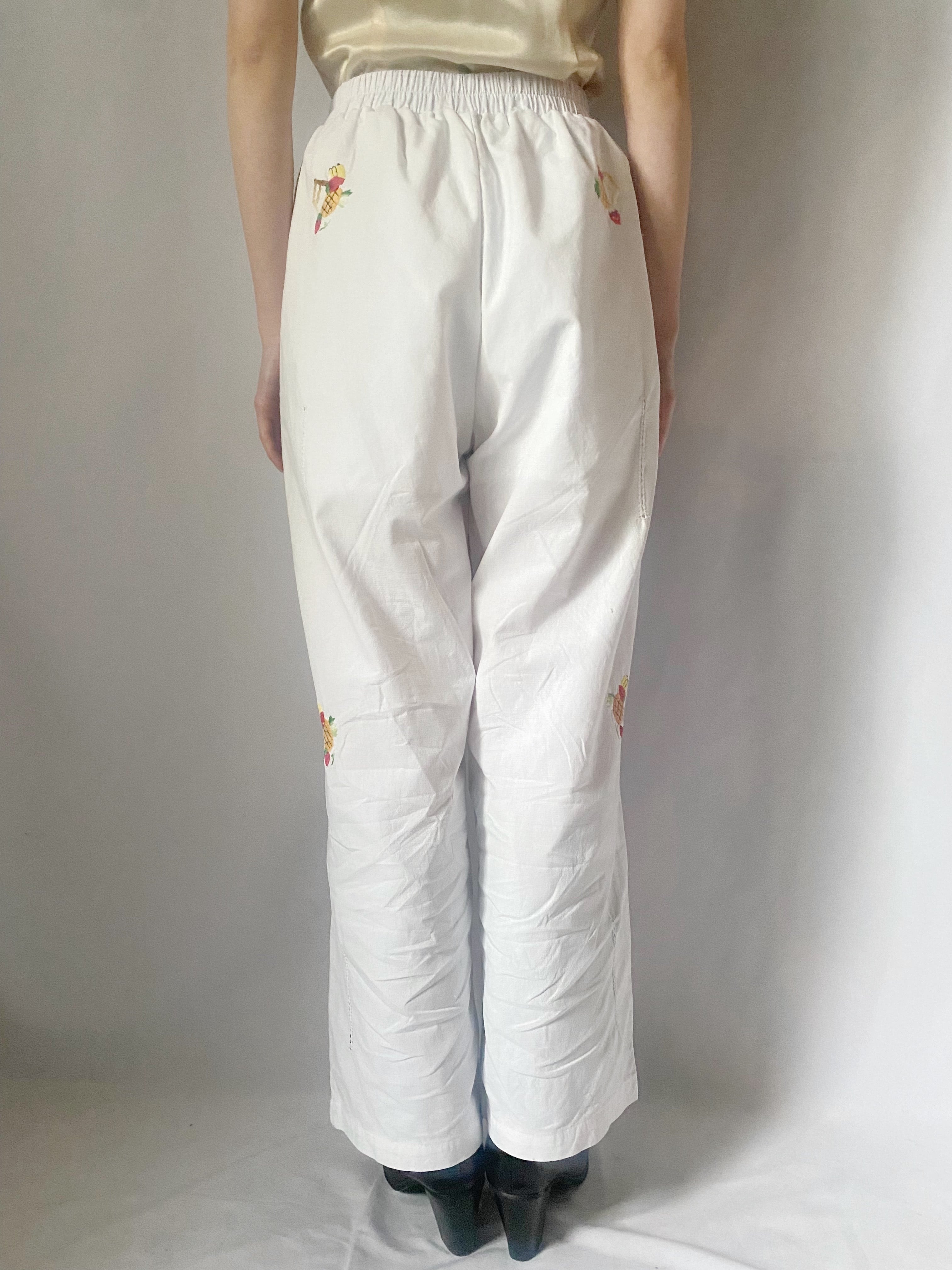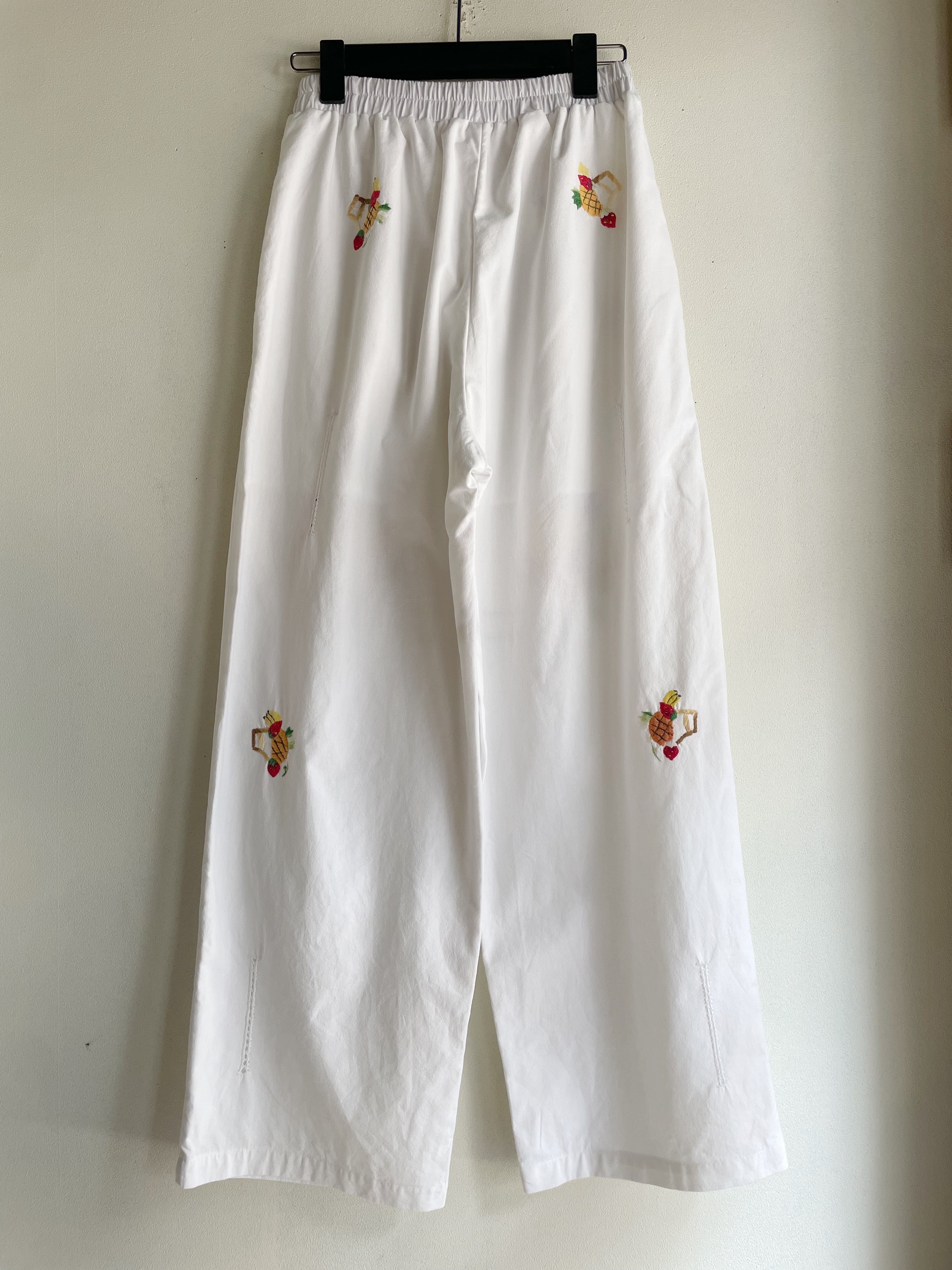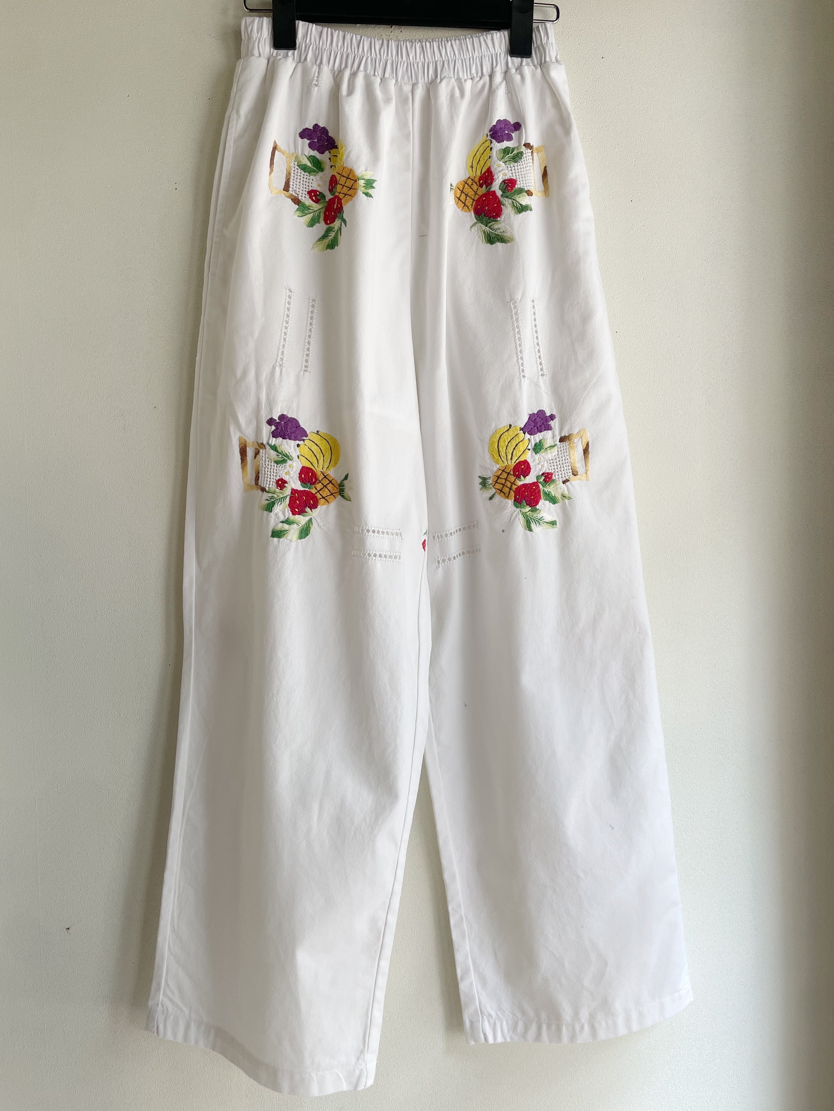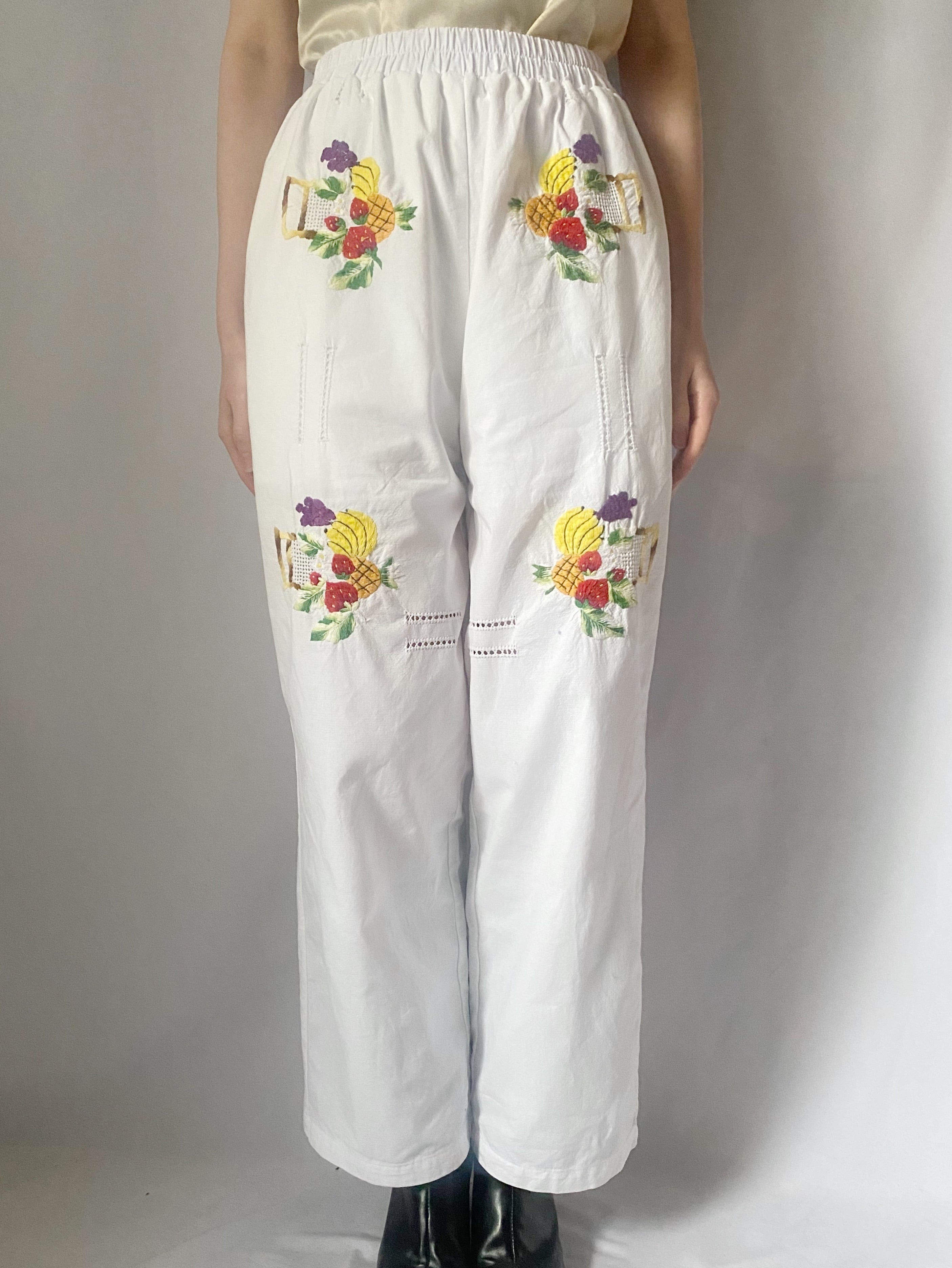 ホワイトフルーツ刺繍パンツ