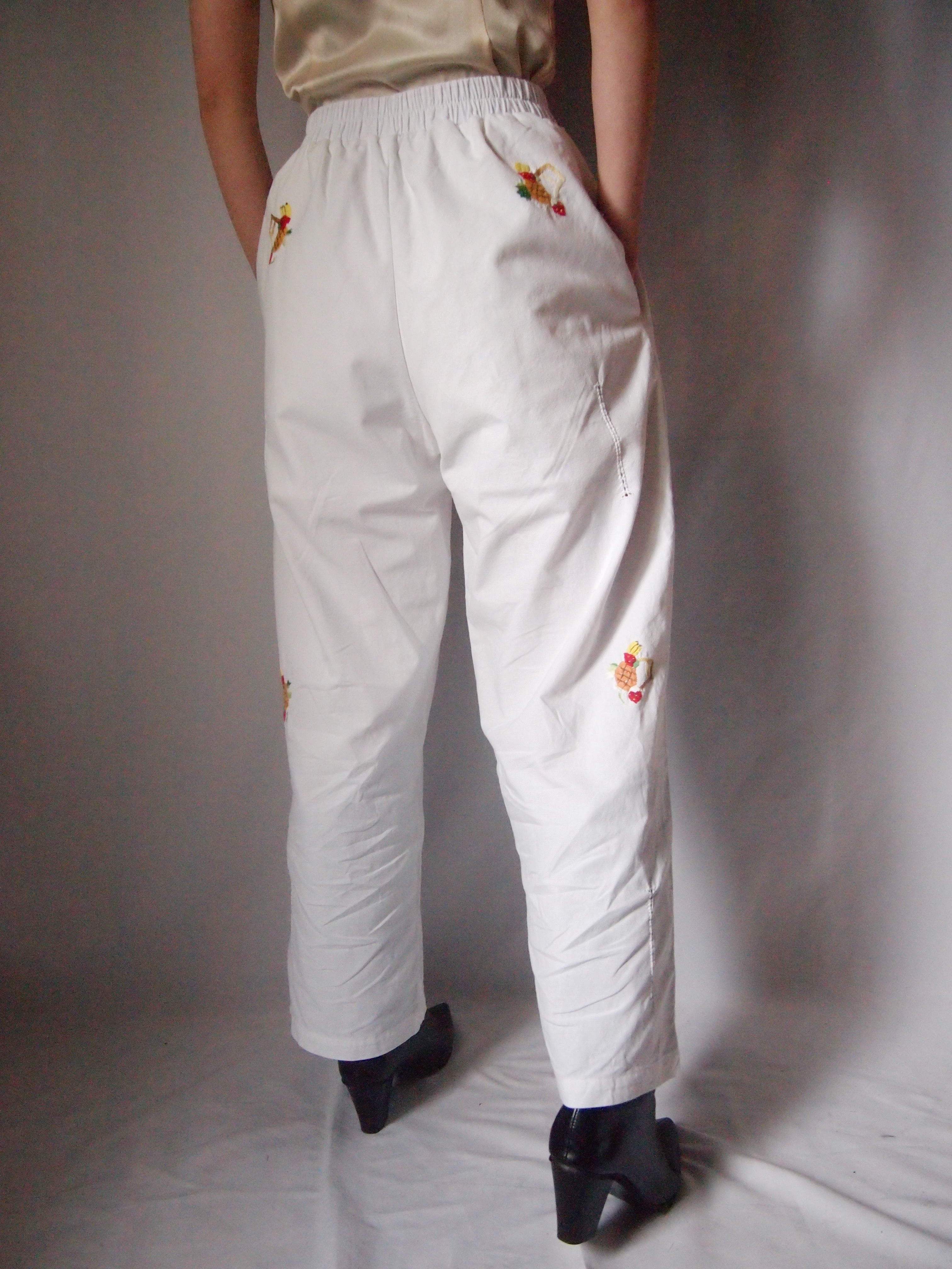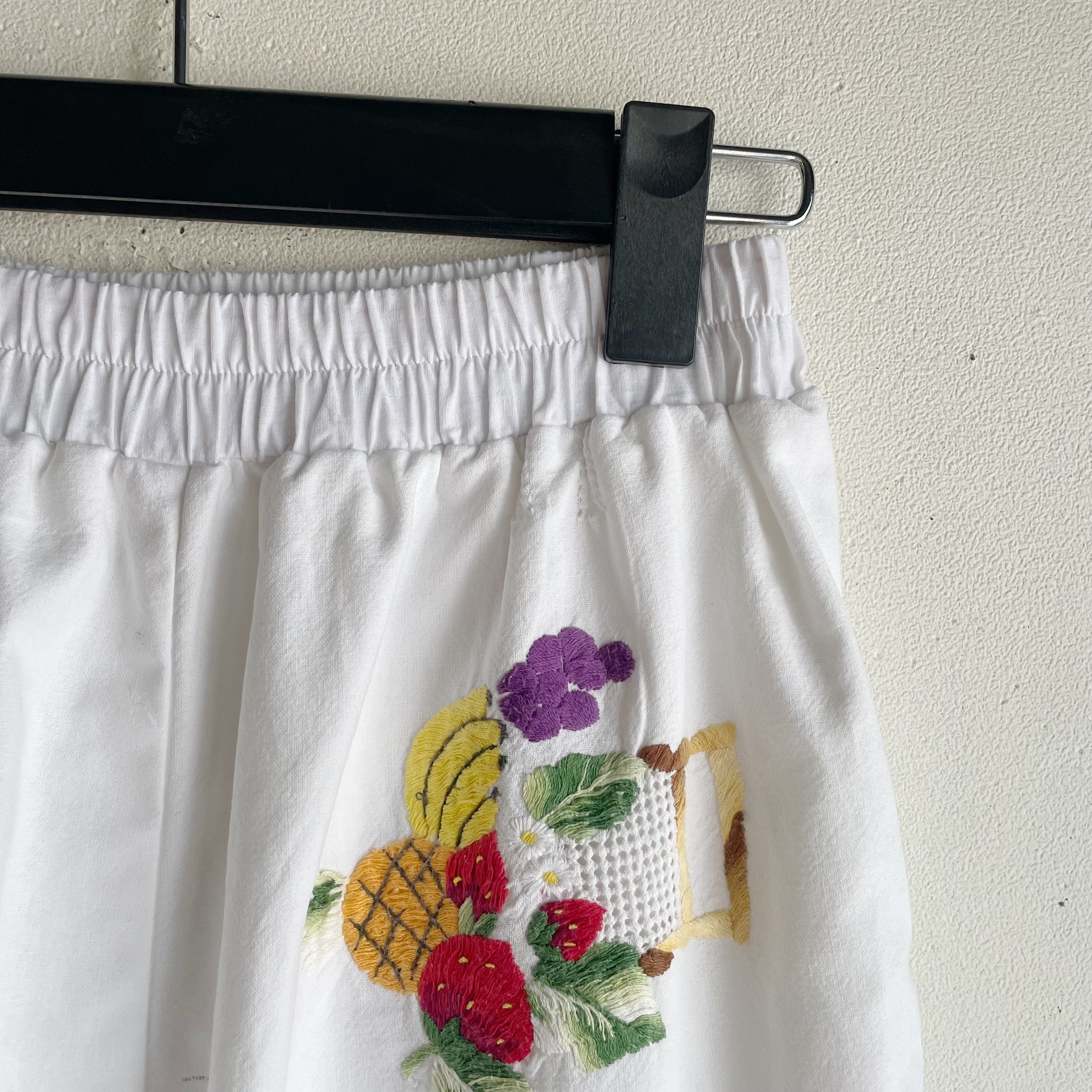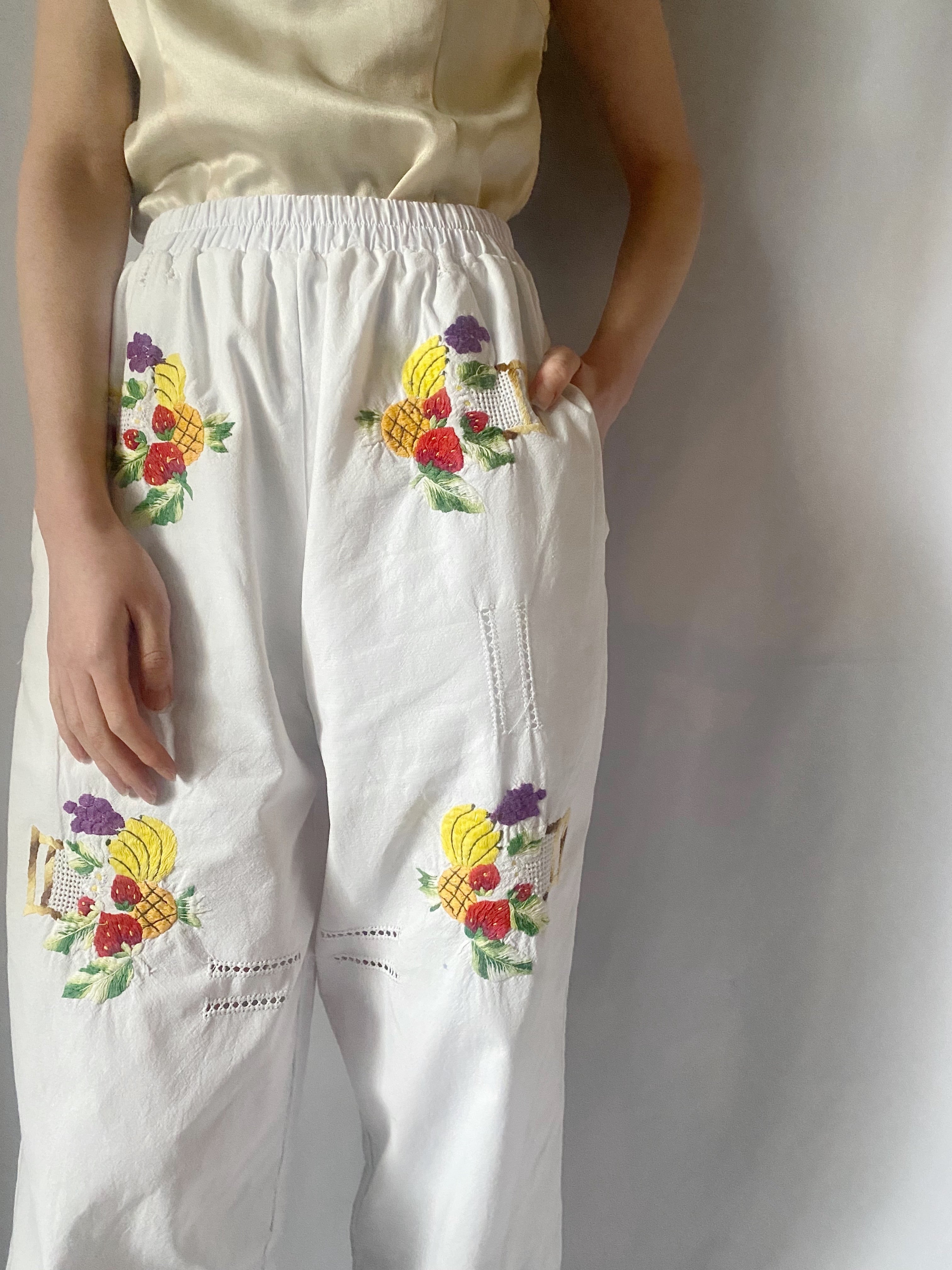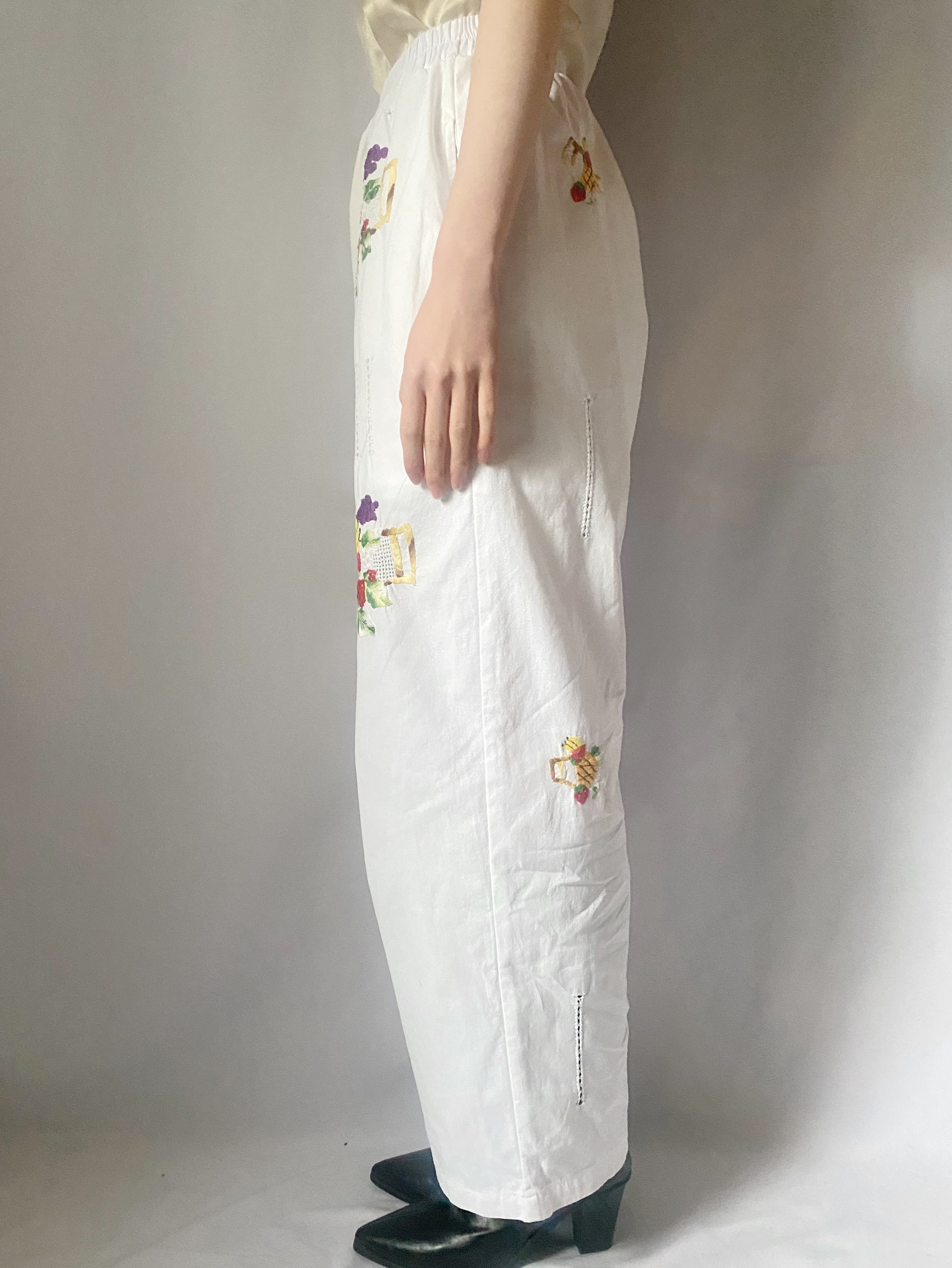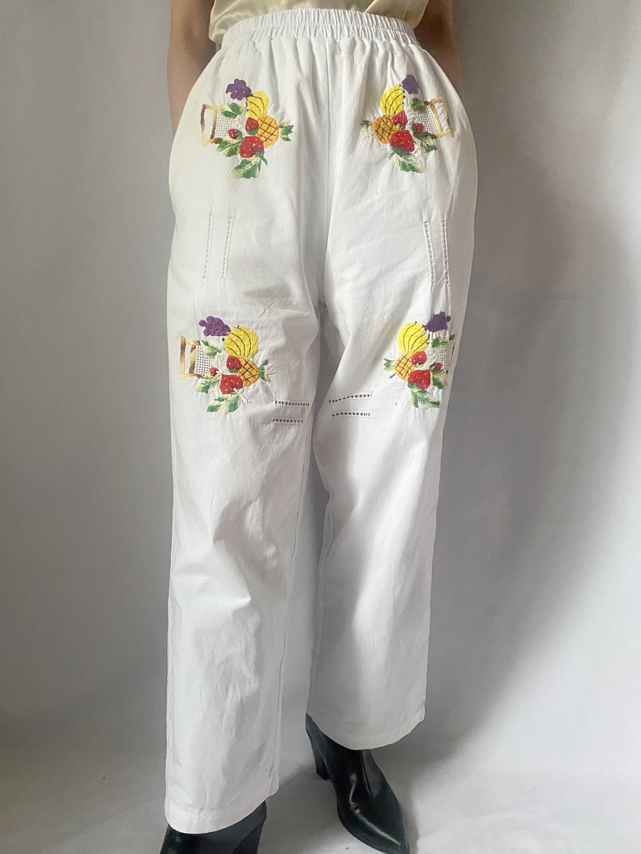 ホワイトフルーツ刺繍パンツ
