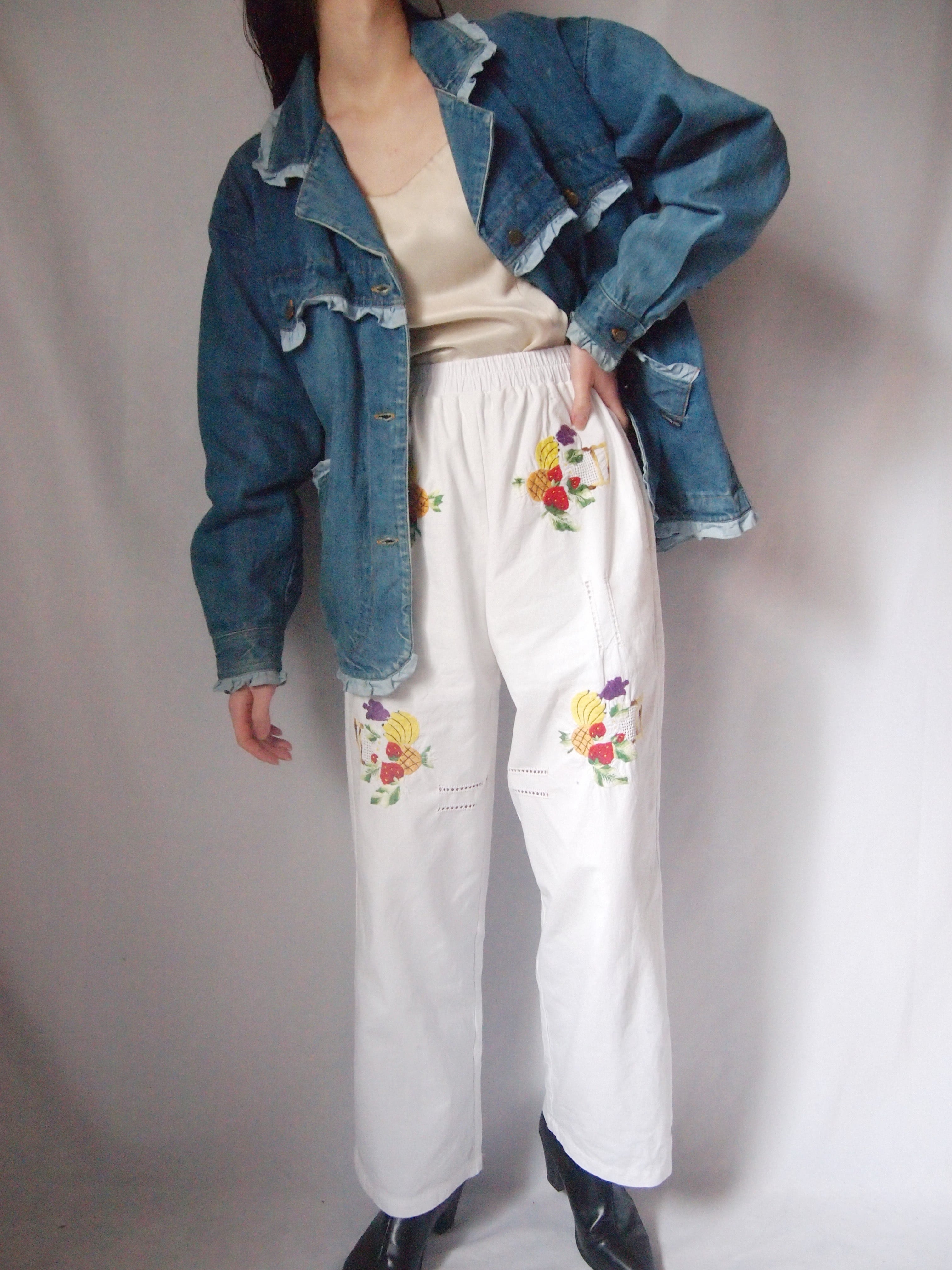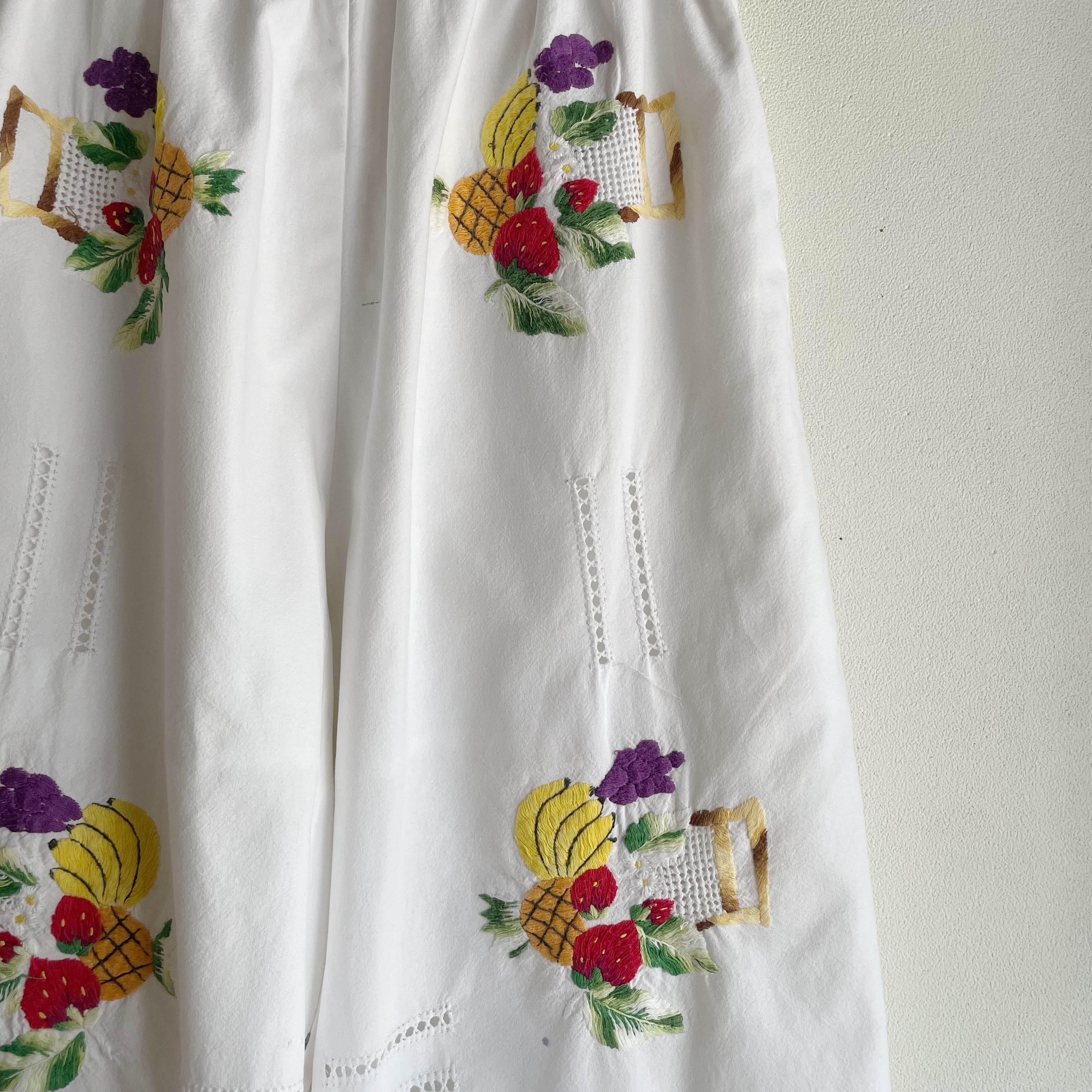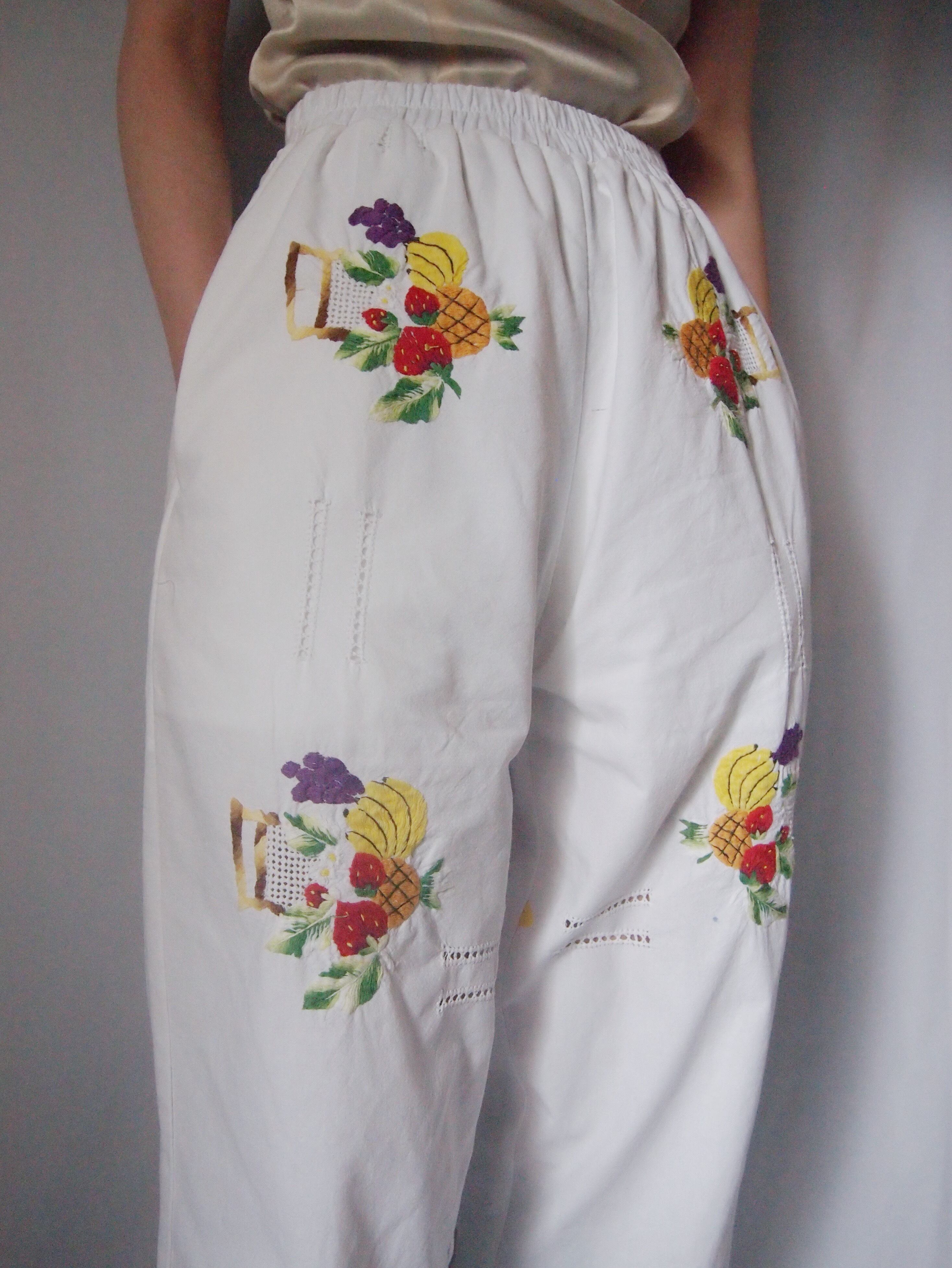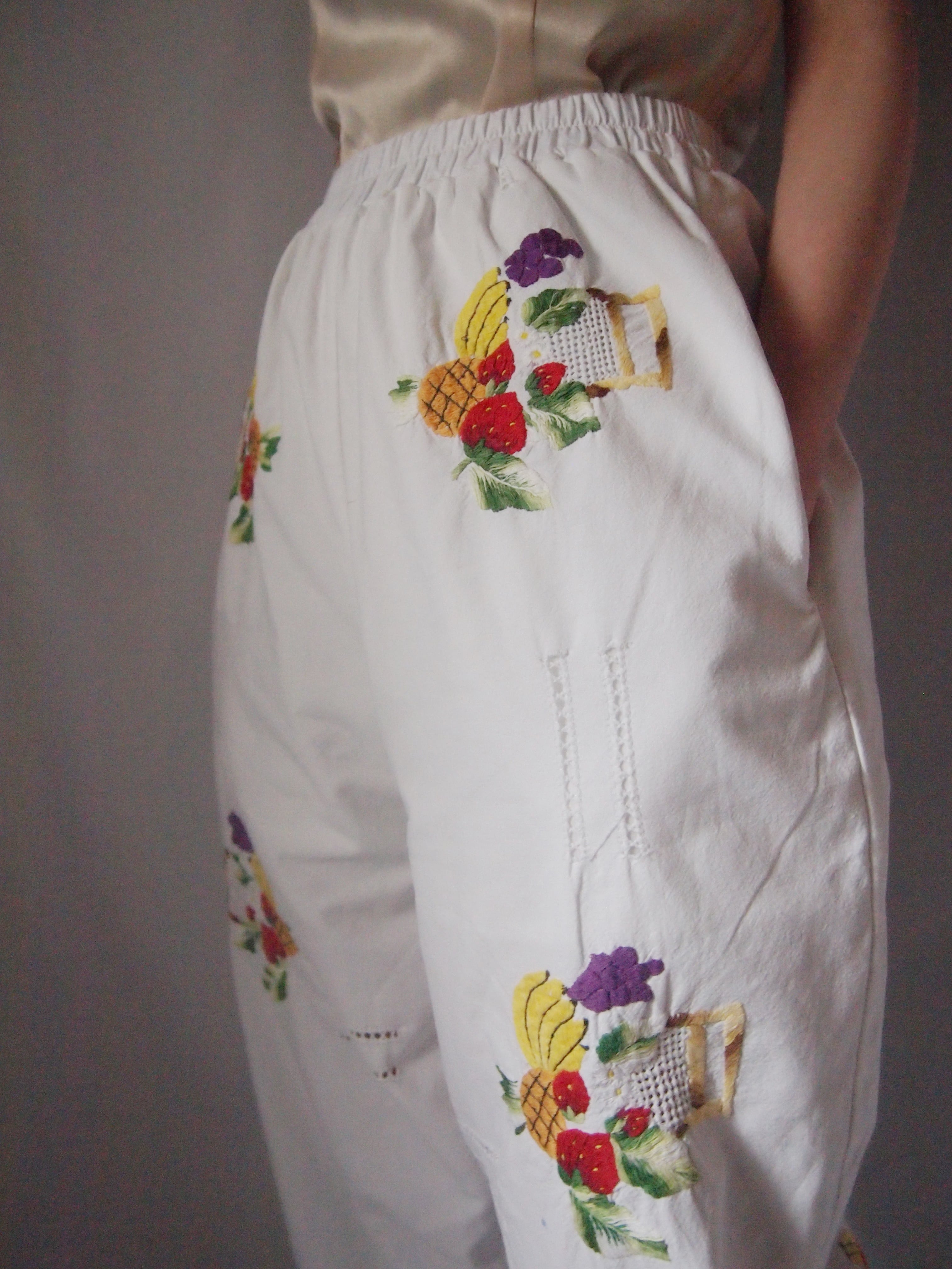 ホワイトフルーツ刺繍パンツ