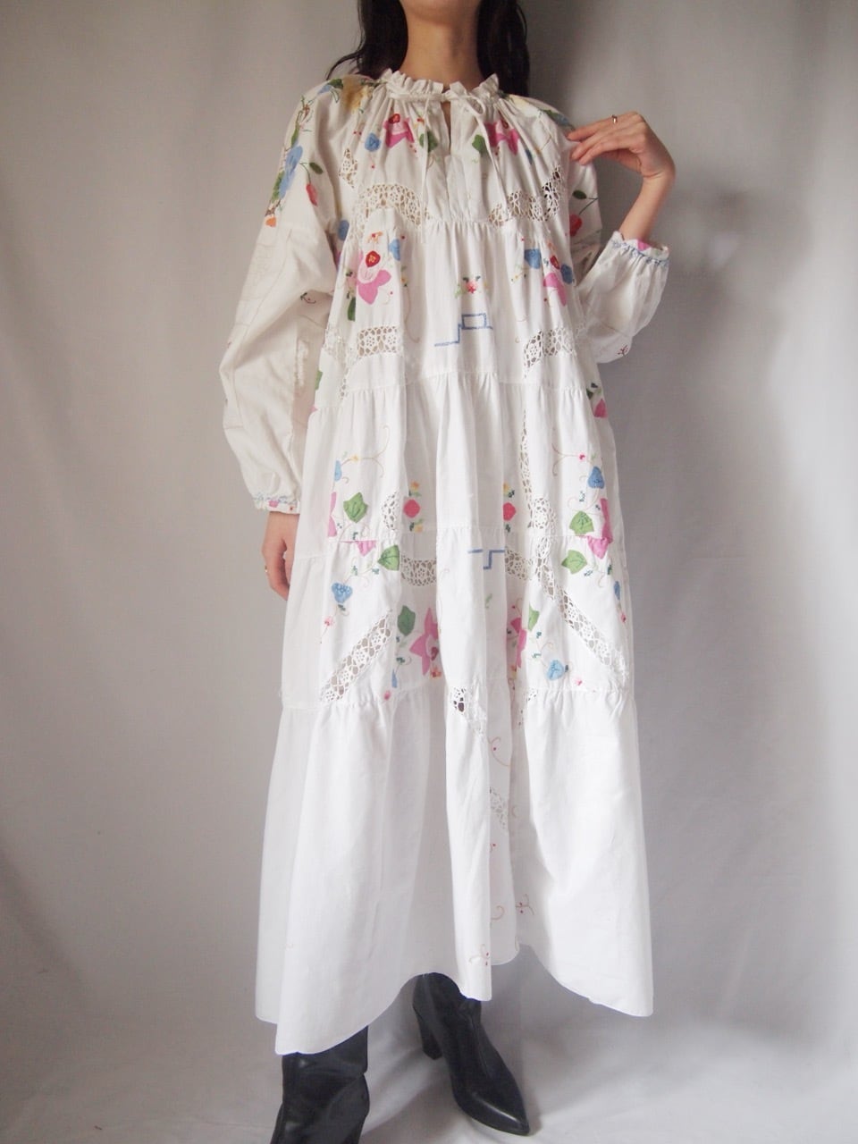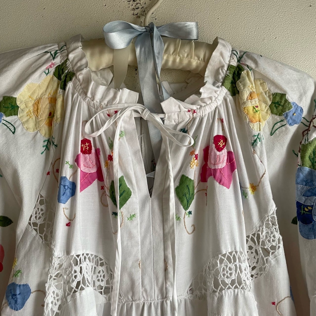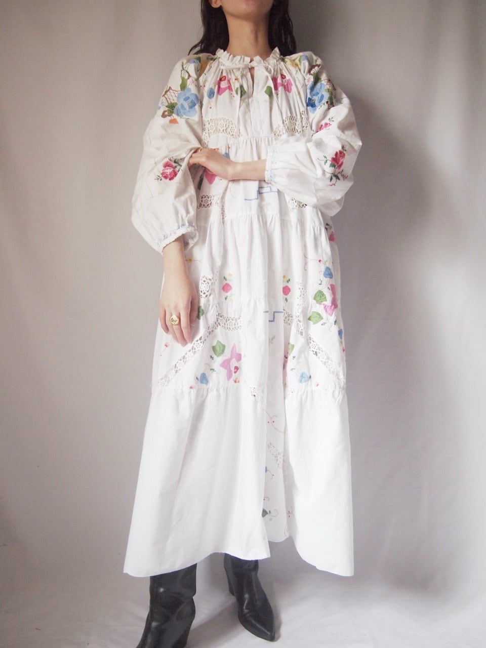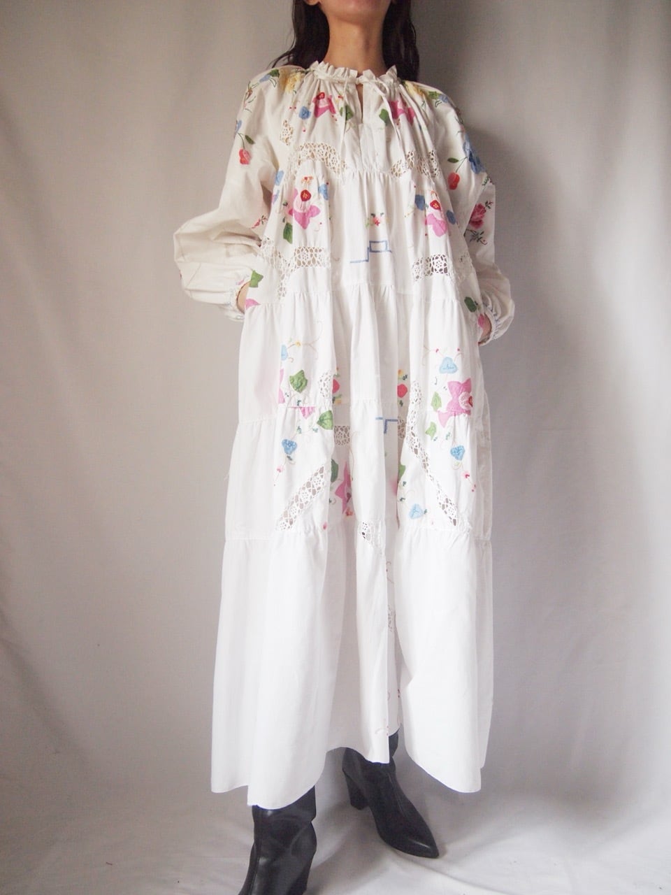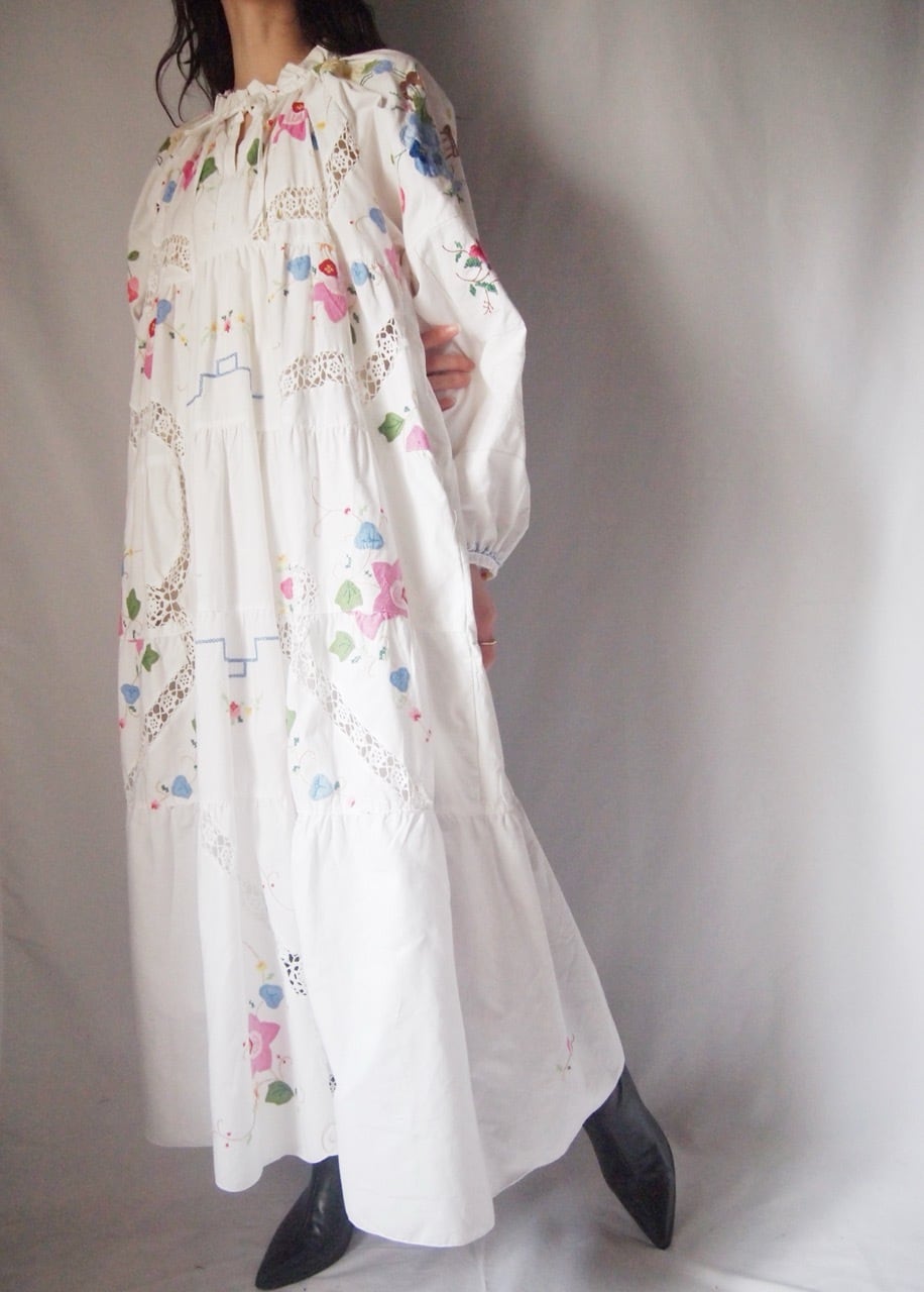 ホワイトお花刺繍ワンピース