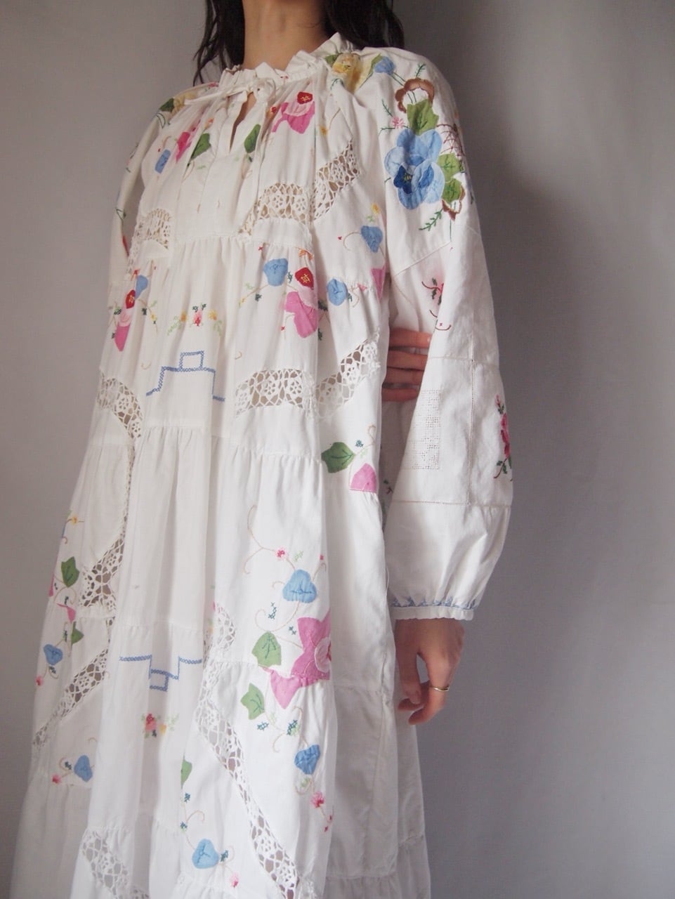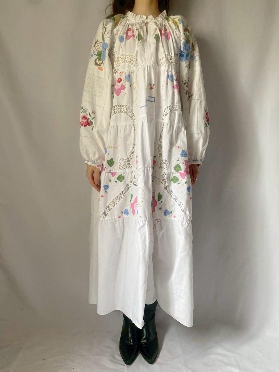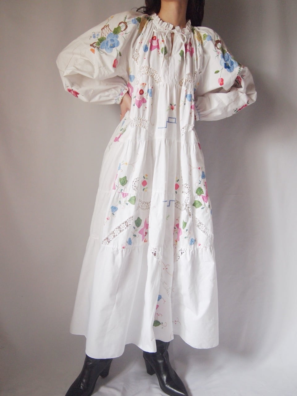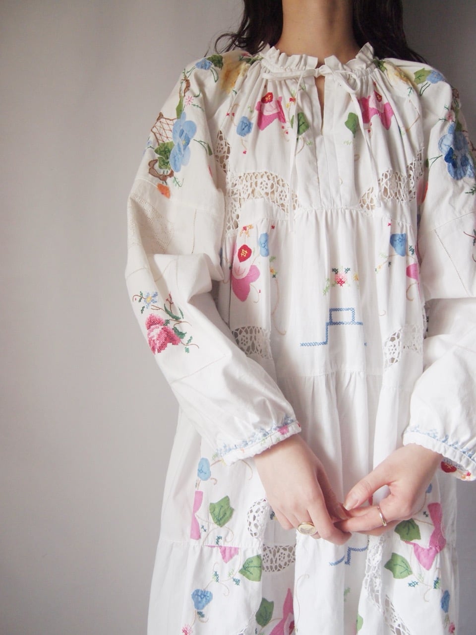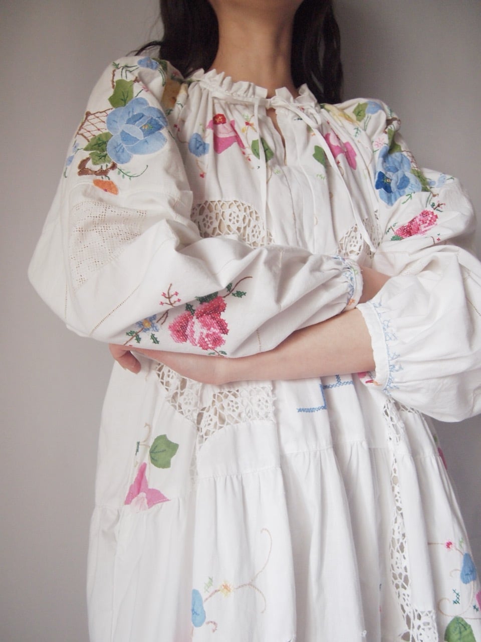 ホワイトお花刺繍ワンピース