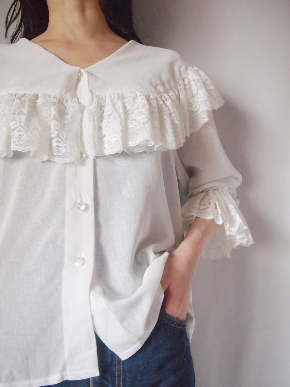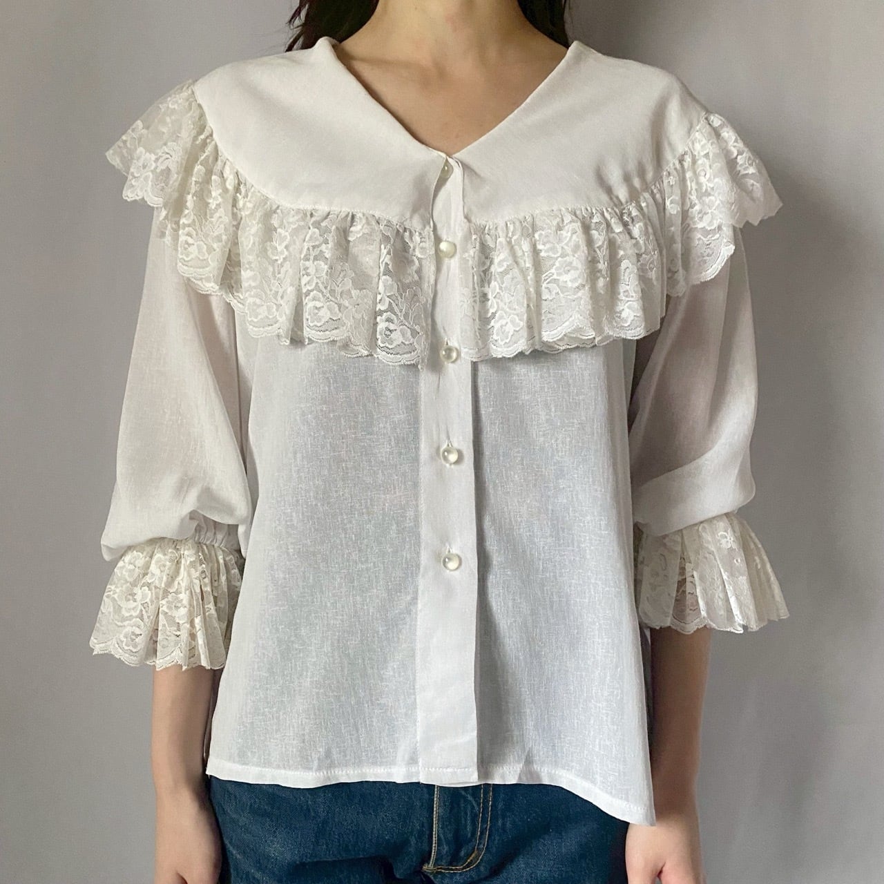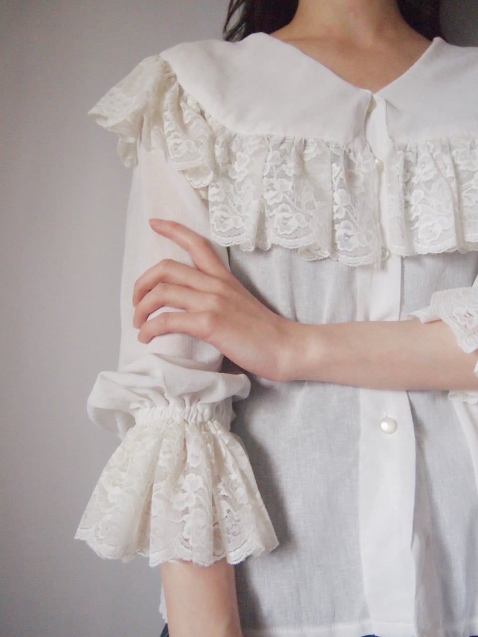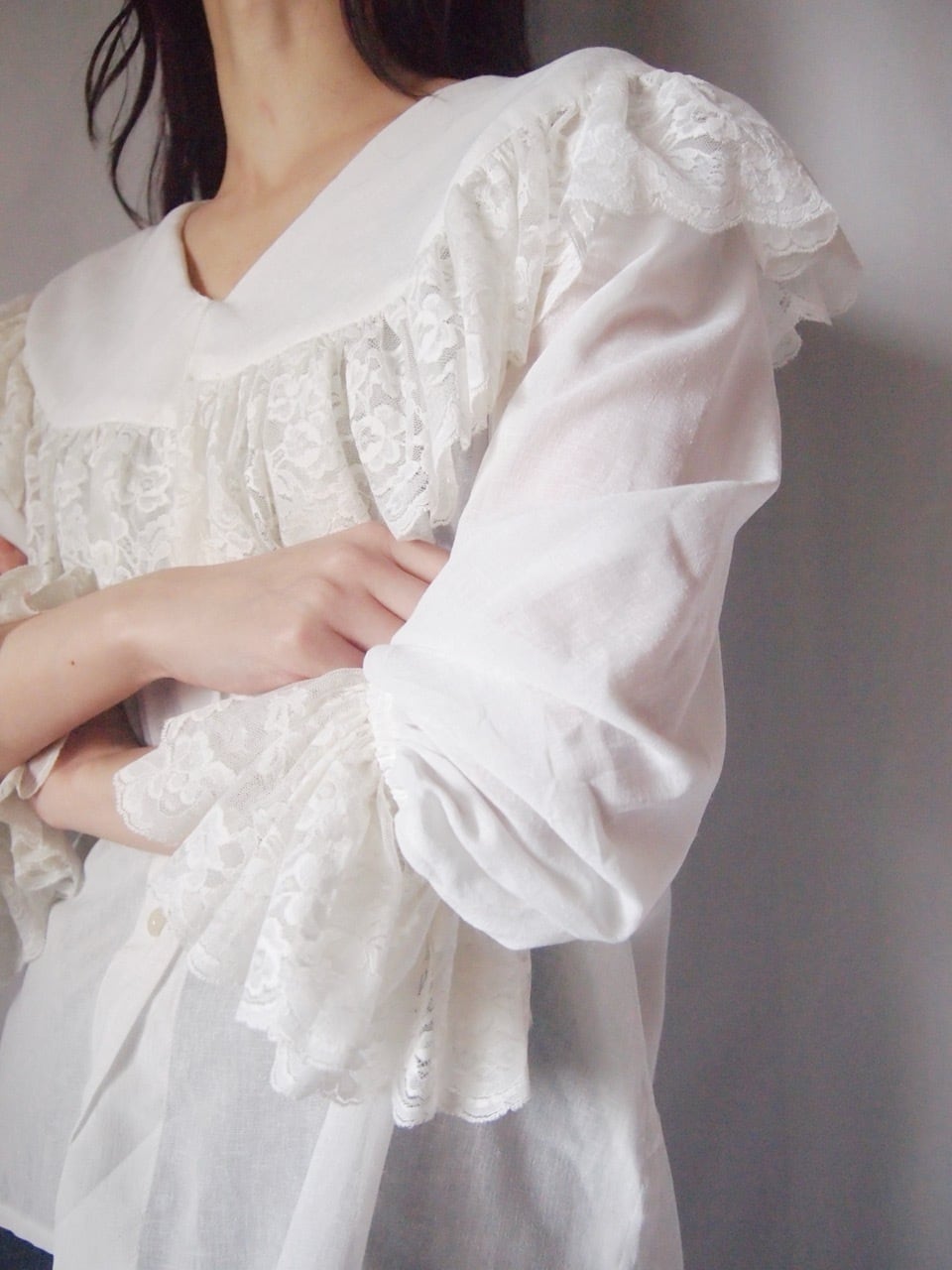 ホワイトビッグカラーレースブラウス
