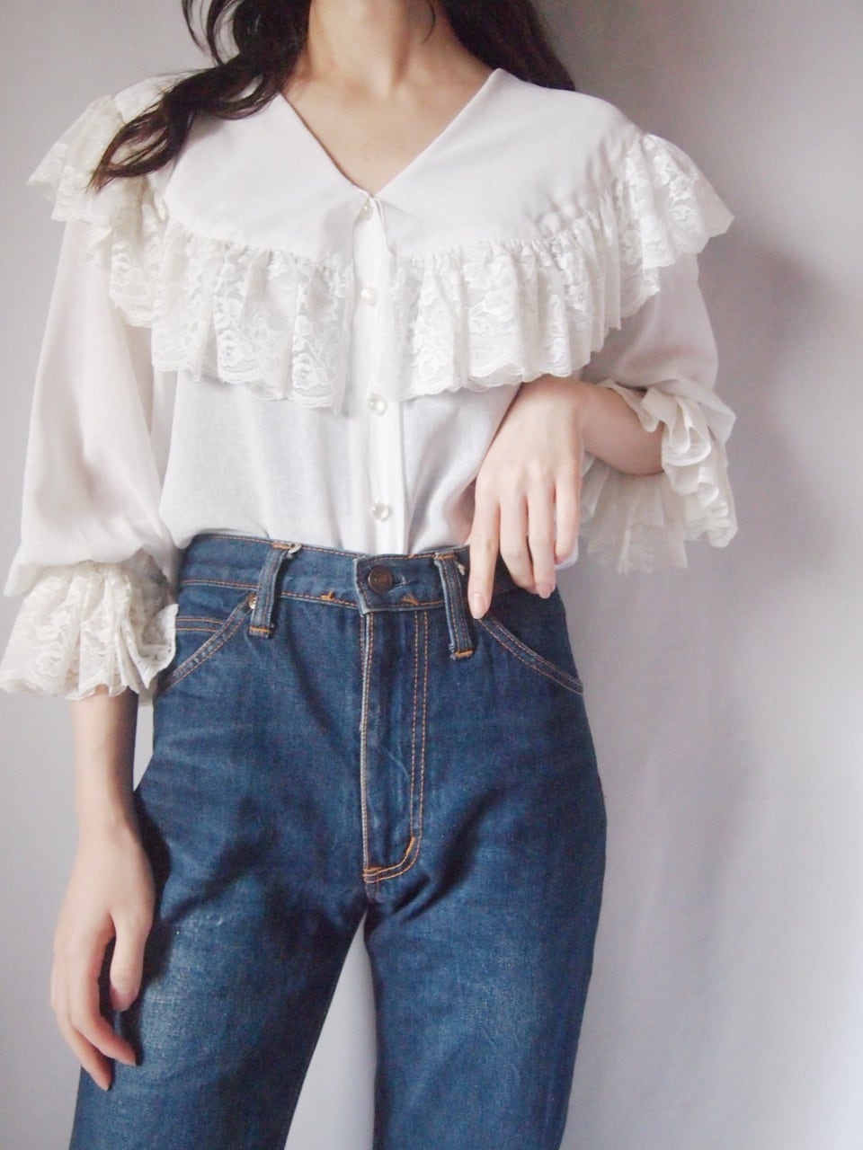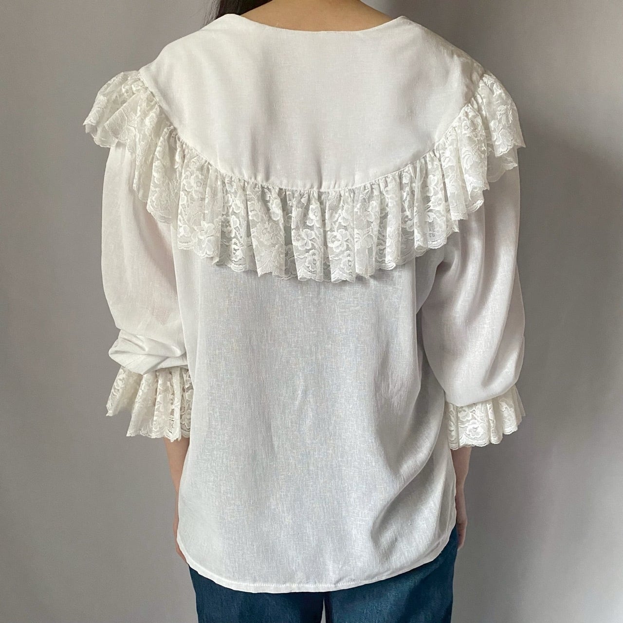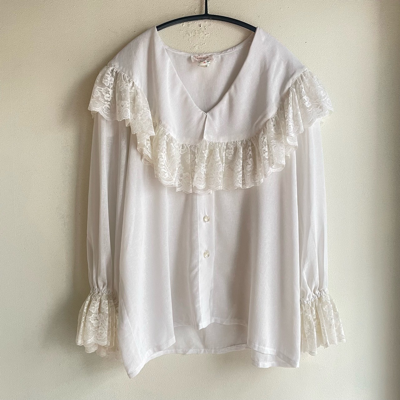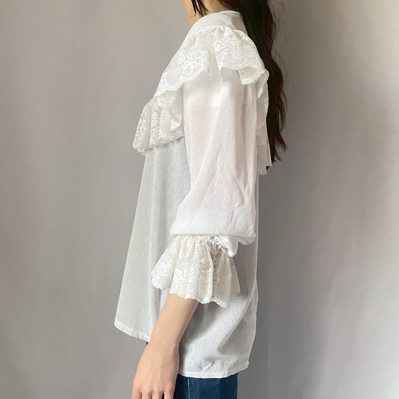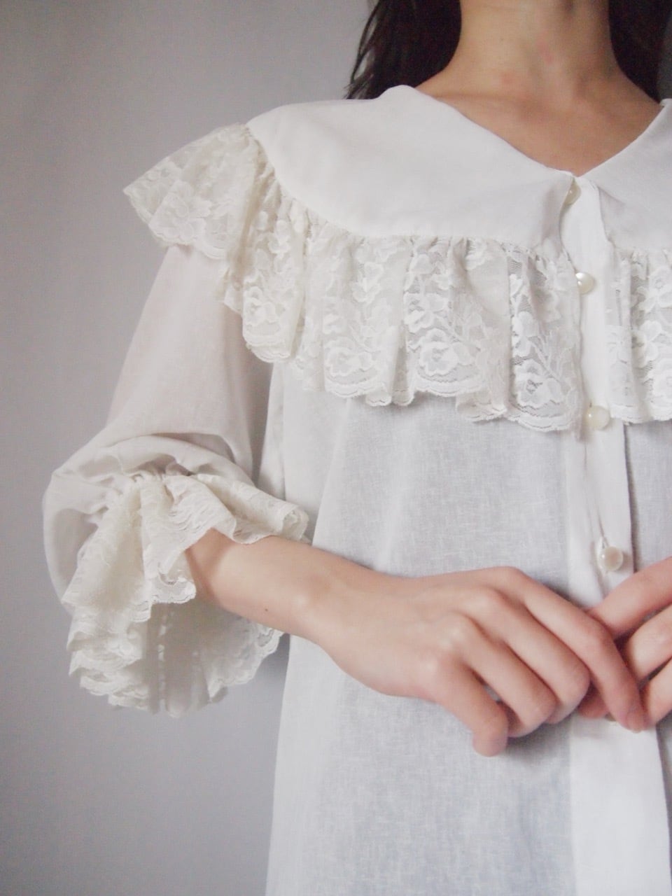 ホワイトビッグカラーレースブラウス