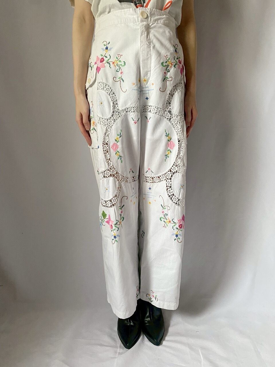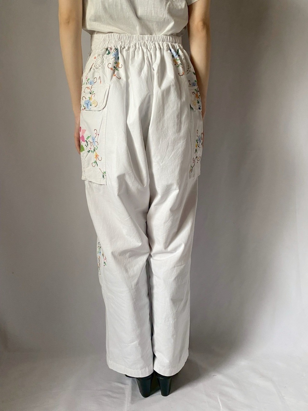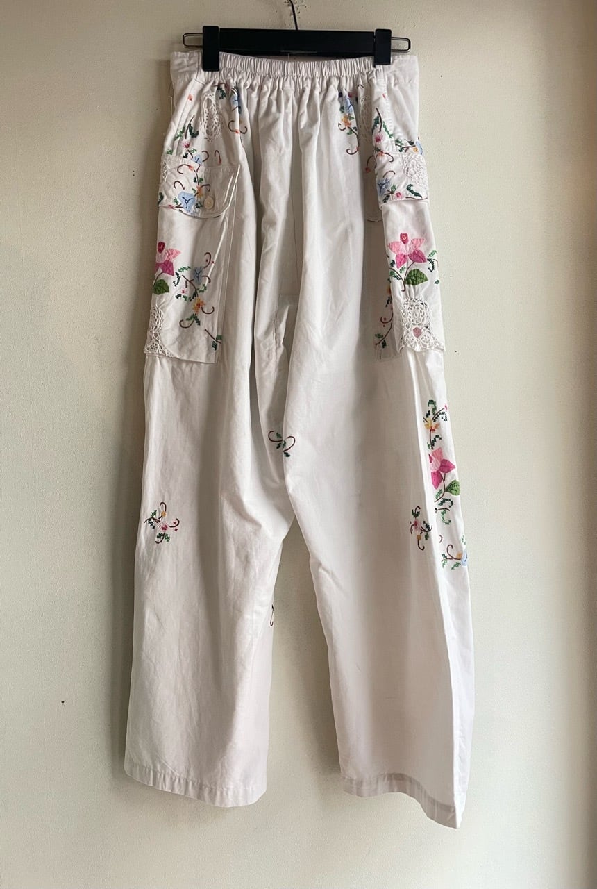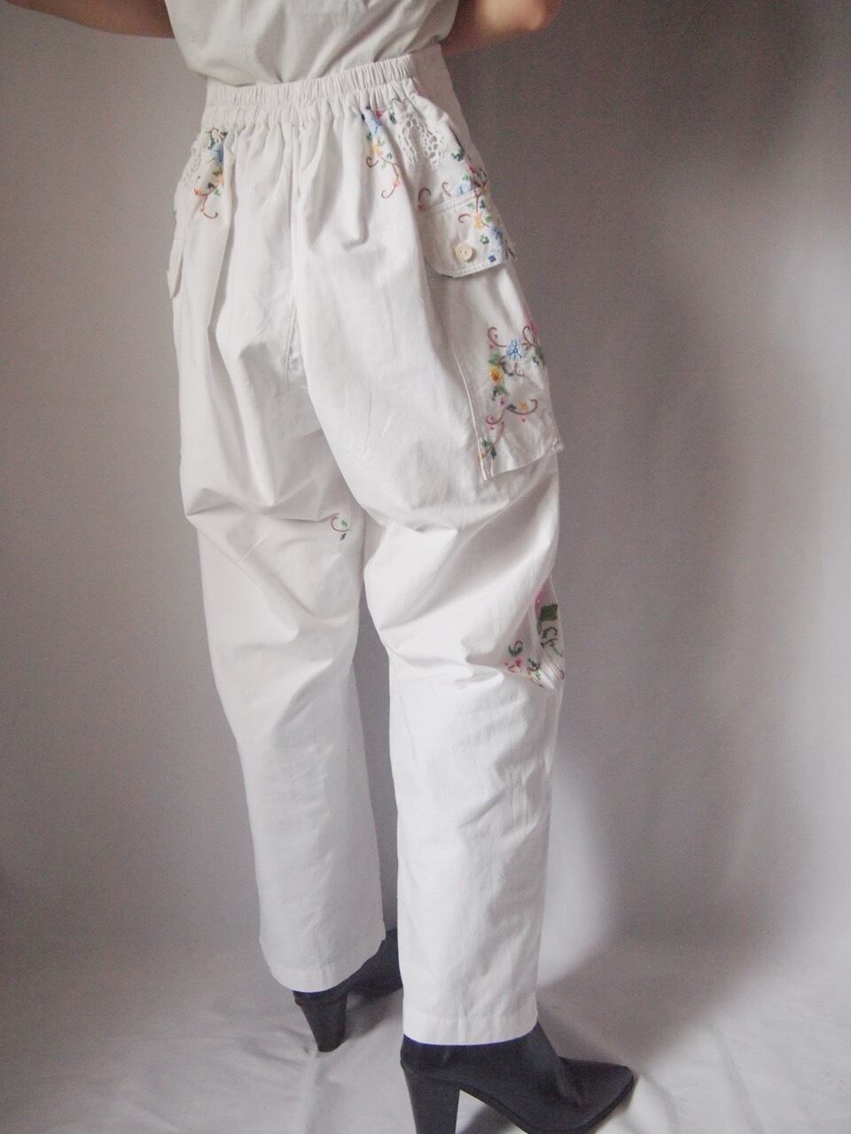 ホワイトお花刺繍パンツ