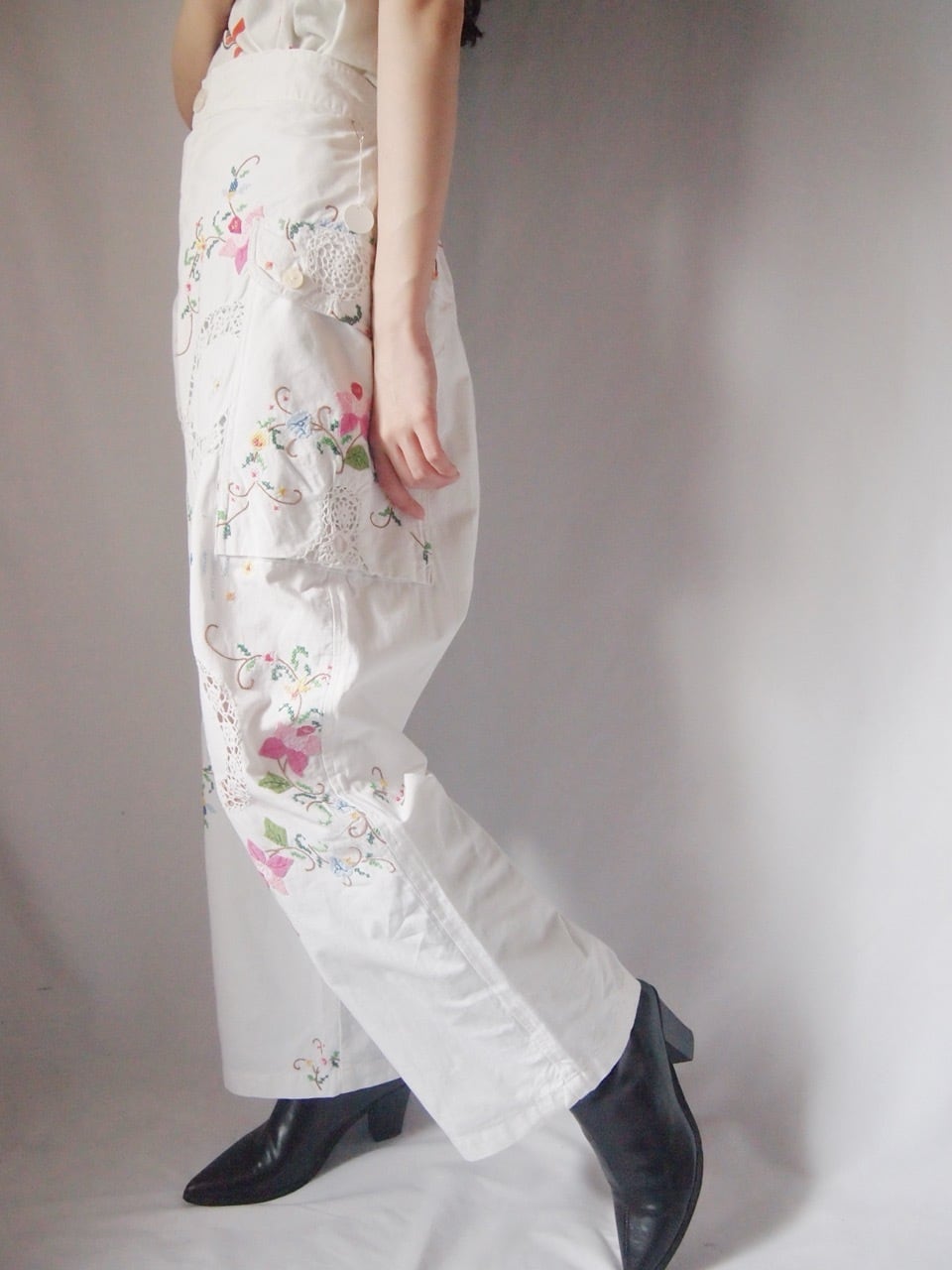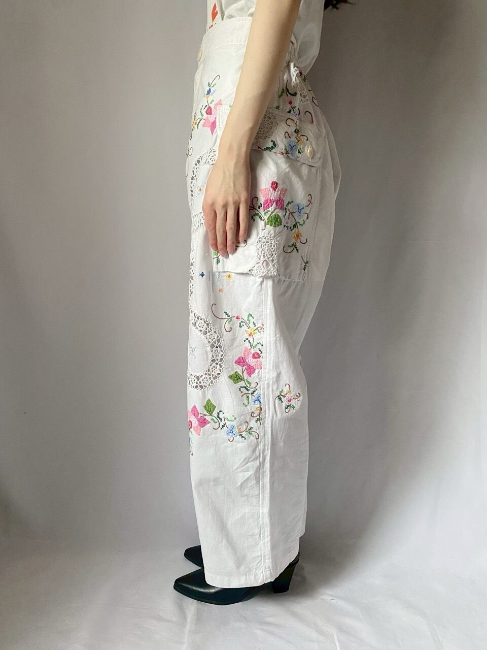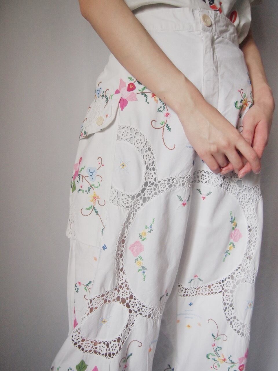 ホワイトお花刺繍パンツ