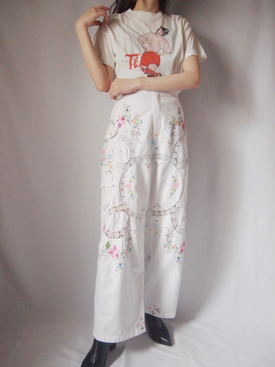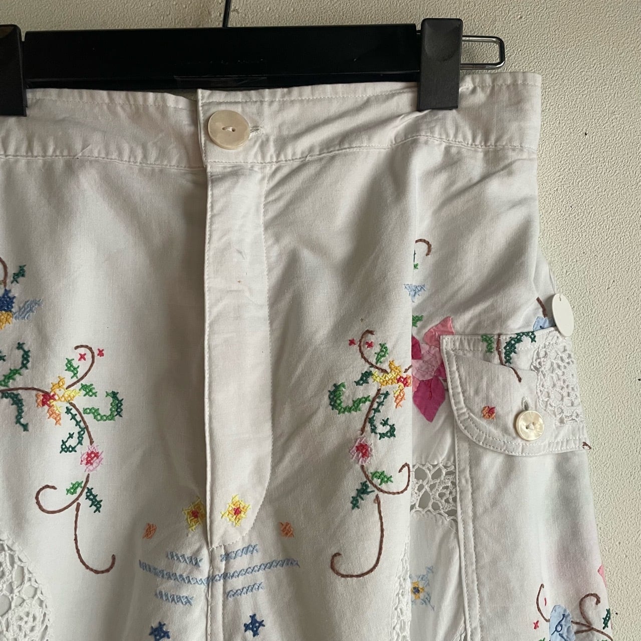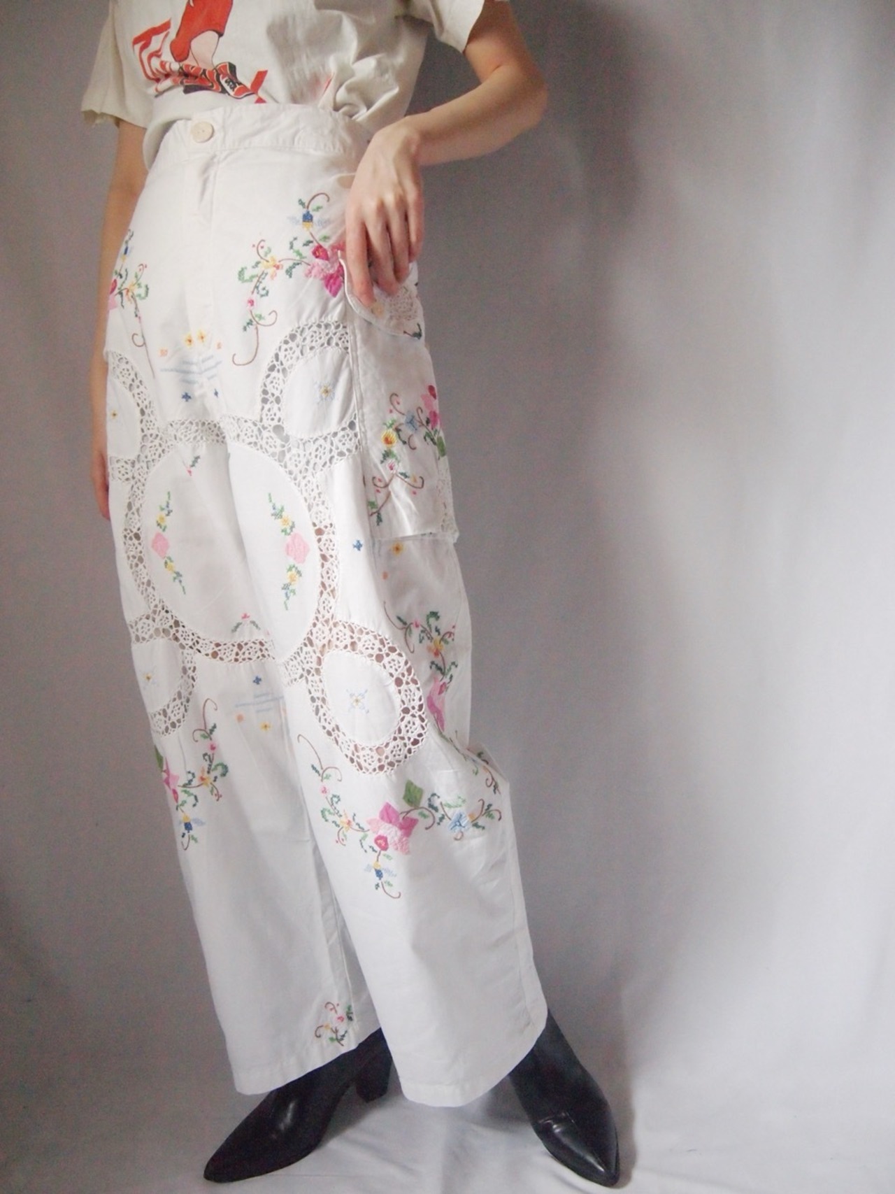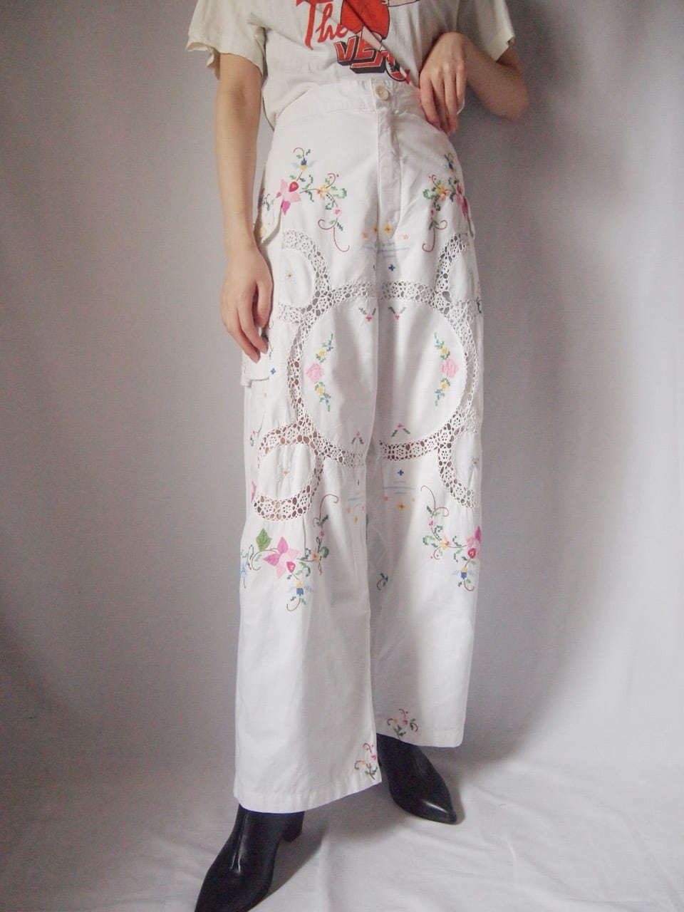 ホワイトお花刺繍パンツ