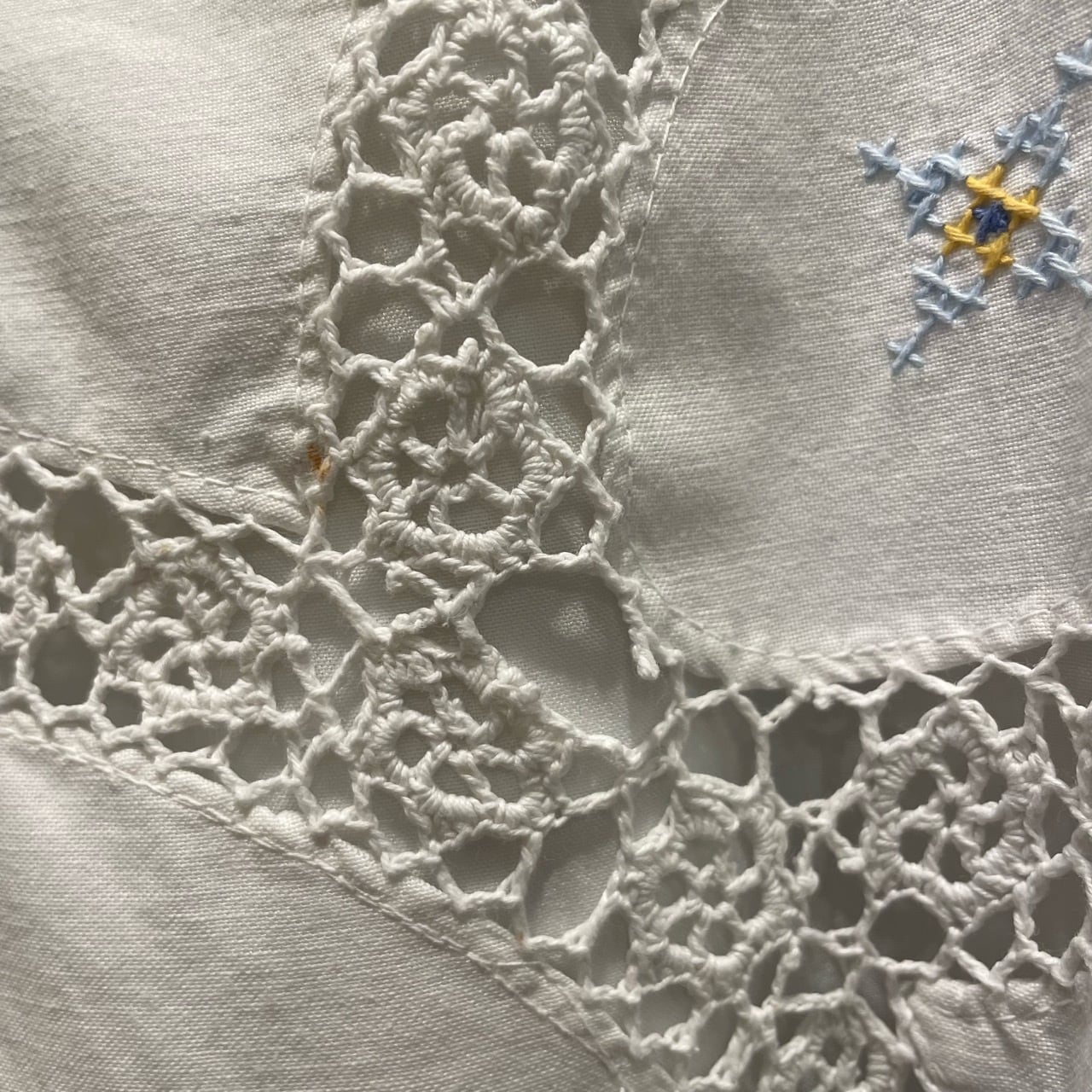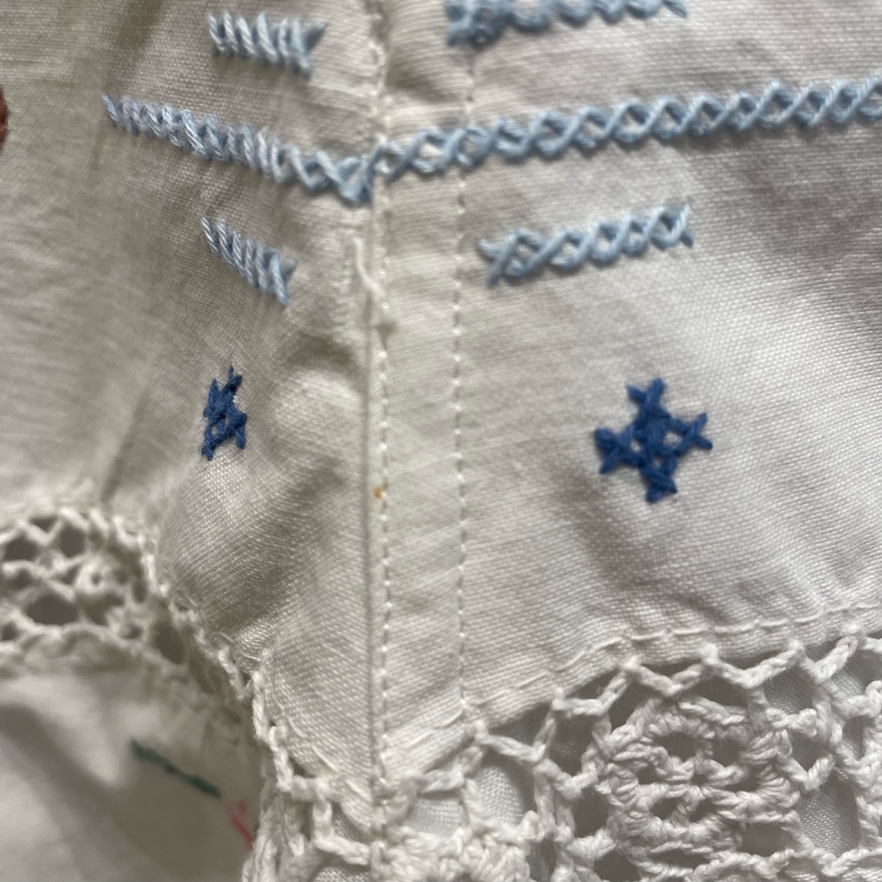 左前かぎ編み部分にほつれがございます。(写真19)