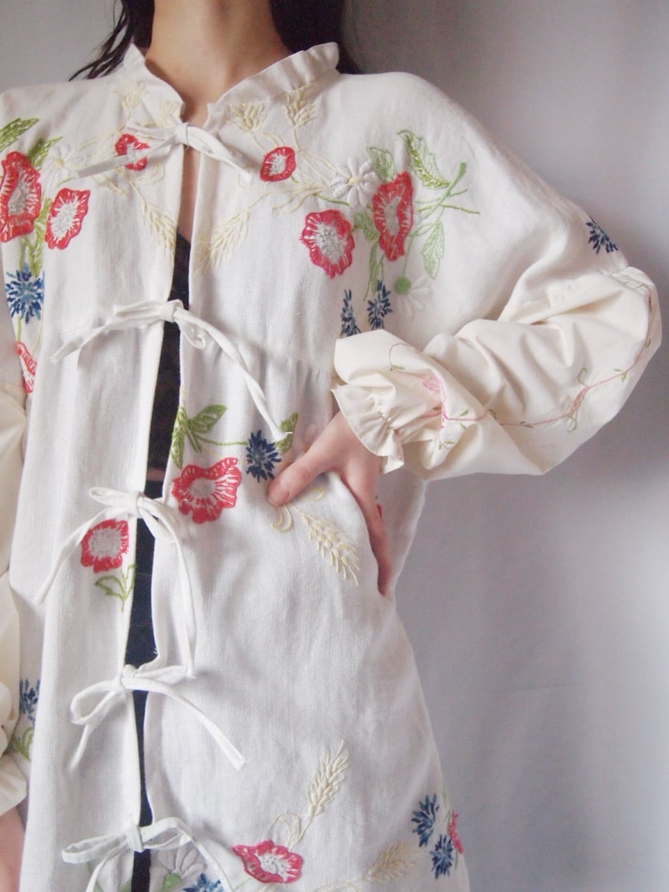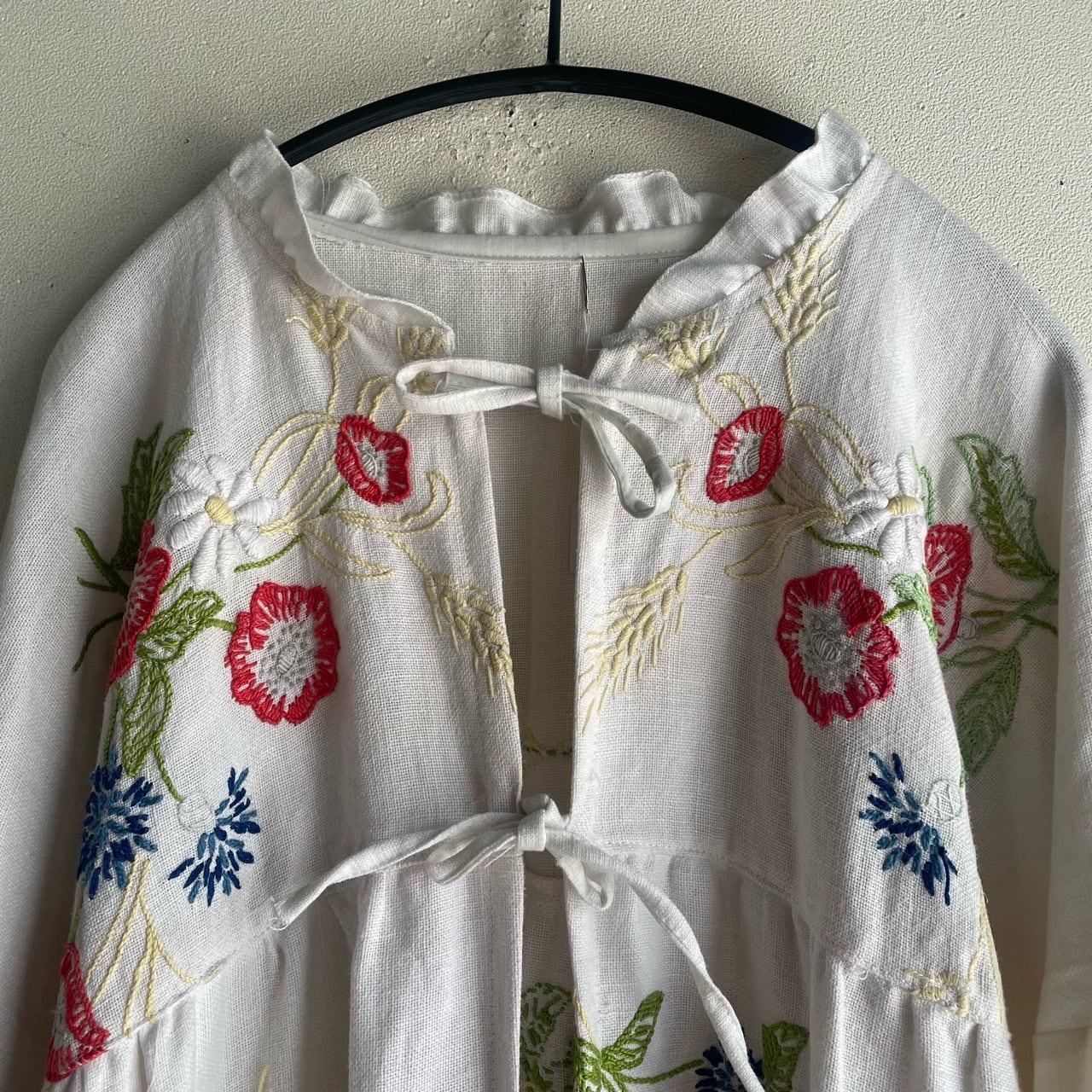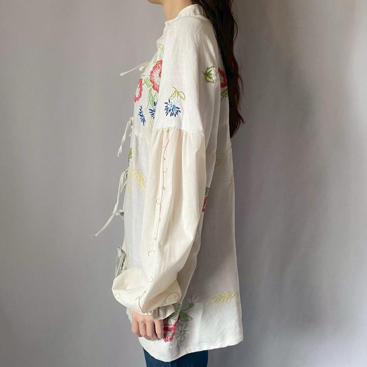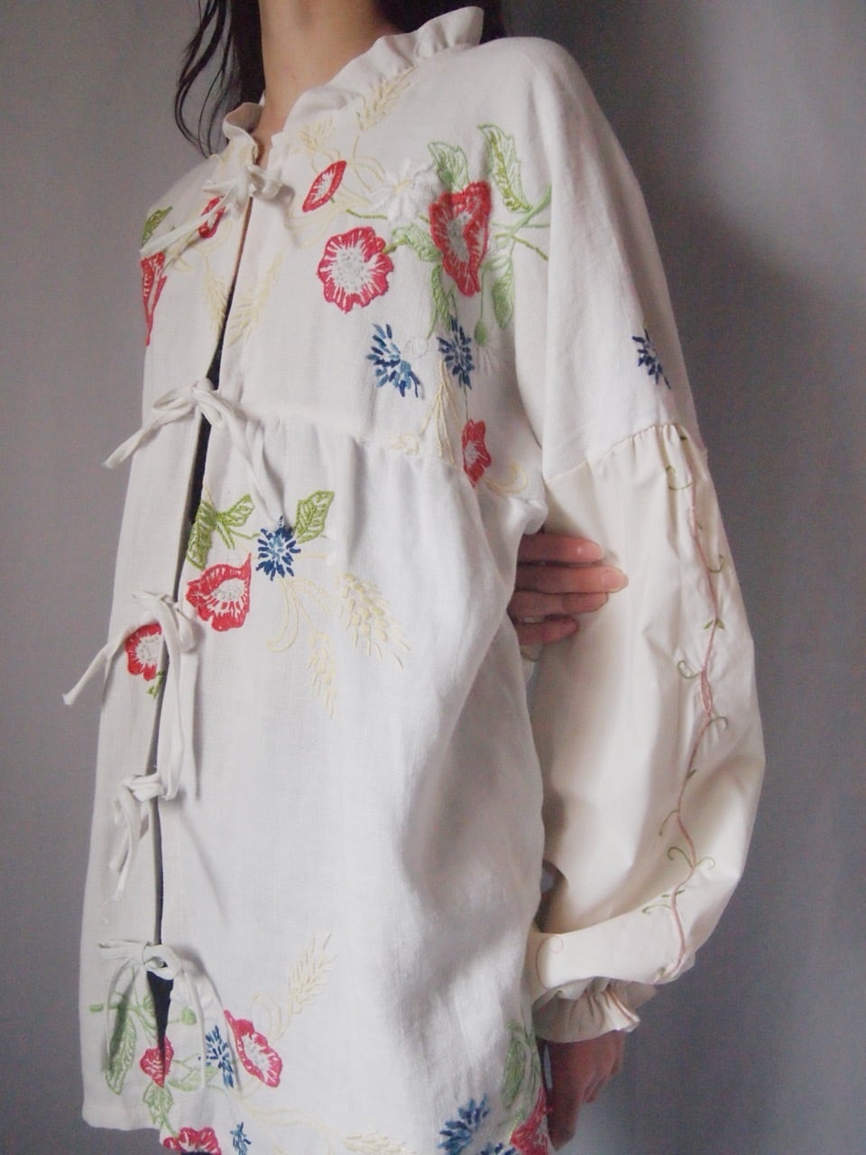 ホワイトお花刺繍リボンブラウス