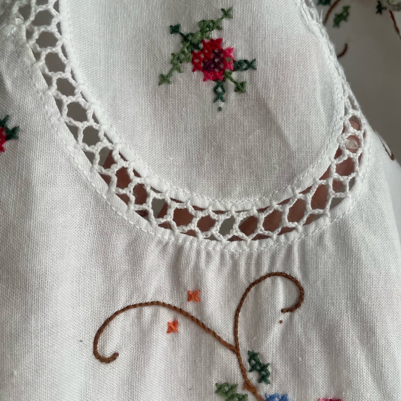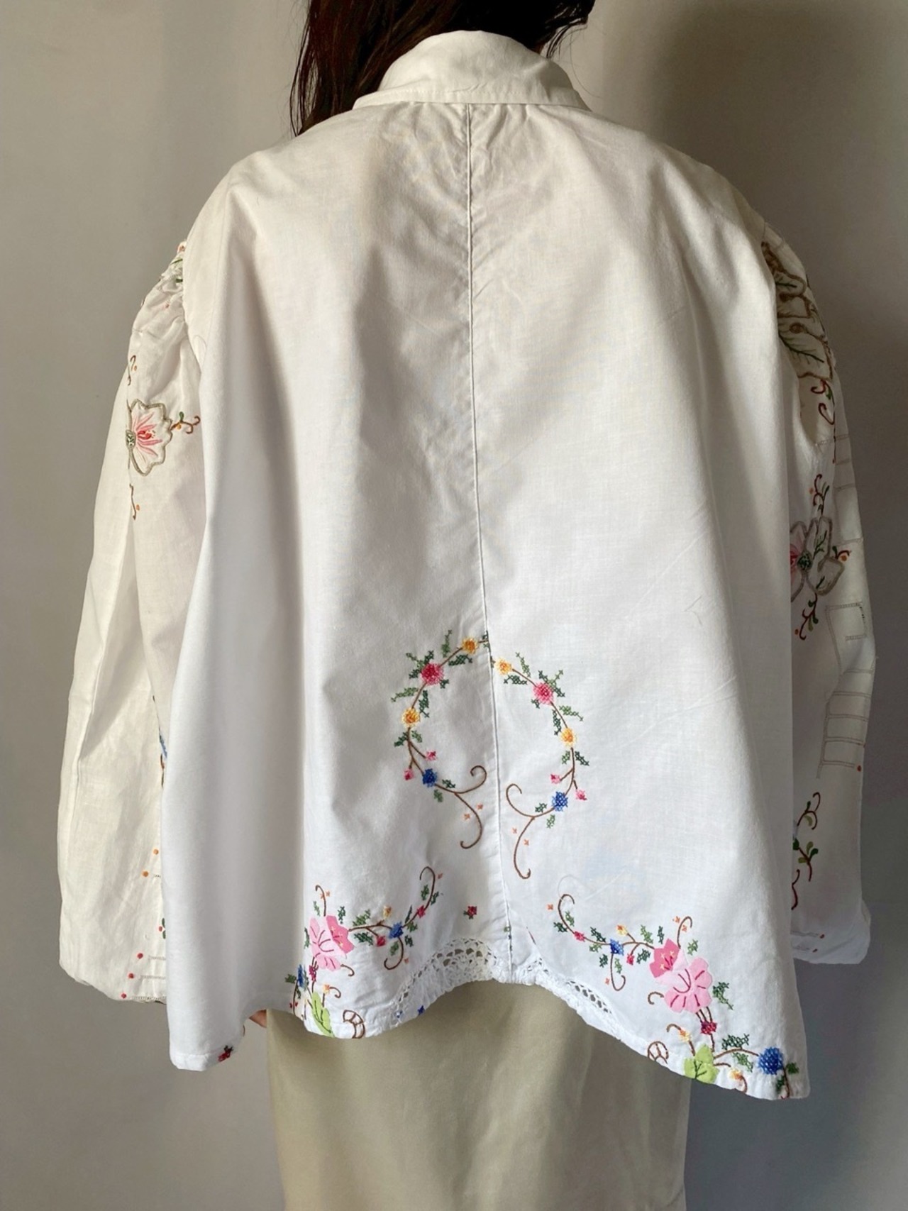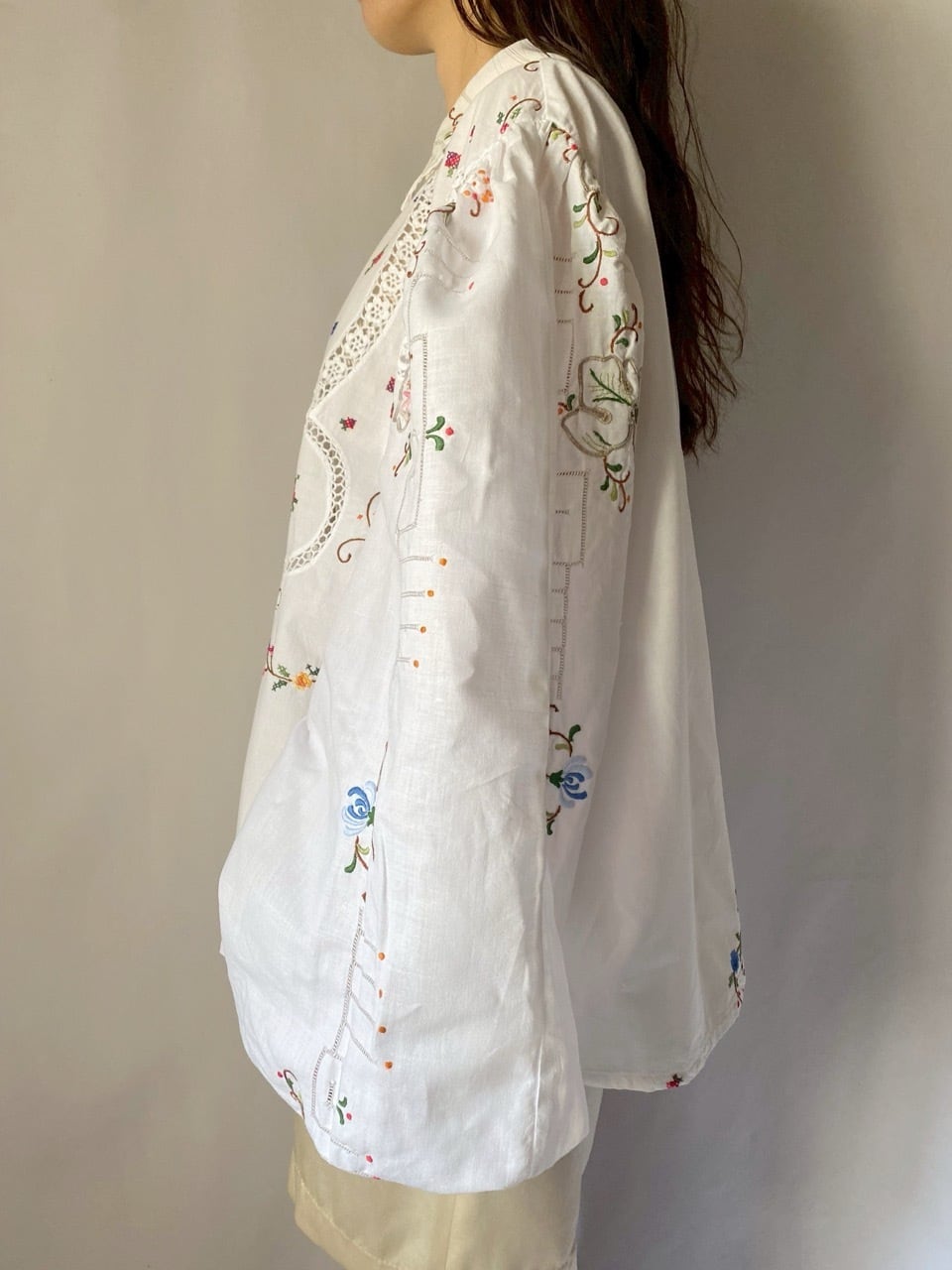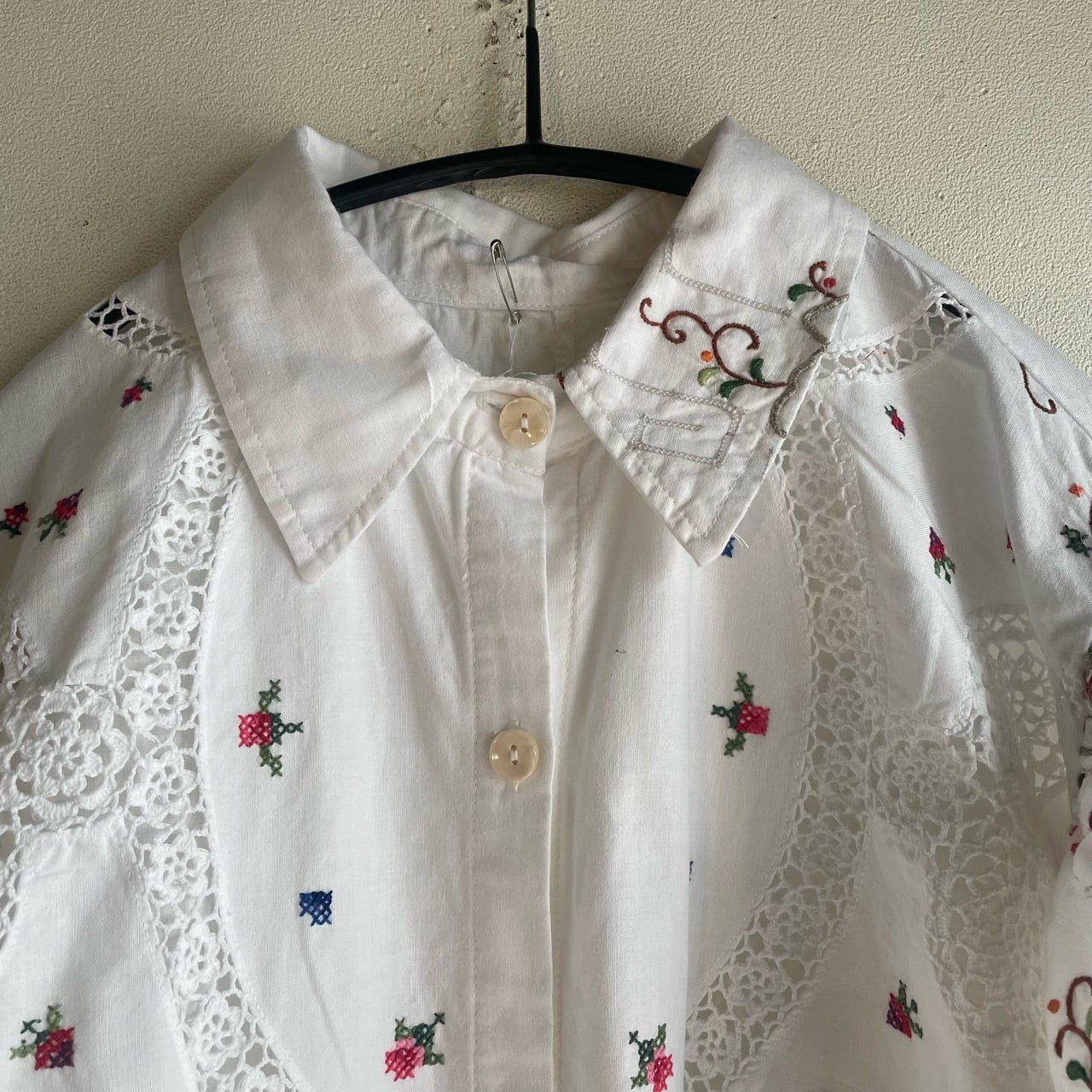 ホワイトお花刺繍ボリュームスリーブシャツ
