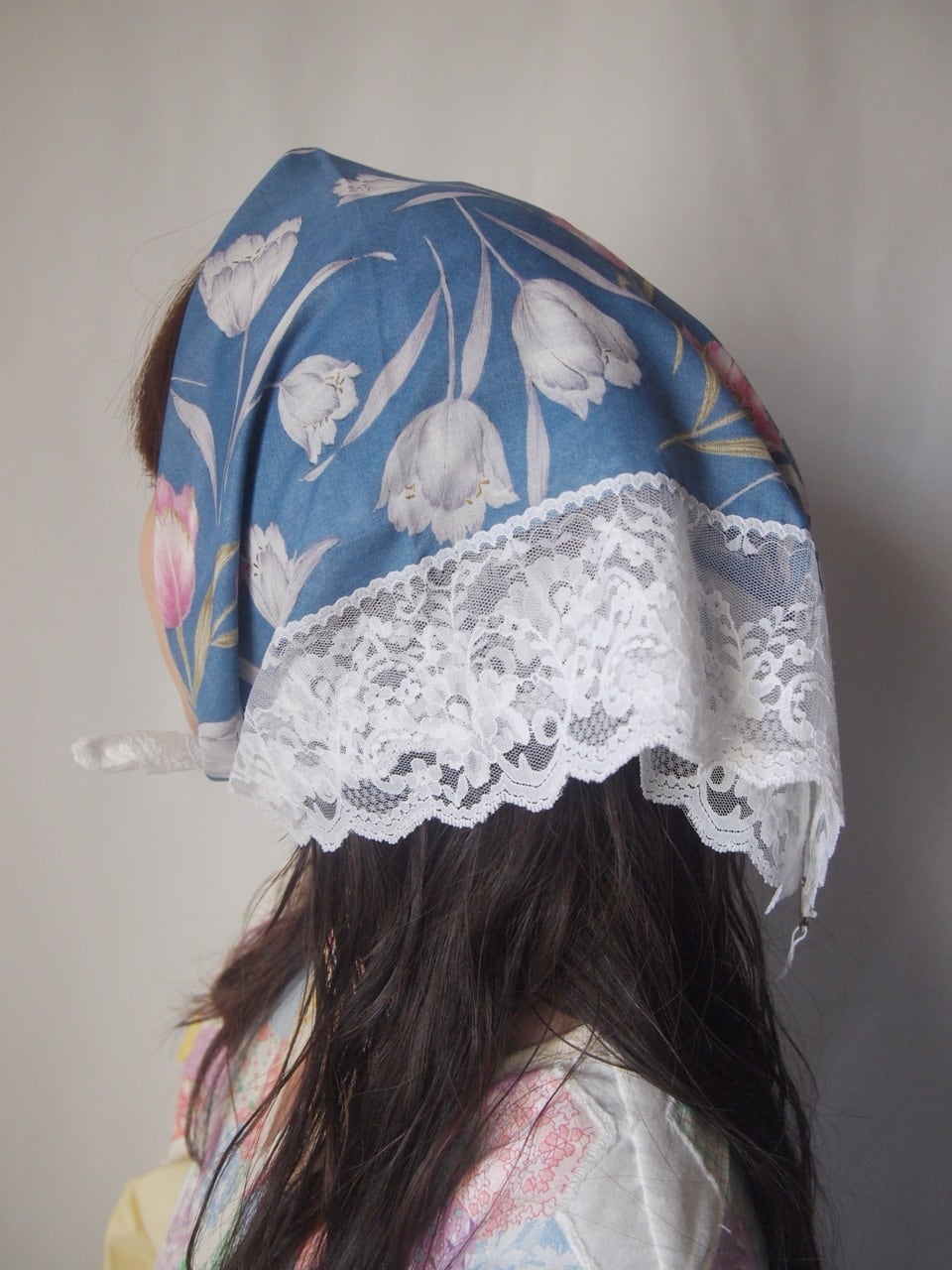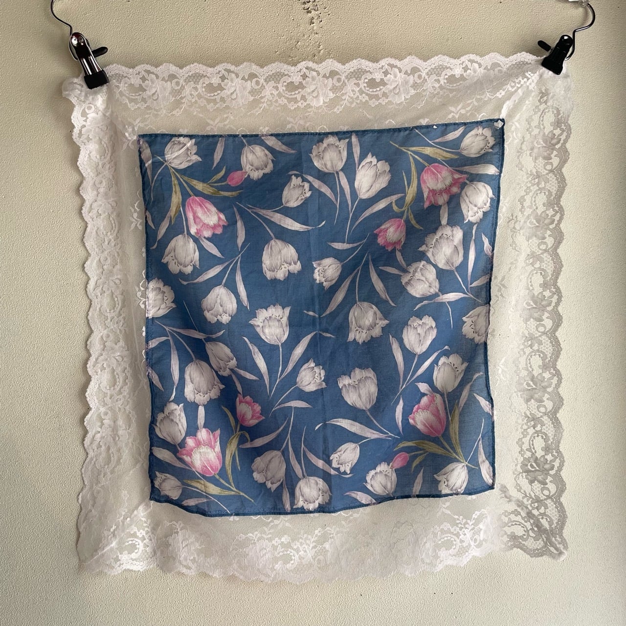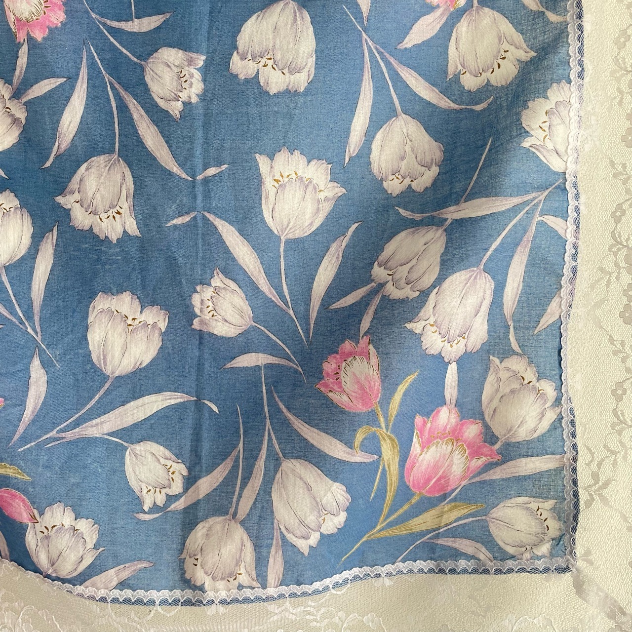 ブルーチューリップ柄コットンスカーフ