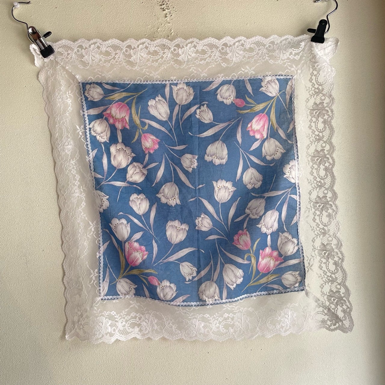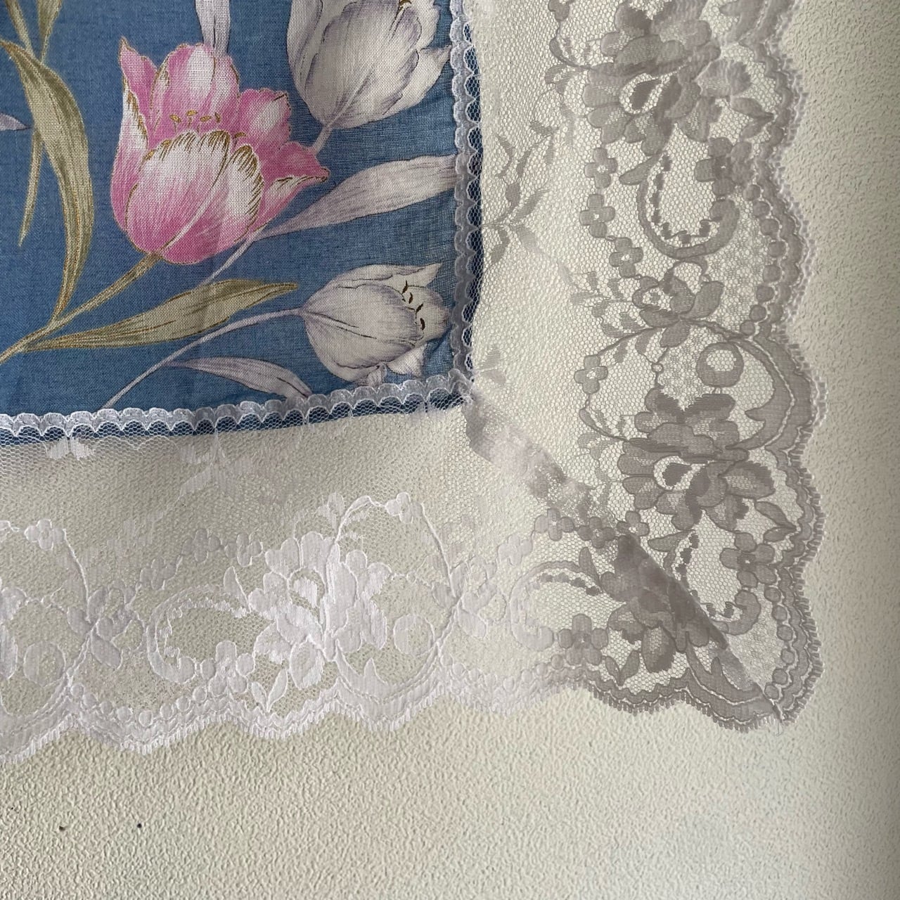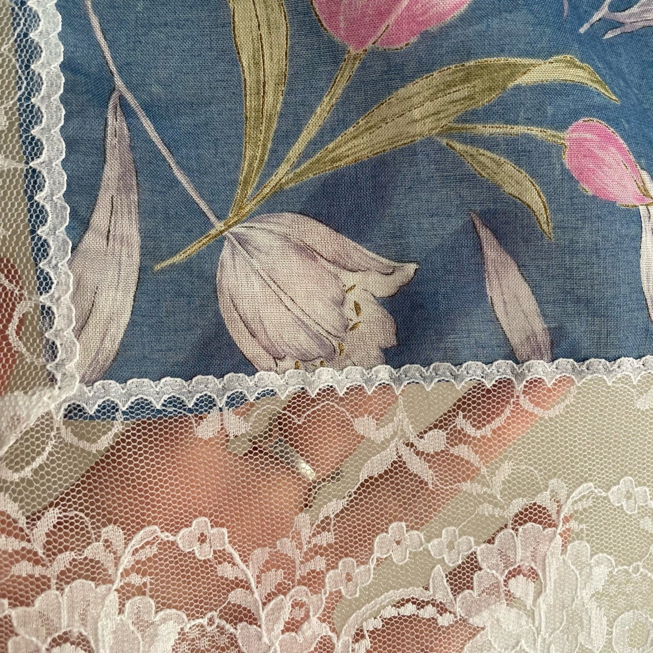 ブルーチューリップ柄コットンスカーフ