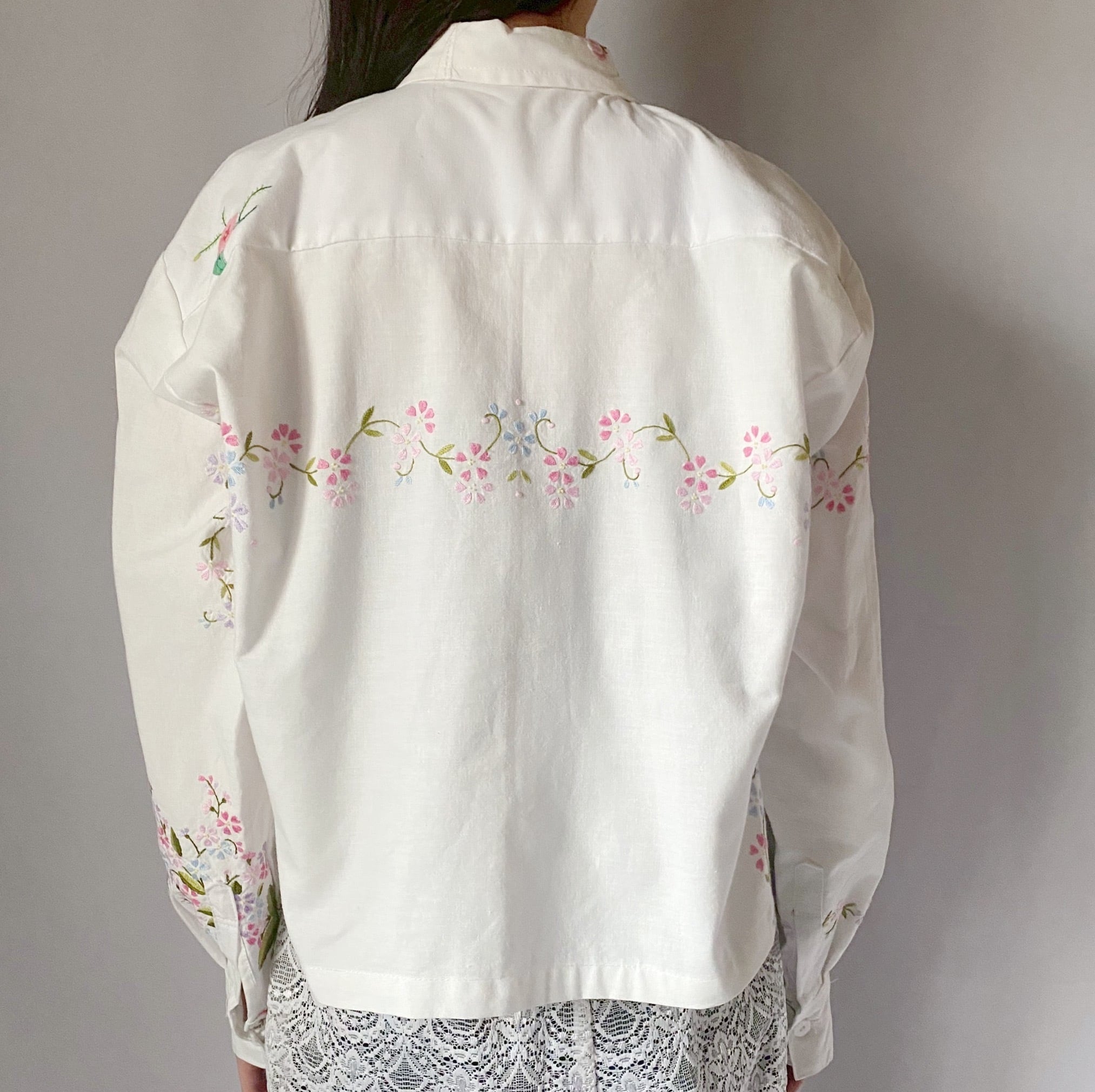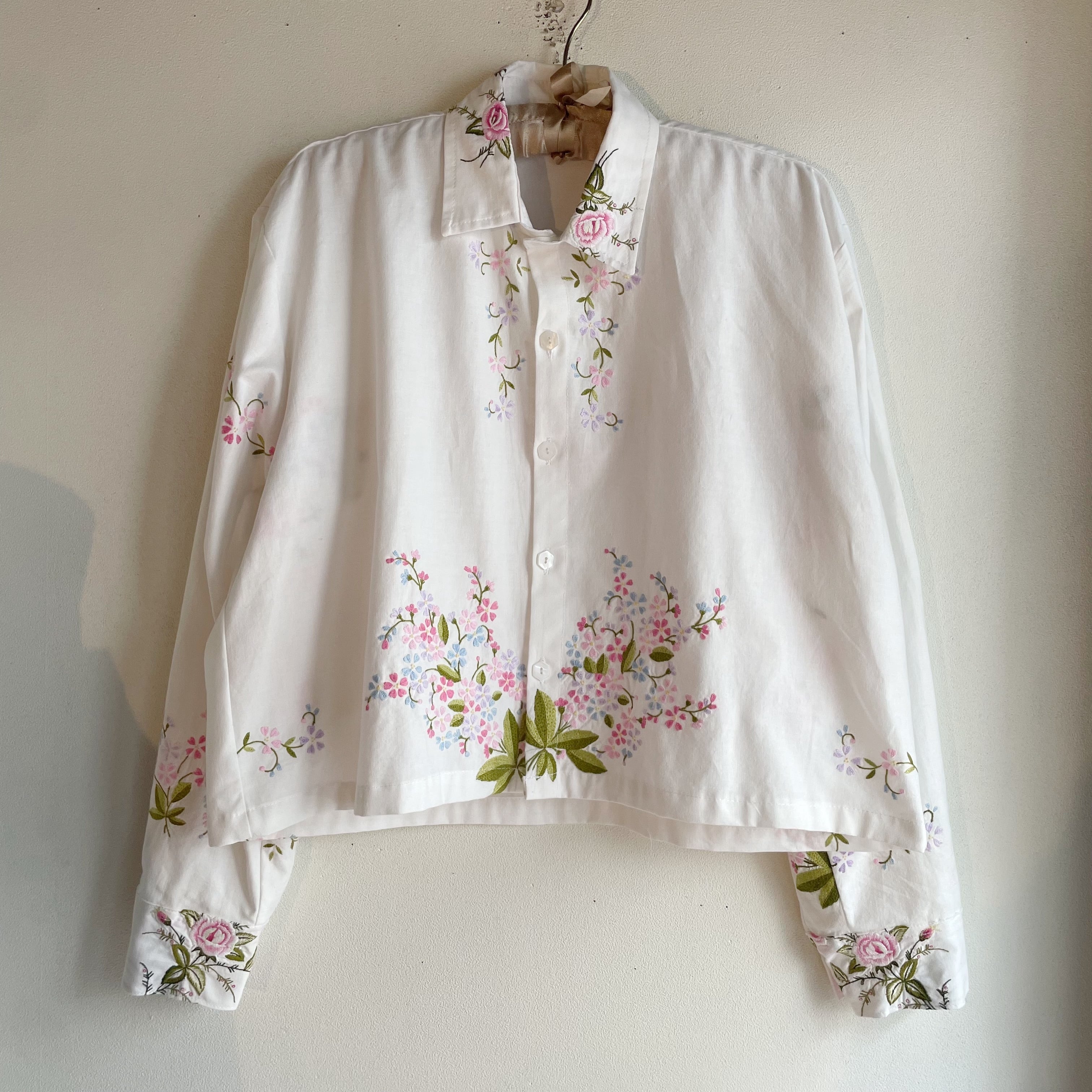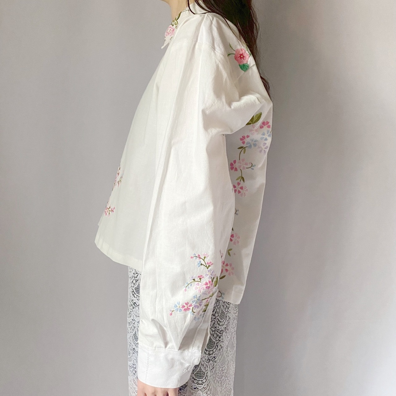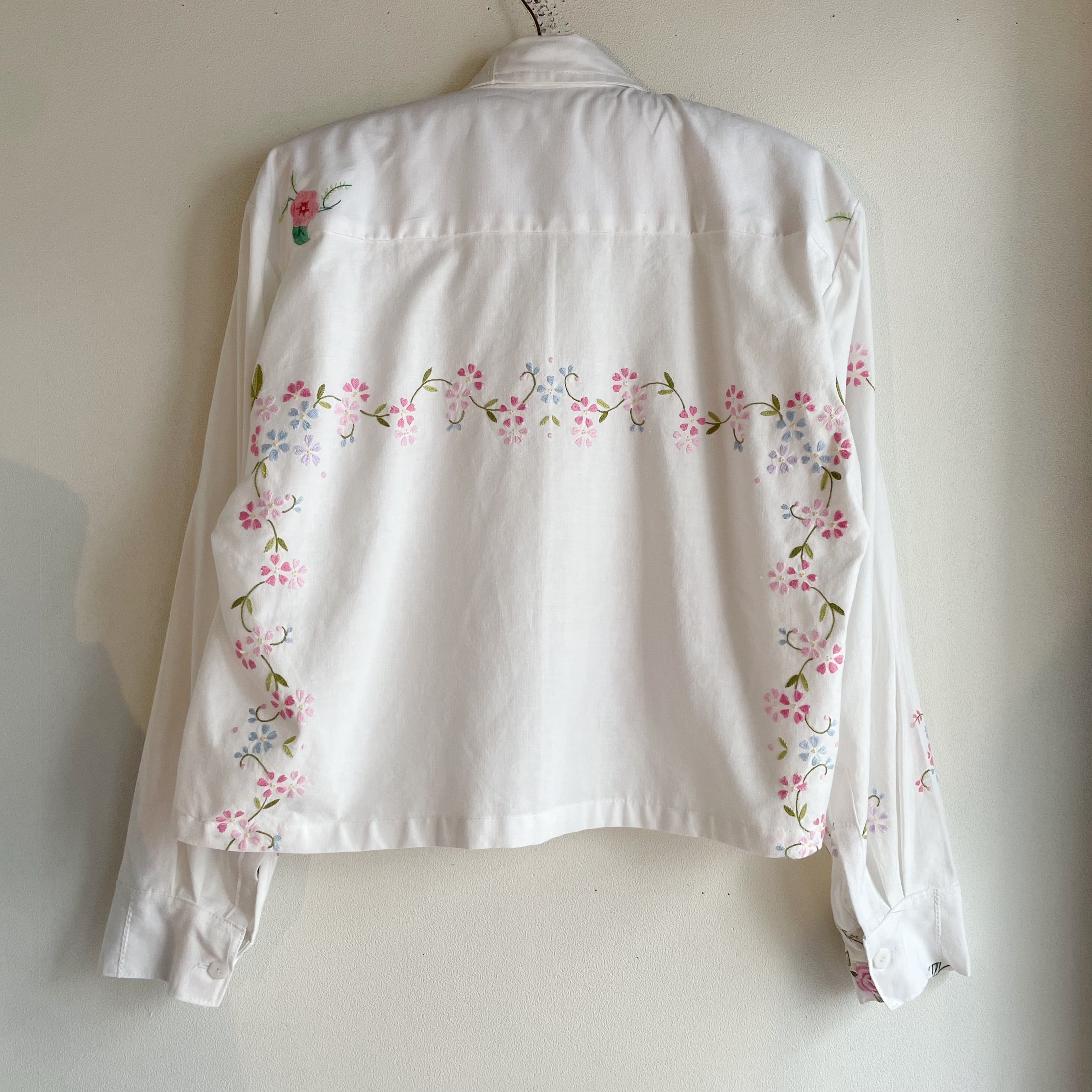 ホワイトお花刺繍シャツ