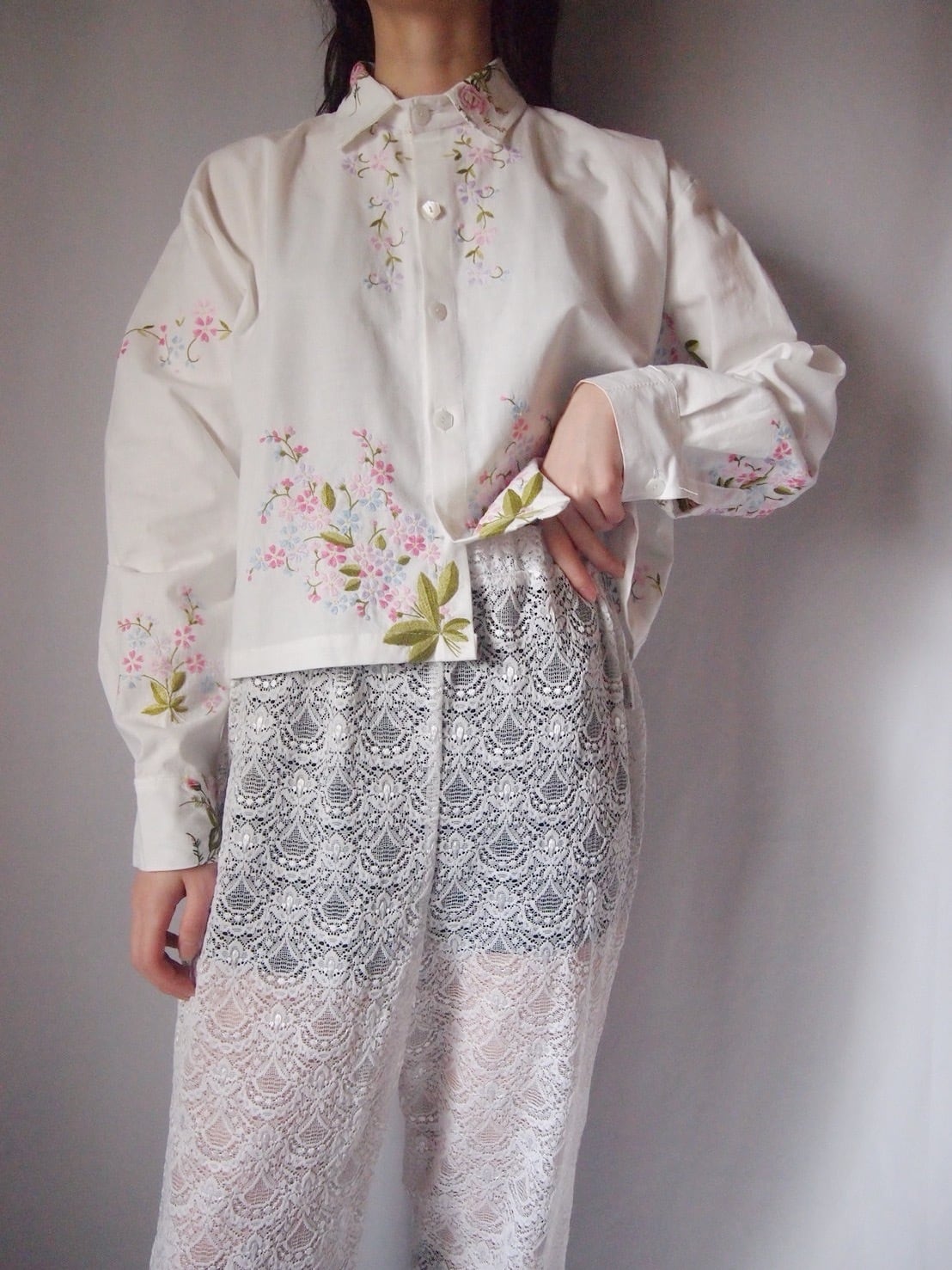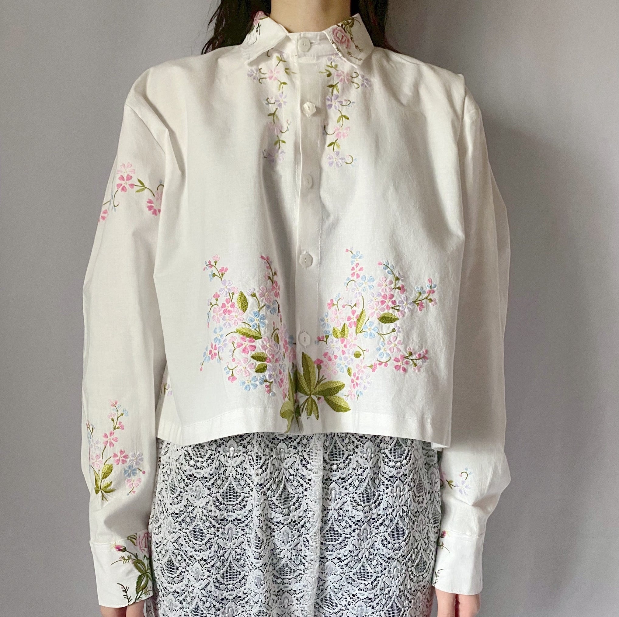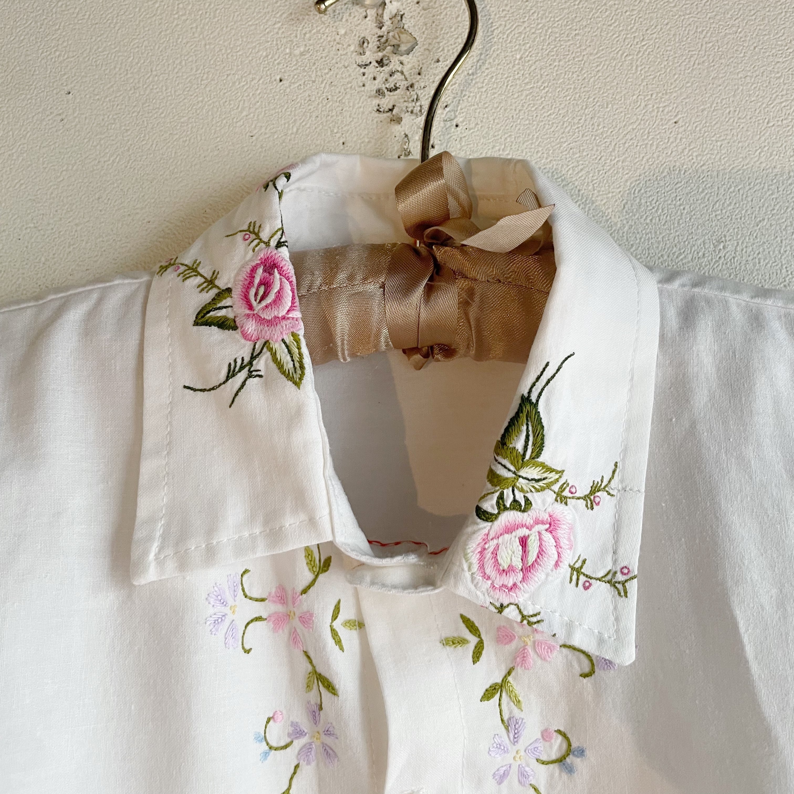 ホワイトお花刺繍シャツ