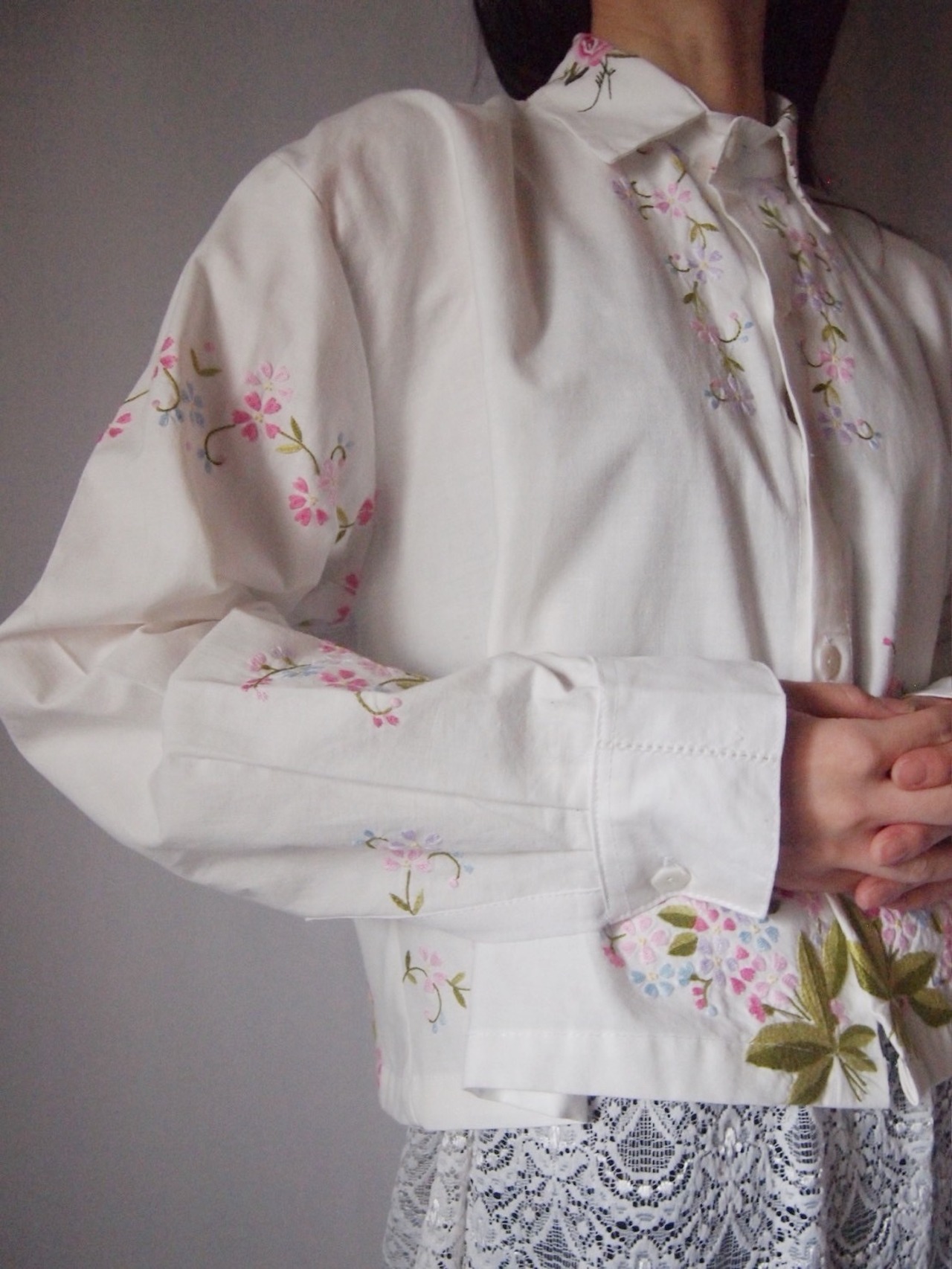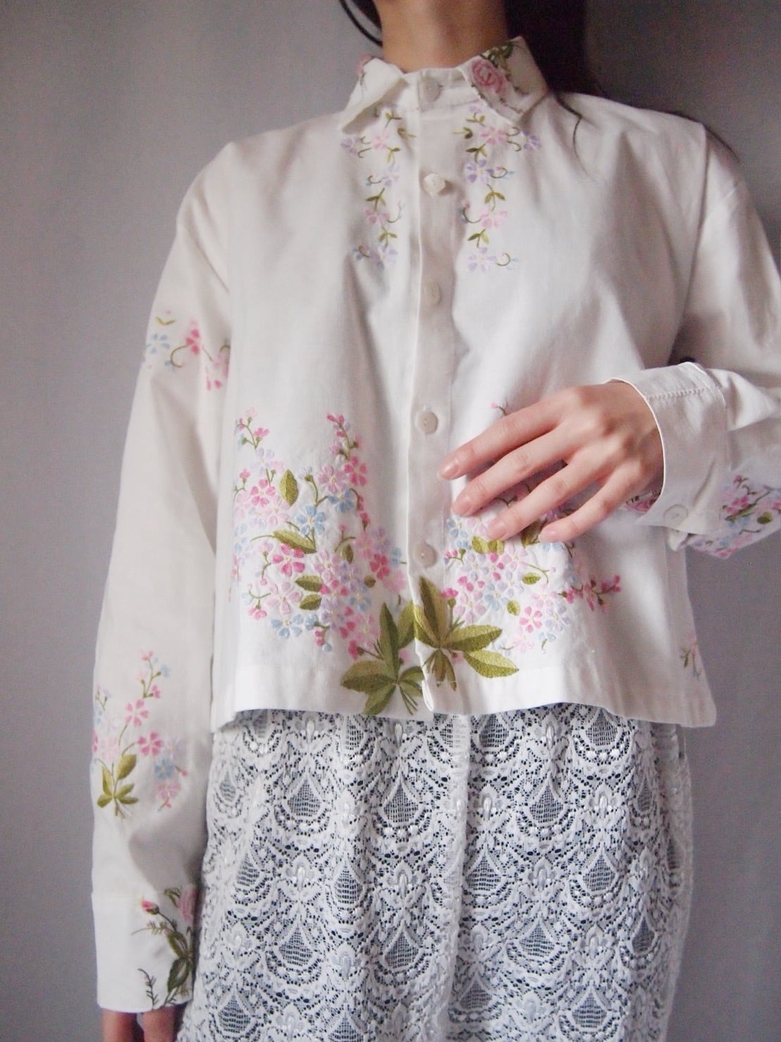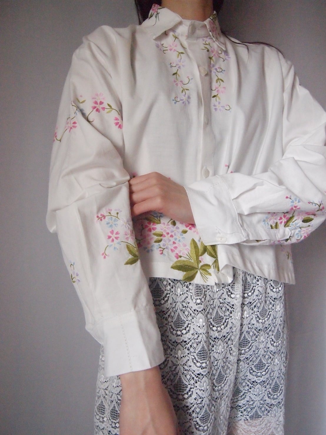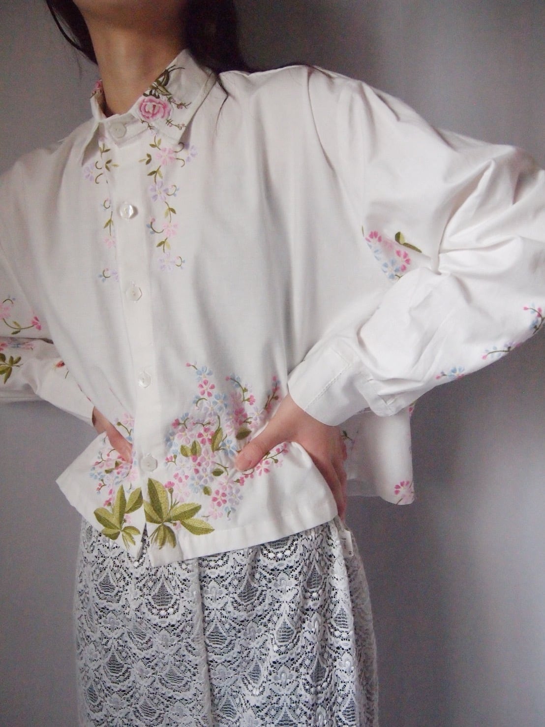 ホワイトお花刺繍シャツ