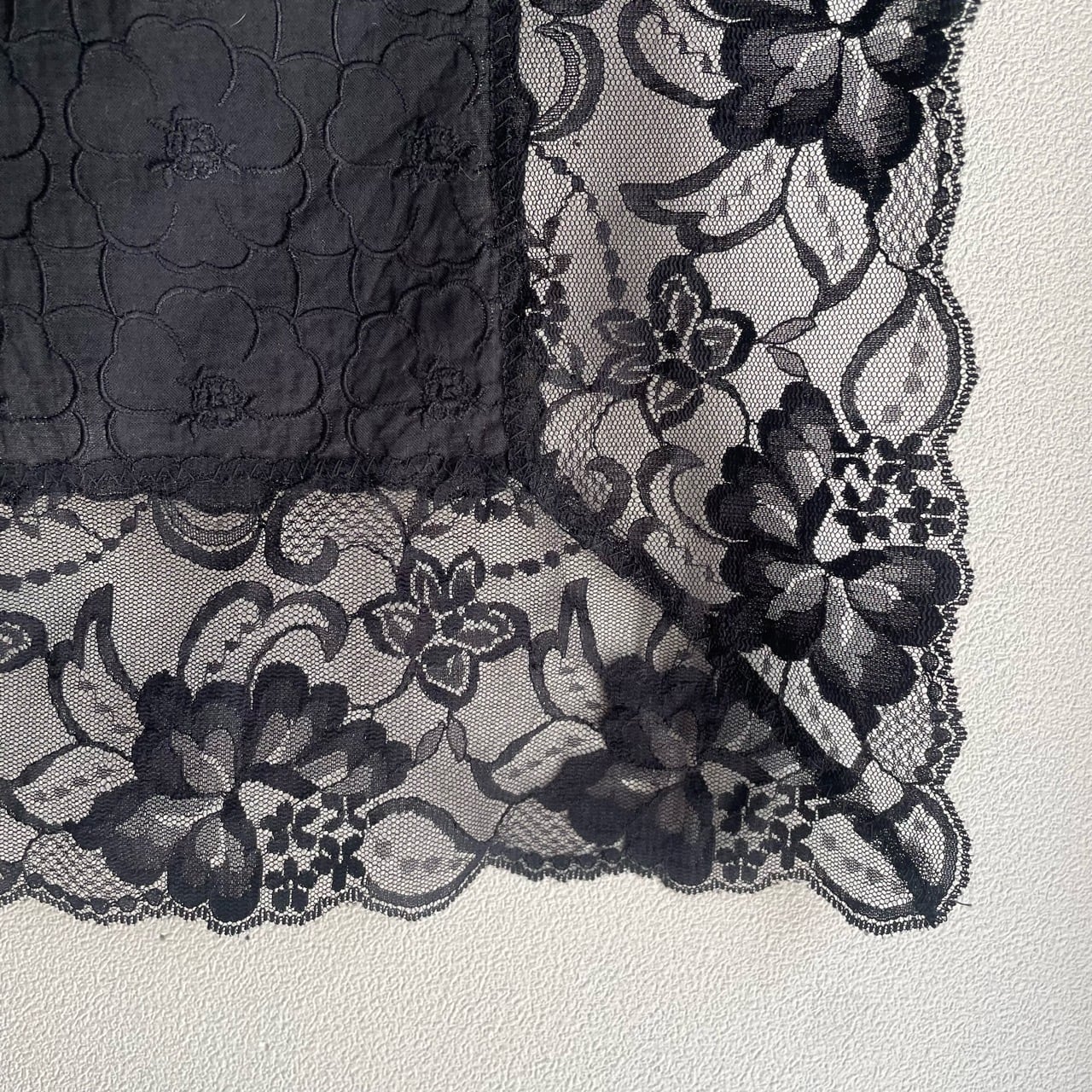 ブラック花刺繍コットンレーススカーフ