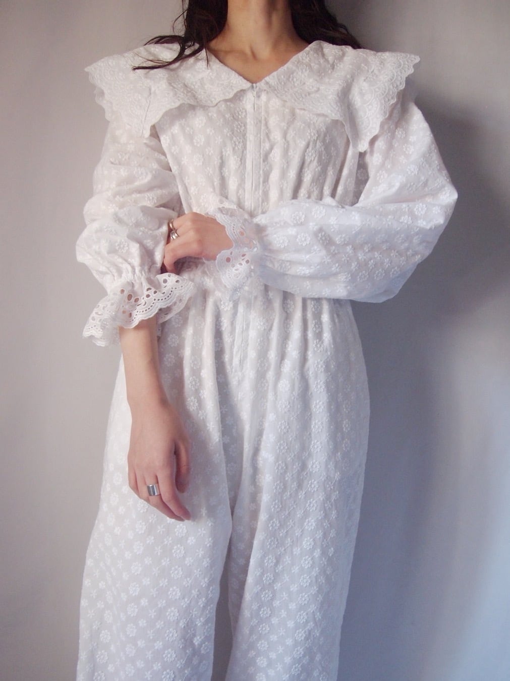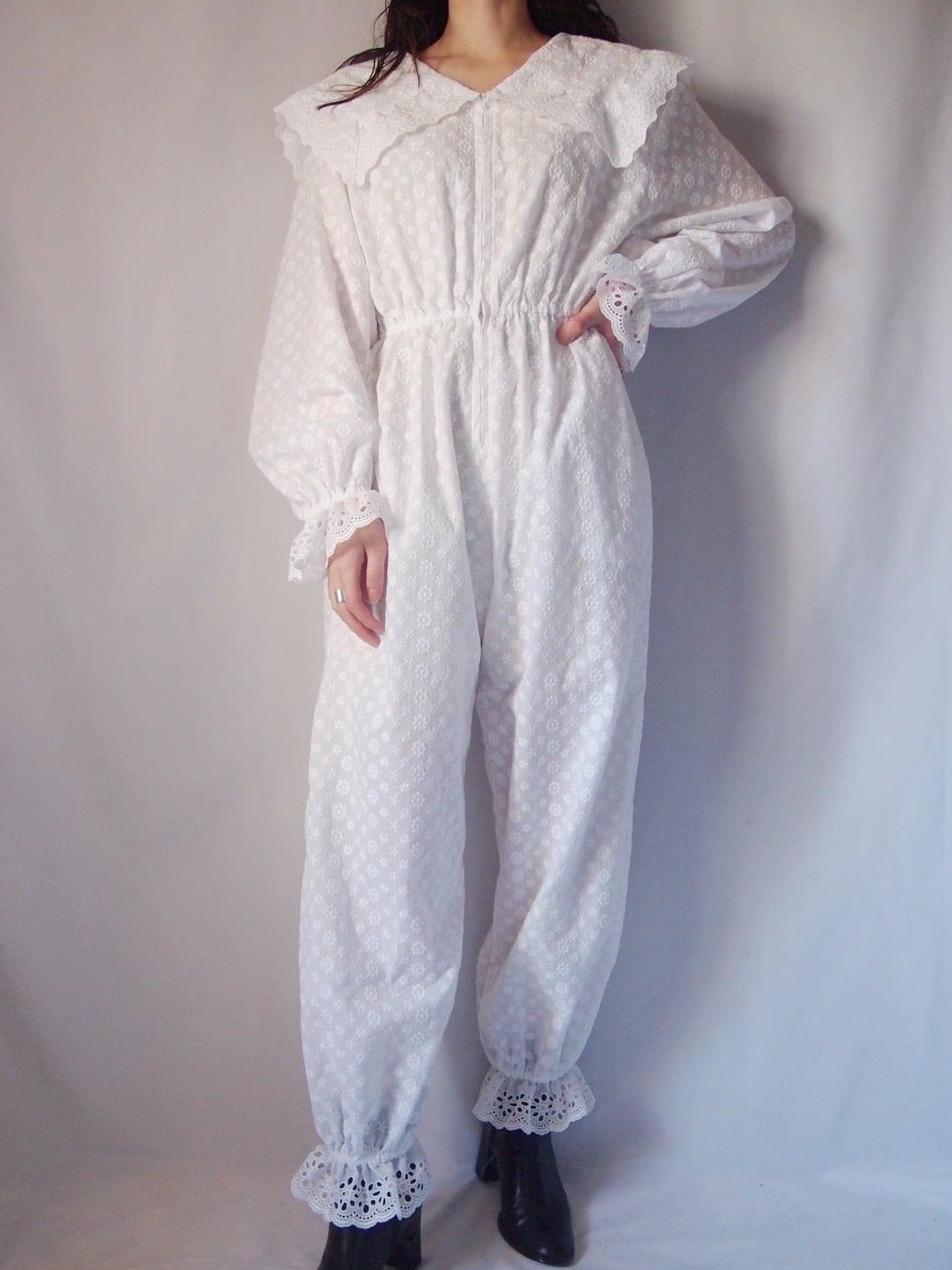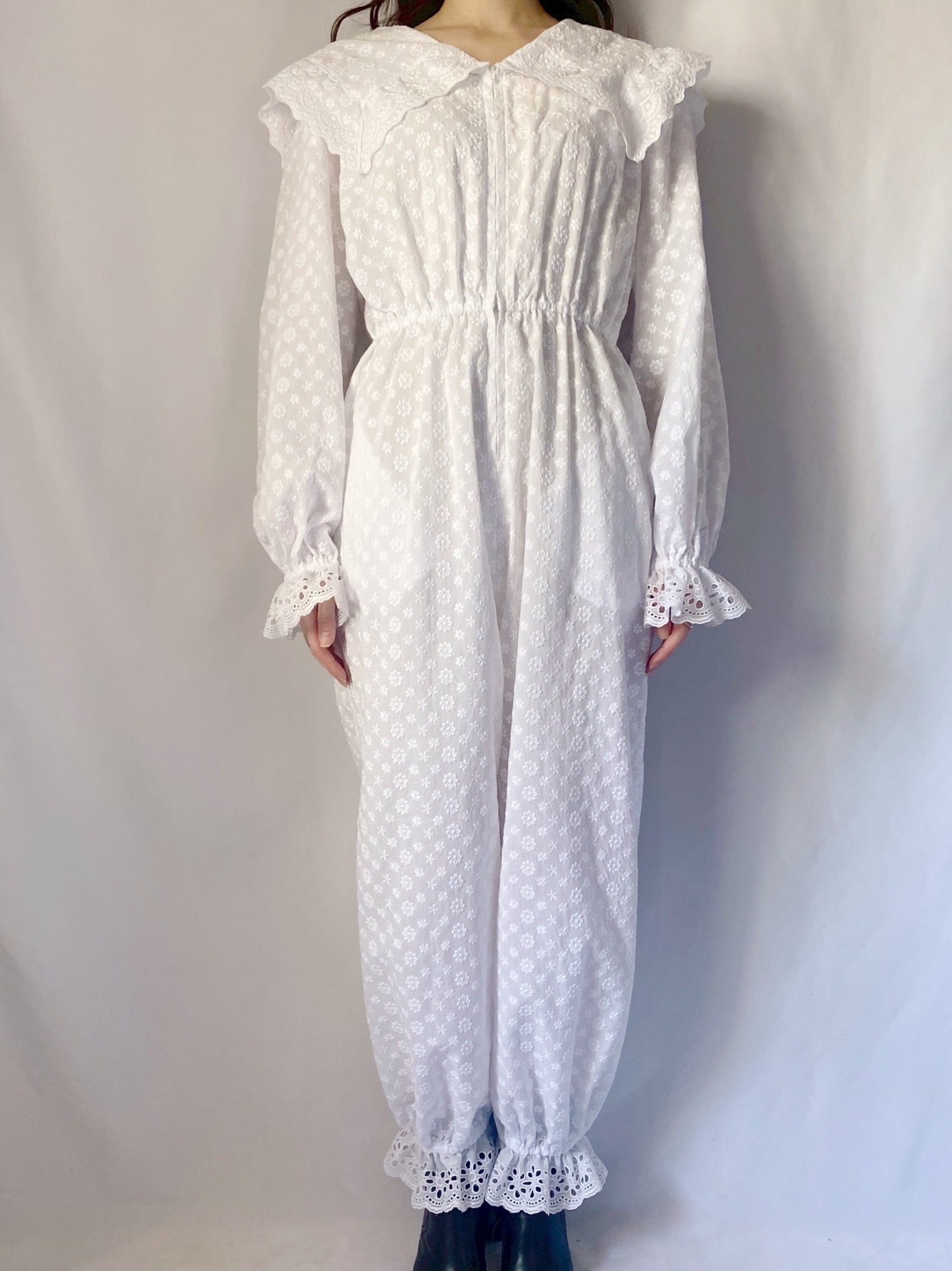 ホワイトお花刺繍オールインワン