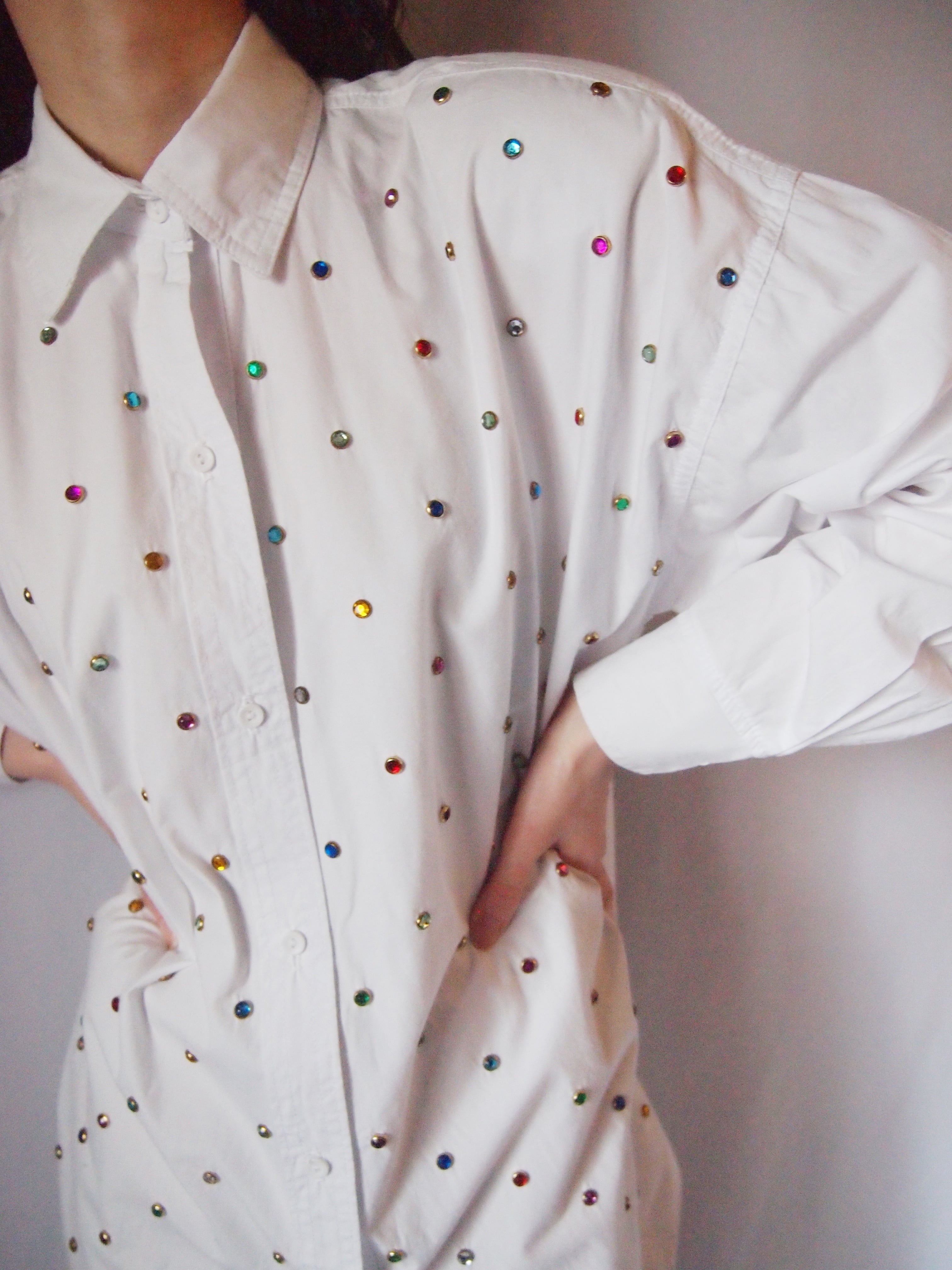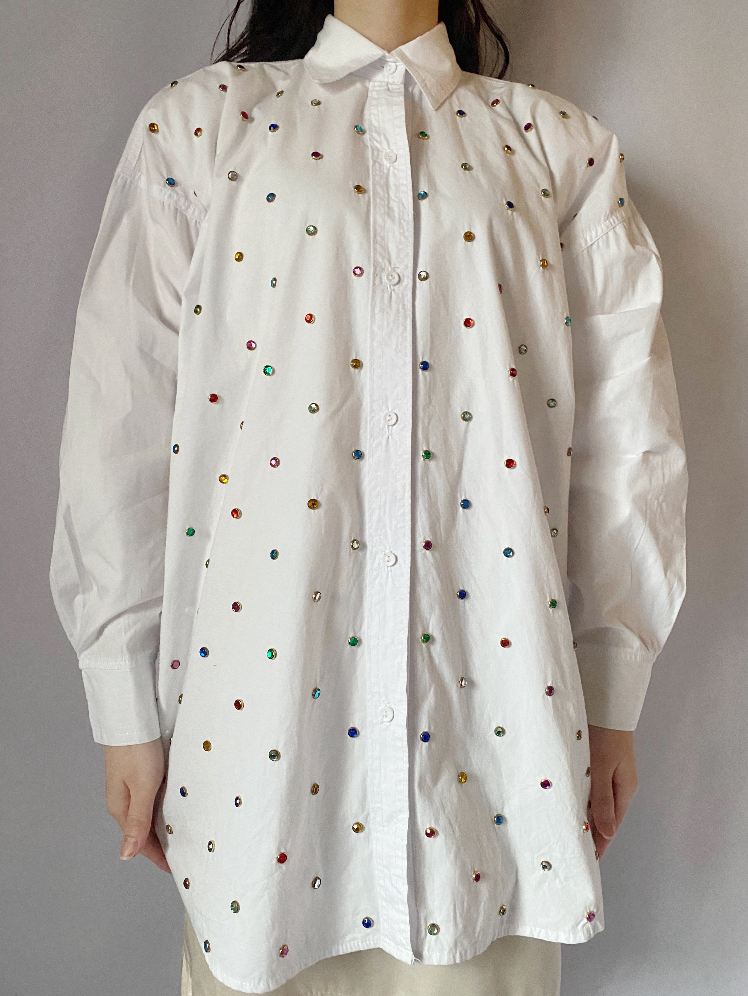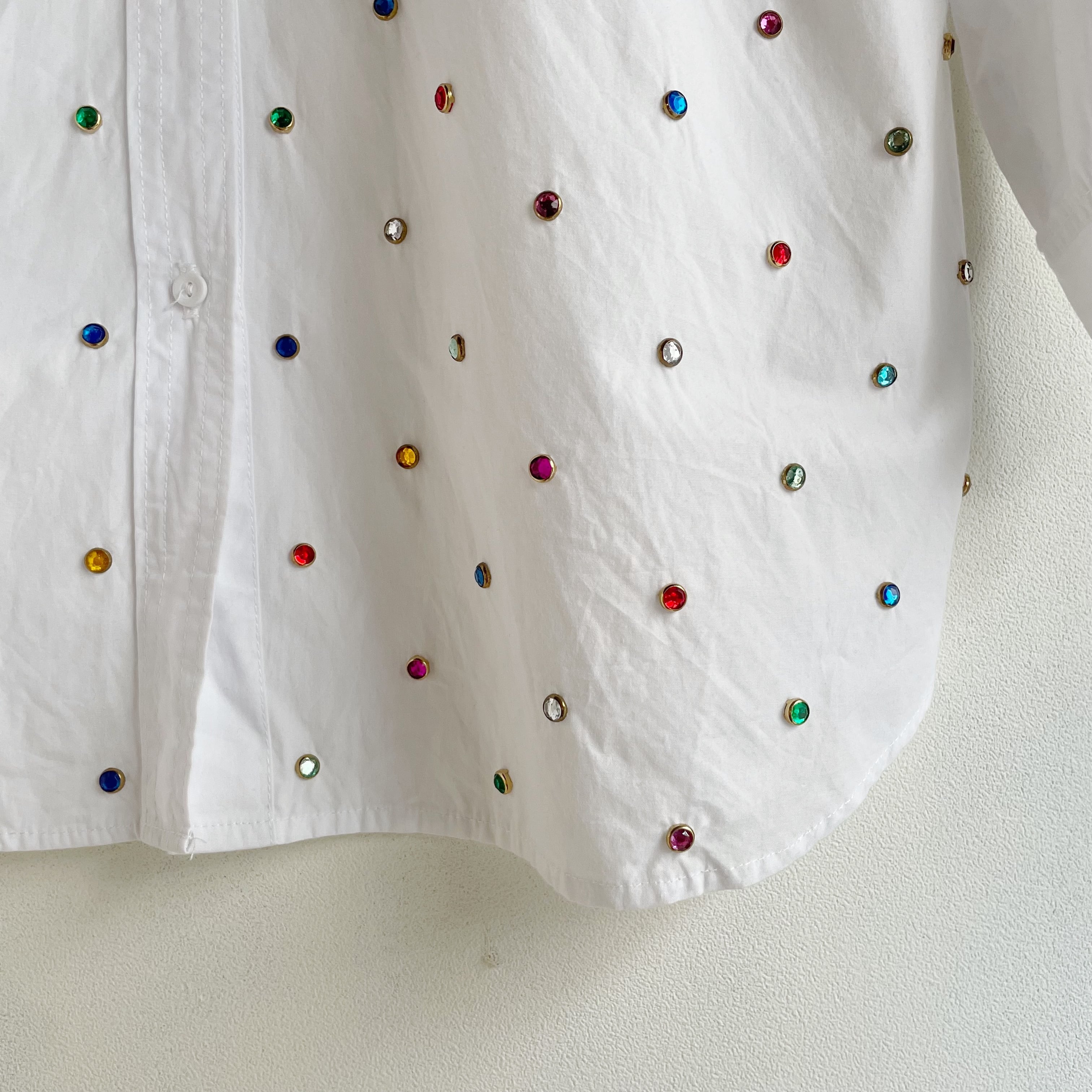ホワイト×カラフルストーンシャツ
