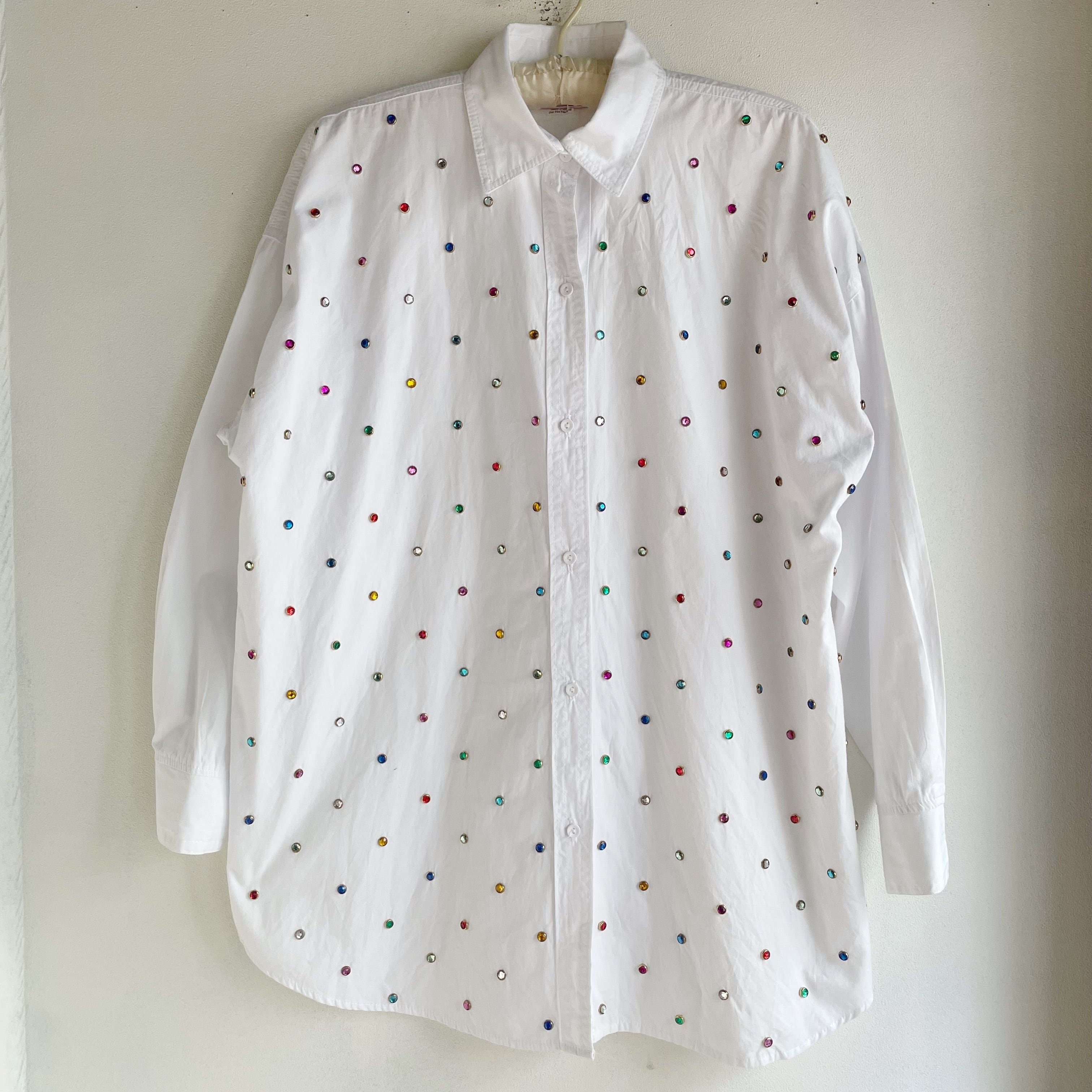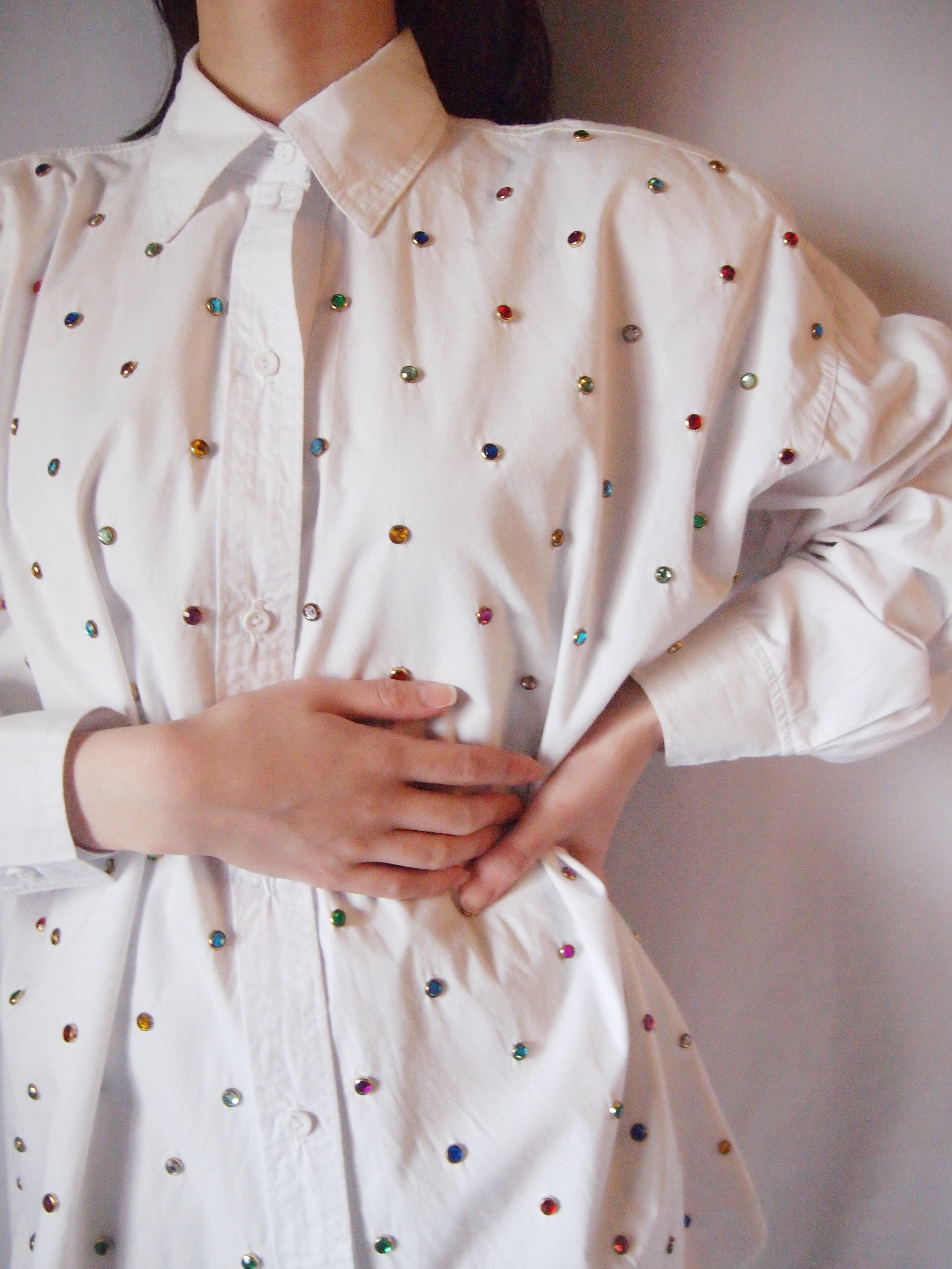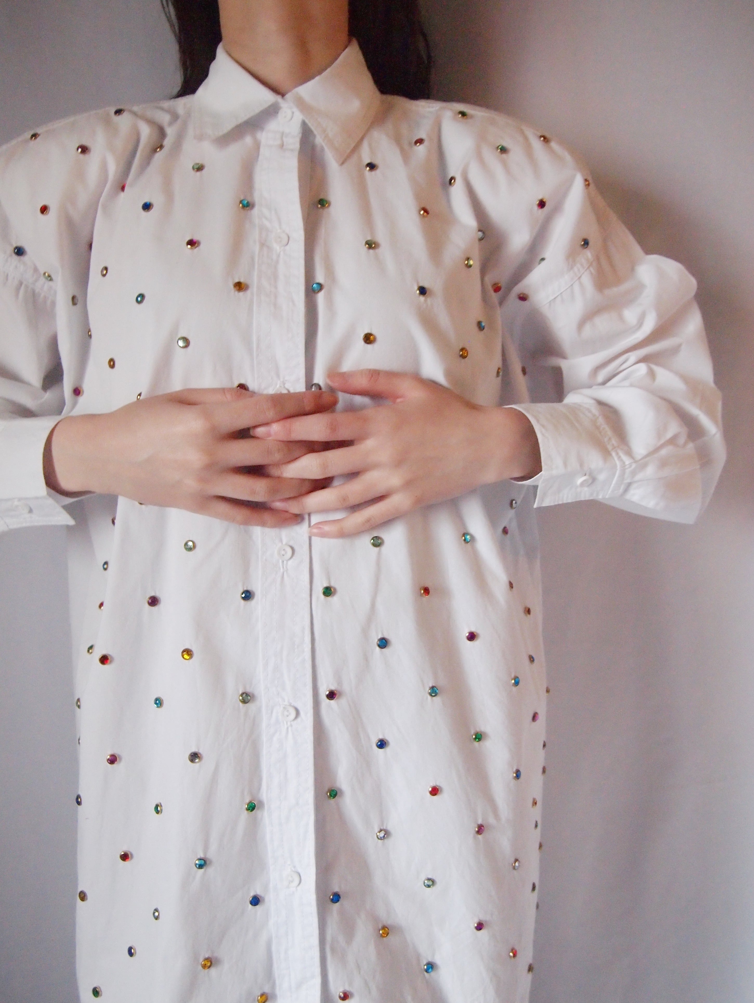 ホワイト×カラフルストーンシャツ