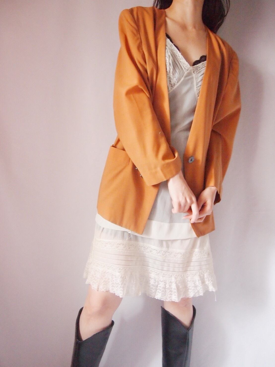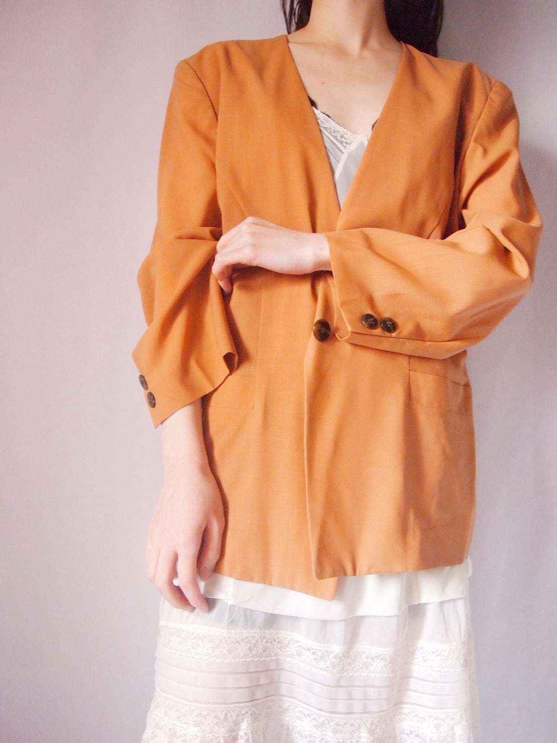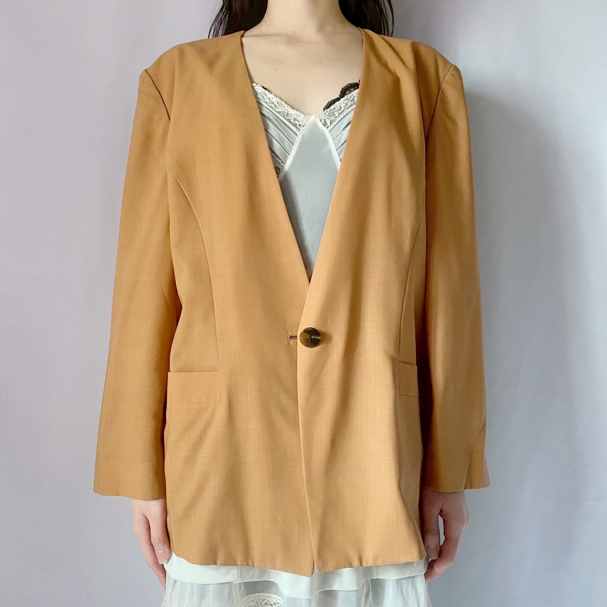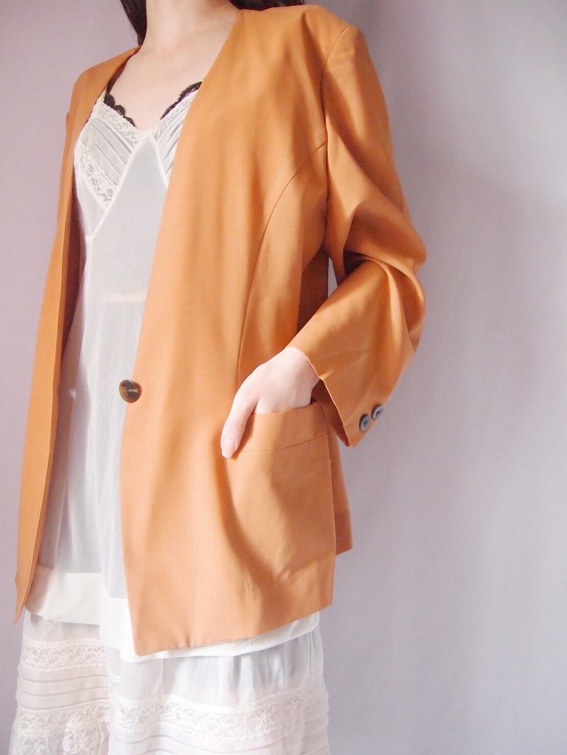 オレンジブラウンノーカラージャケット