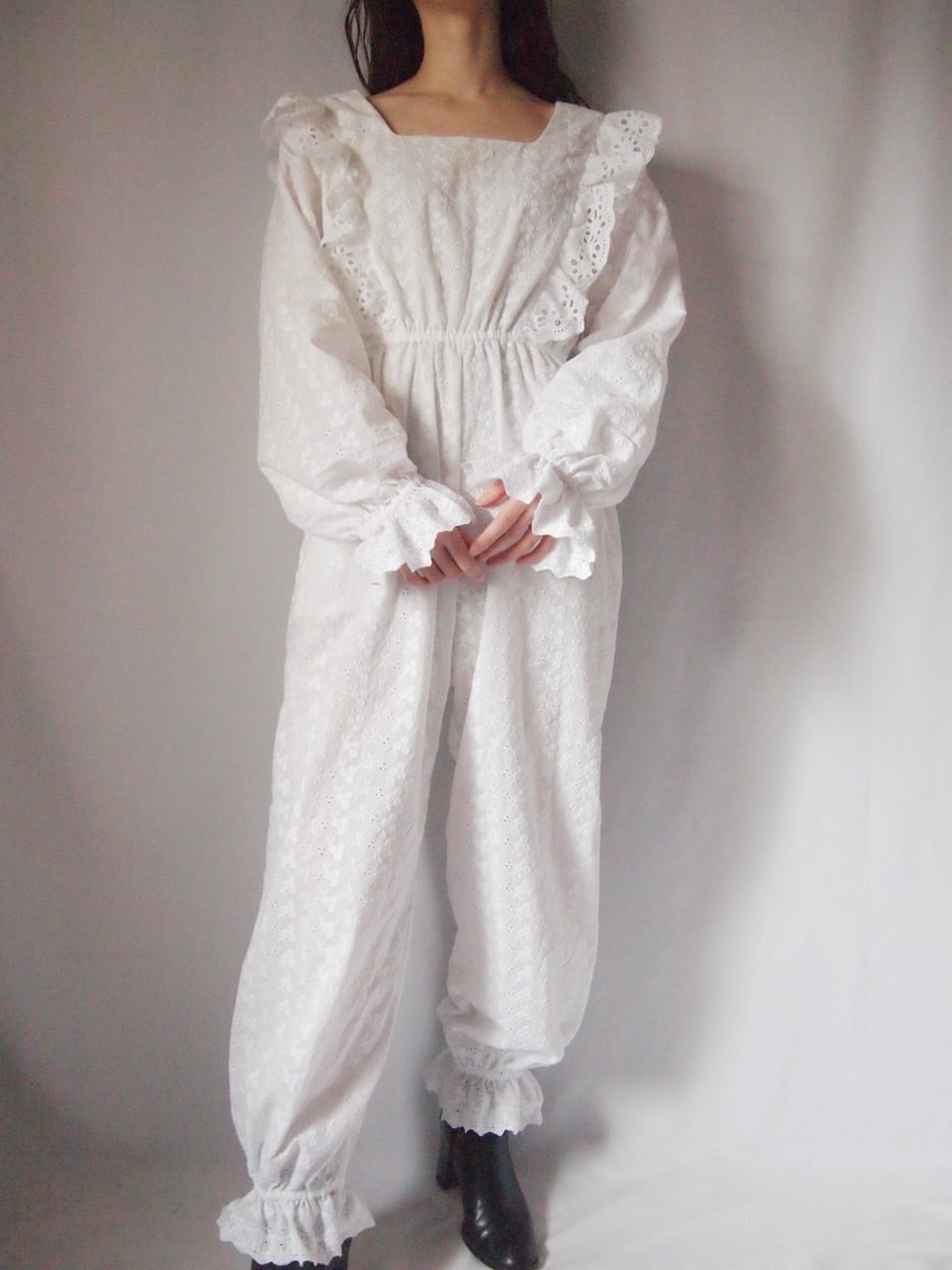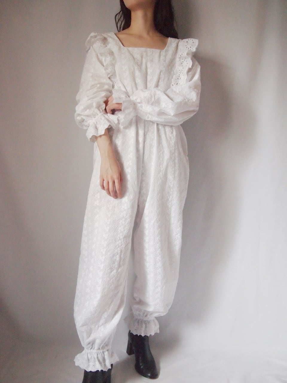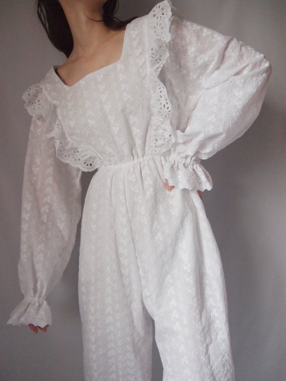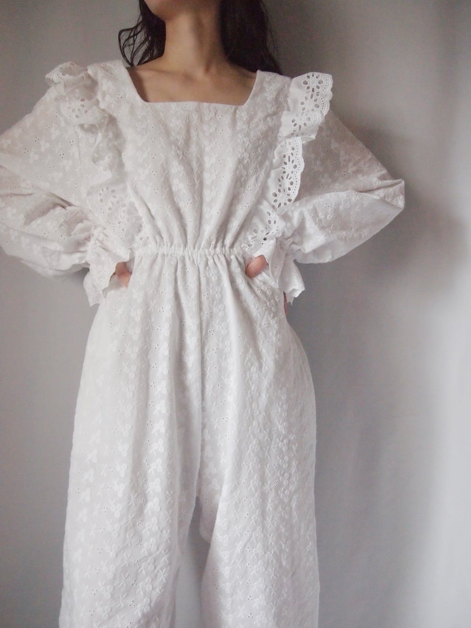 ホワイトコットンレースオールインワン